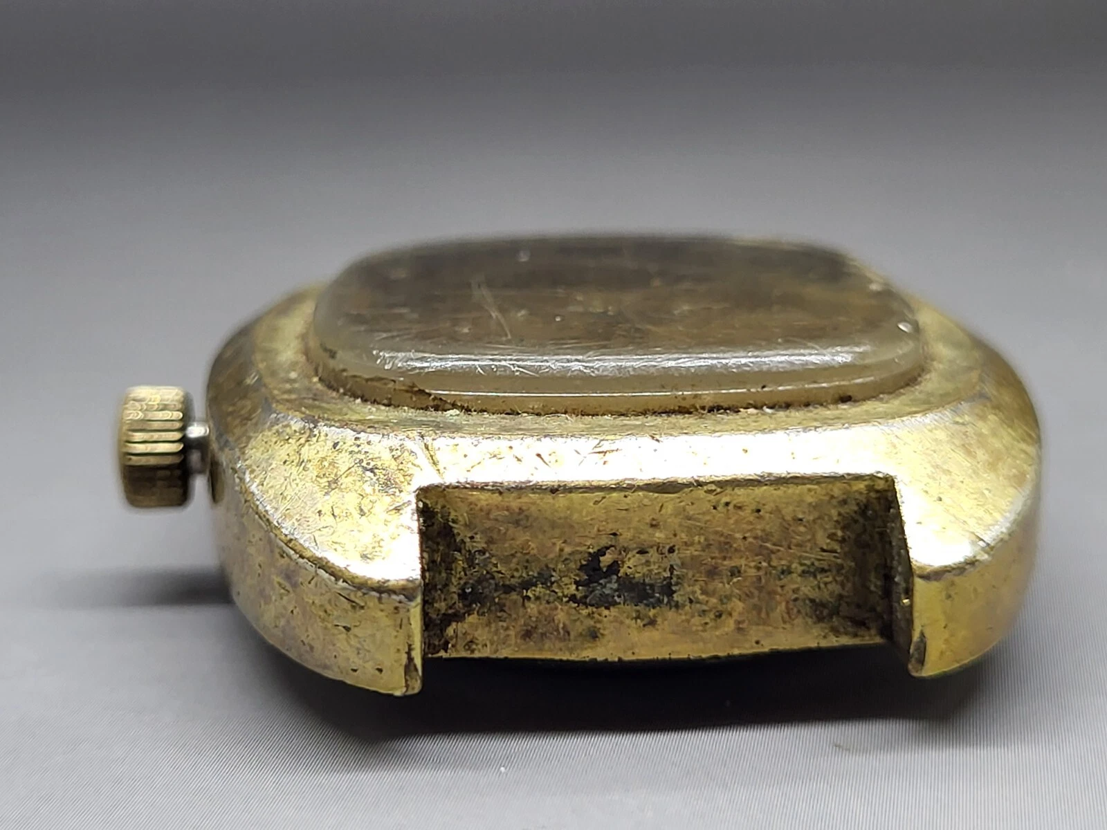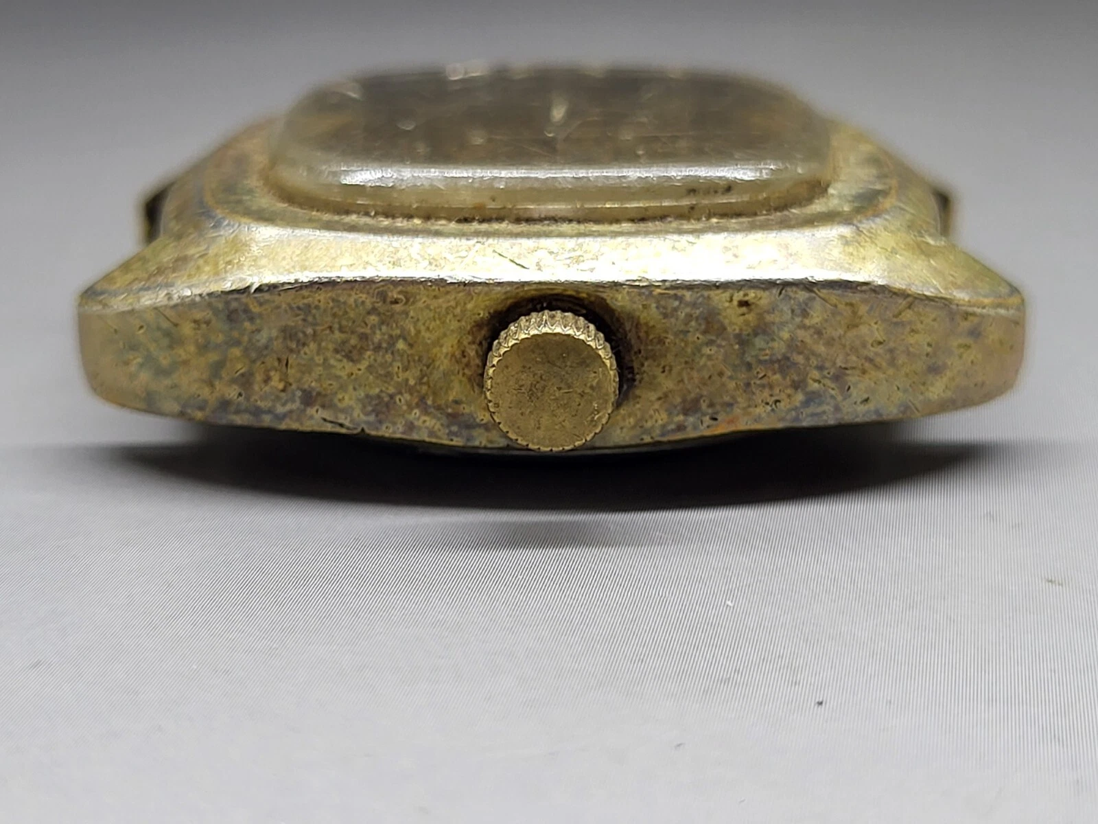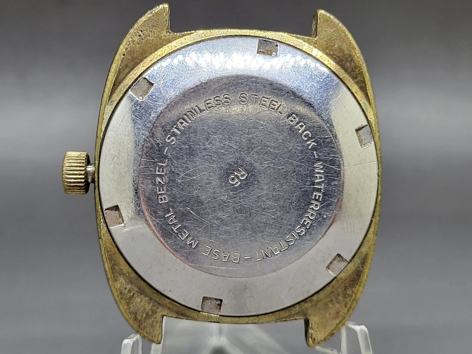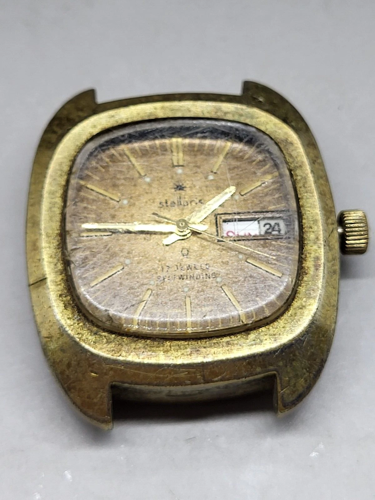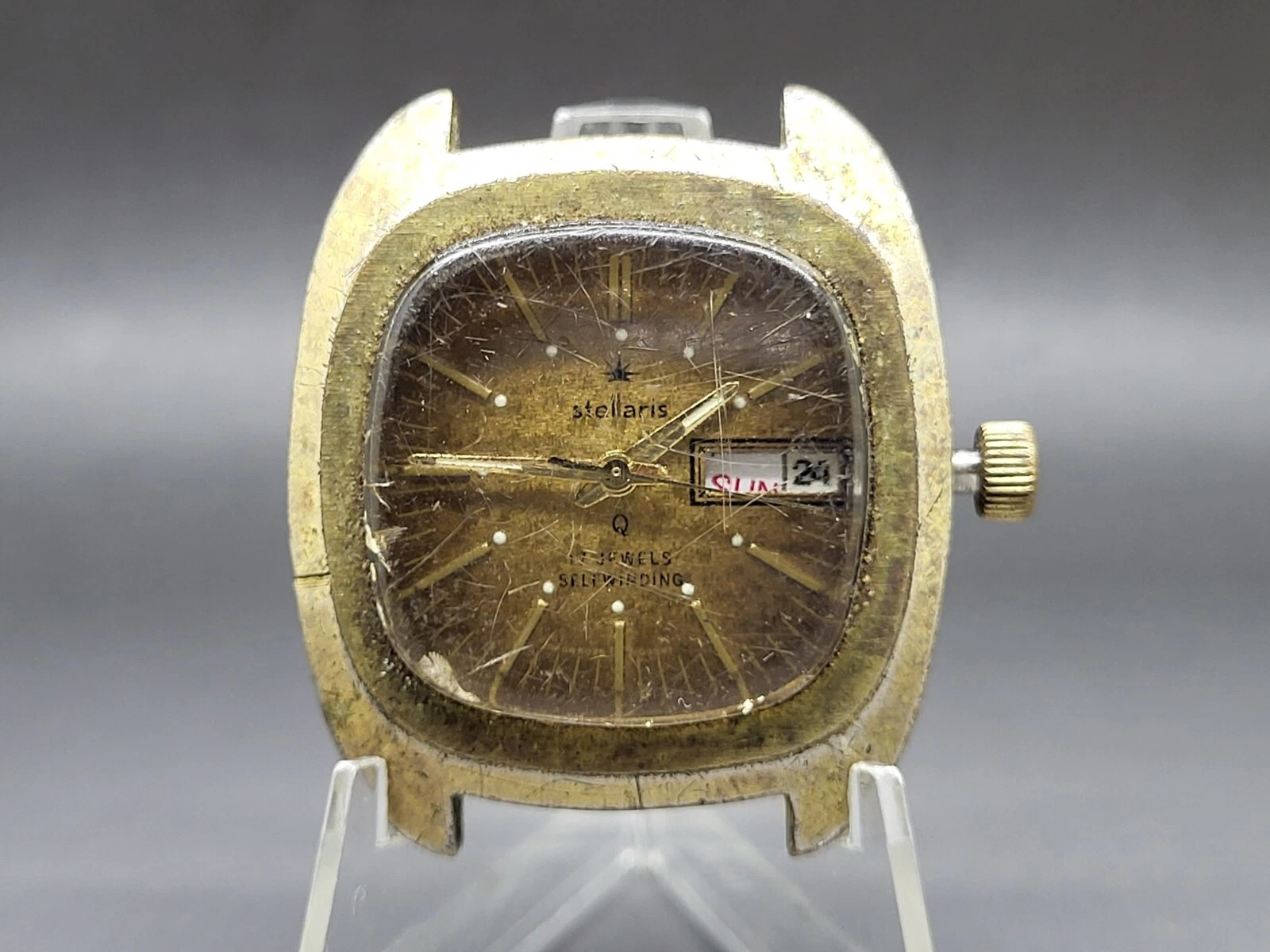 Mans Stellaris Q Gold Tone Day Date 17 Jewel Self Winding Wristwatch Needs Band