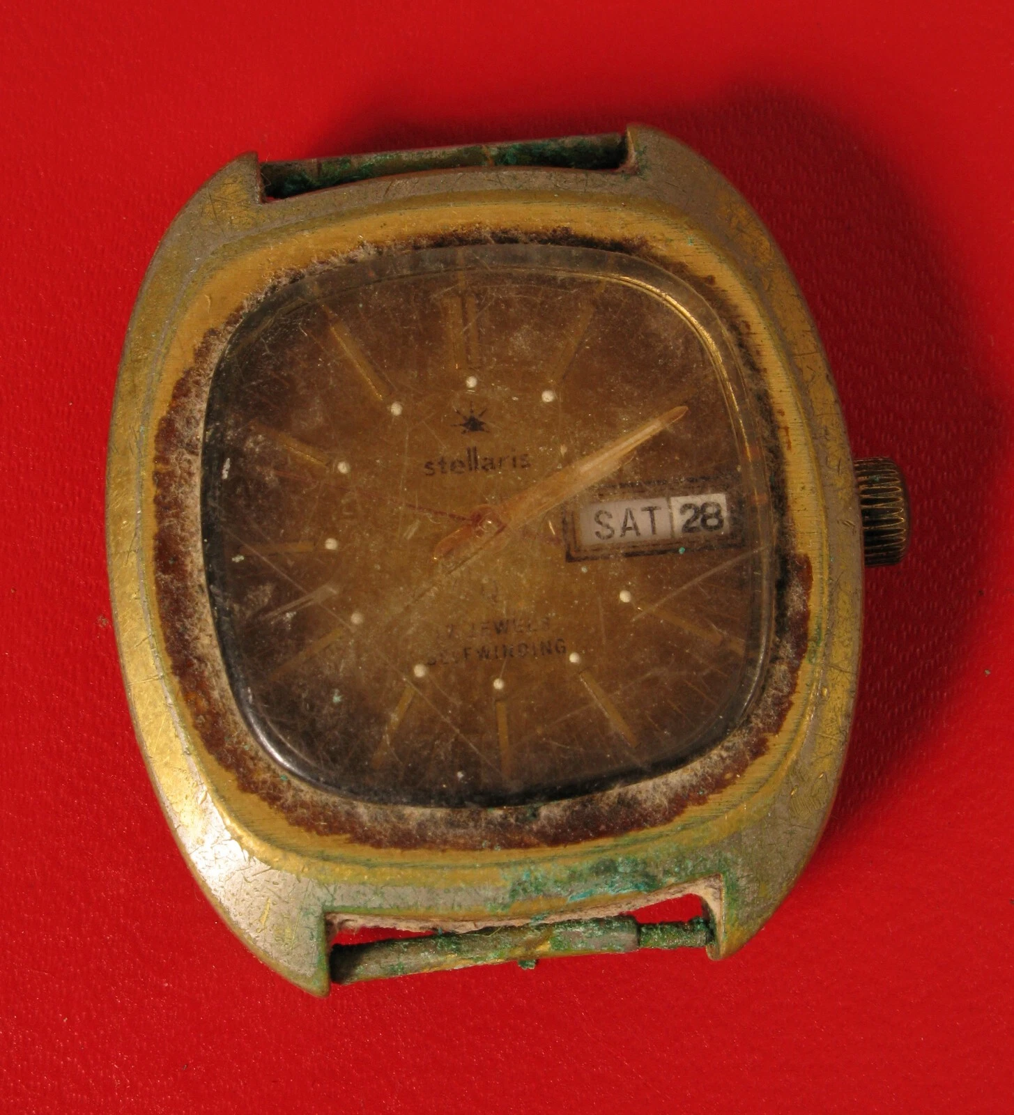 VINTAGE STELLARIS GOLD TONE RAT ROD STYLE WATCH MENS WRISTWATCH !