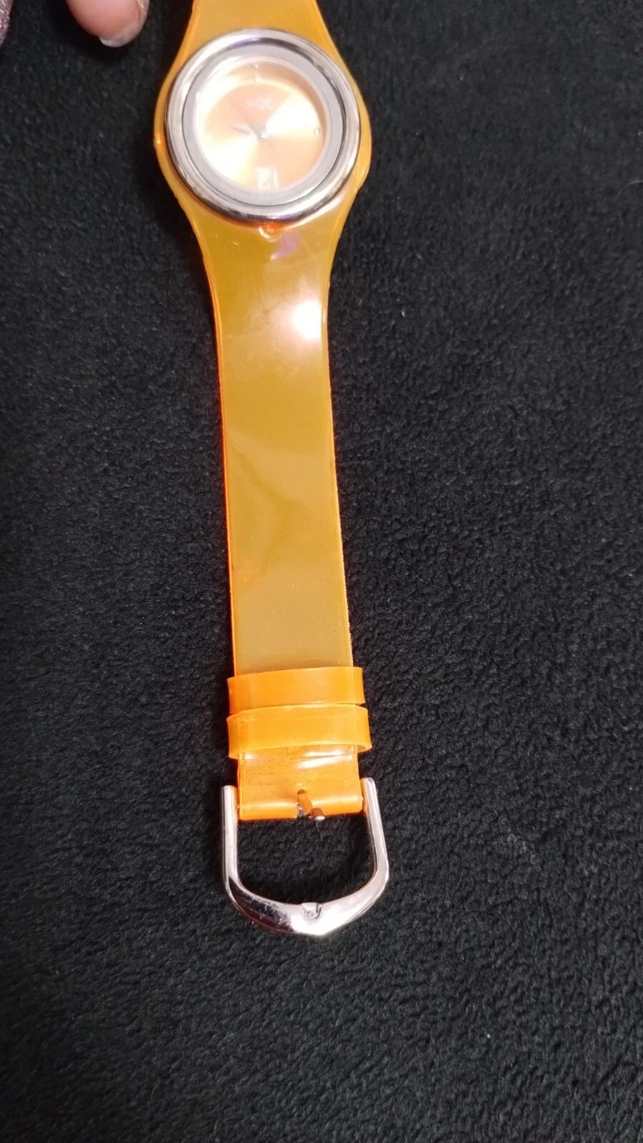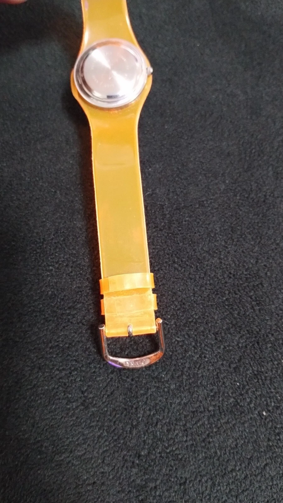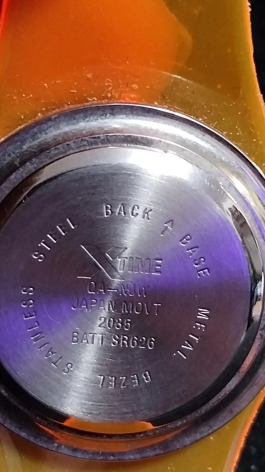 Vintage X-Time Japan Quartz Orange Plastic Band Wristwatch Stainless Steel Back