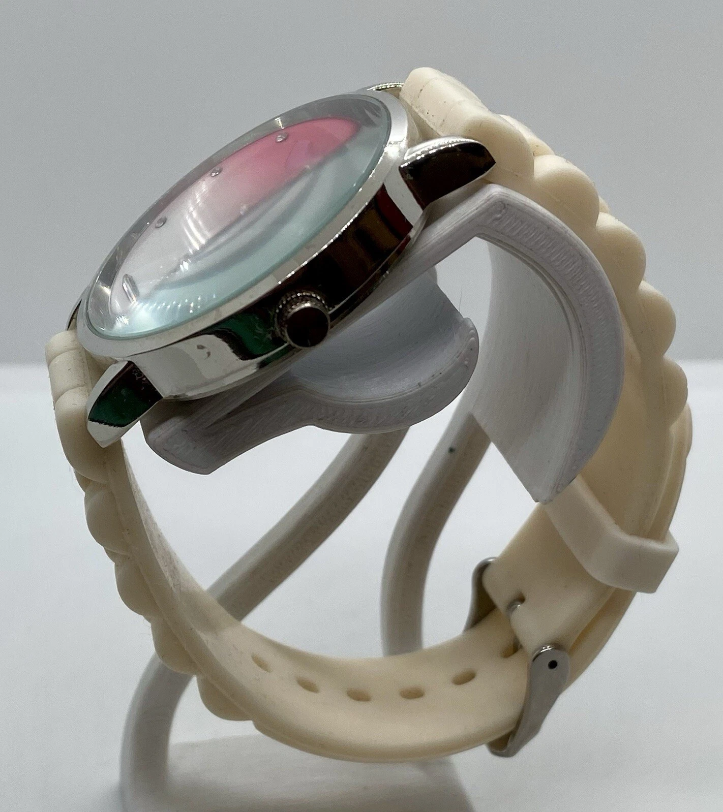 NEW STRADA Ladies Watch Fresh Battery Iced Indices Pink Ombré  Dial White Band