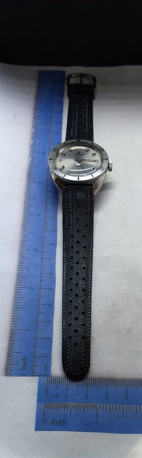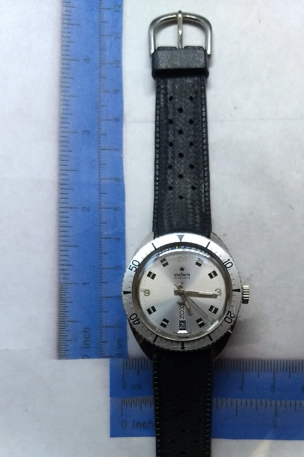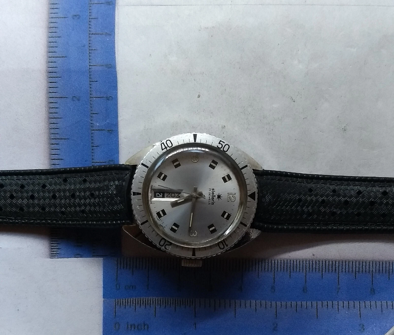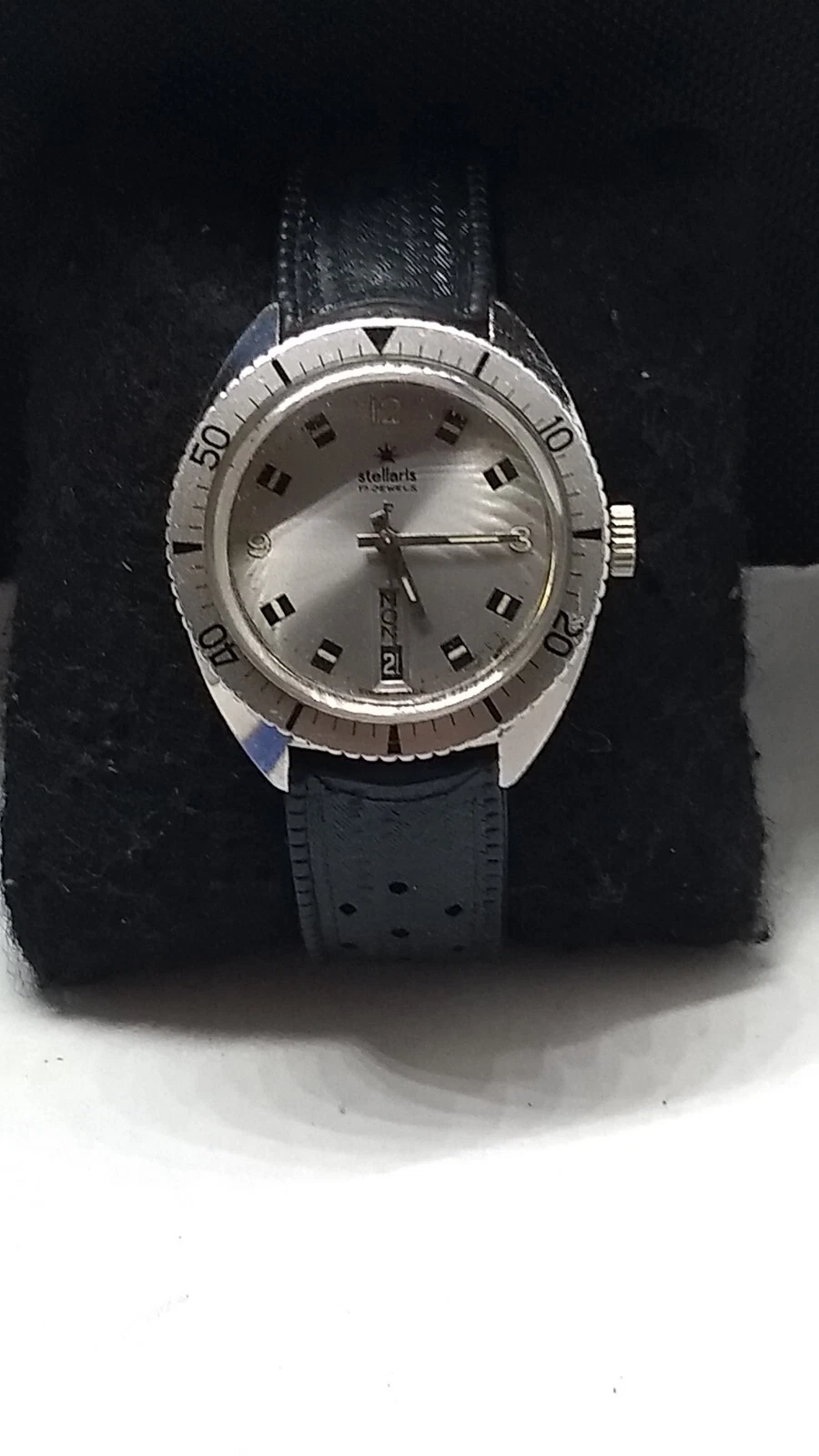 Vintage 70s Stellaris Skin Diver Watch.17j.Day&Date,At 6:00,Swiss Made Wind Up.