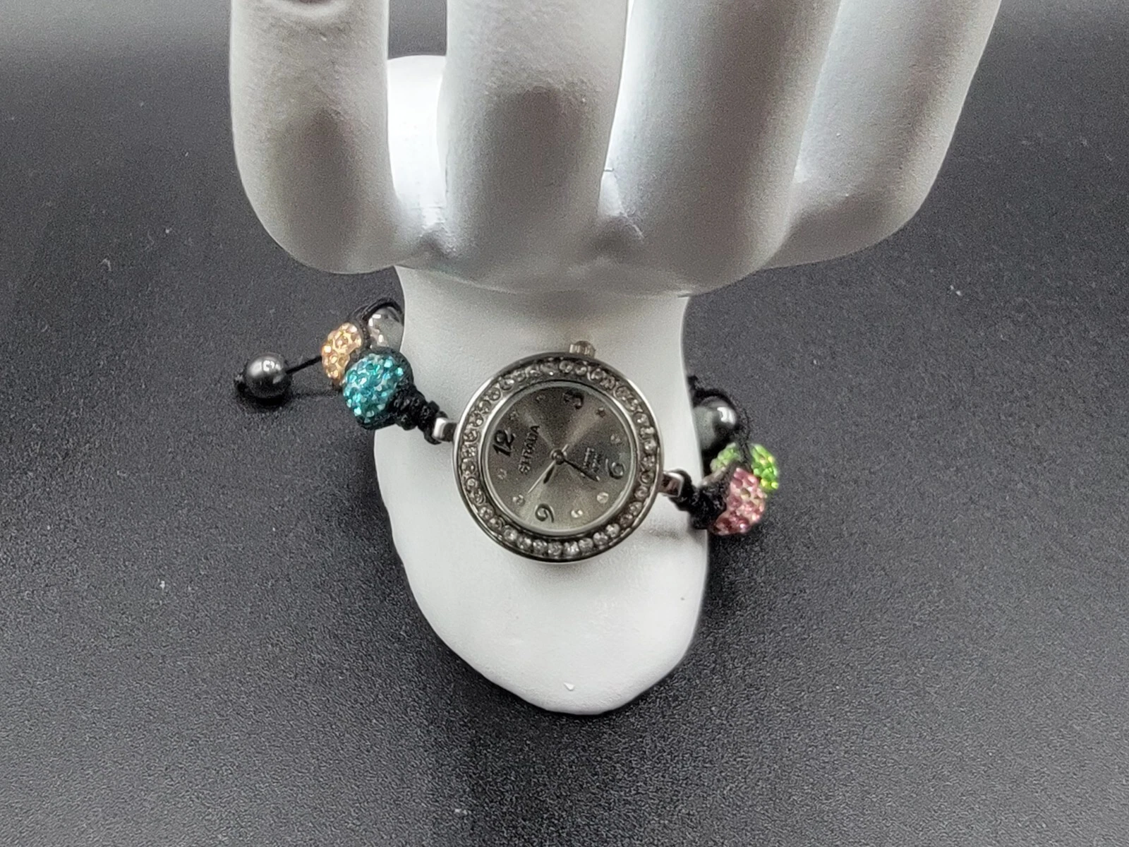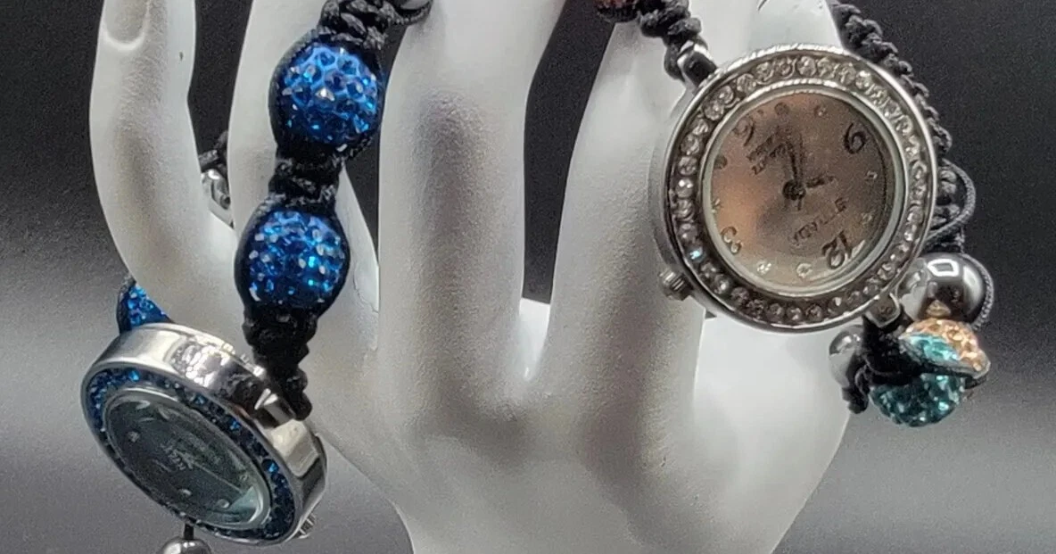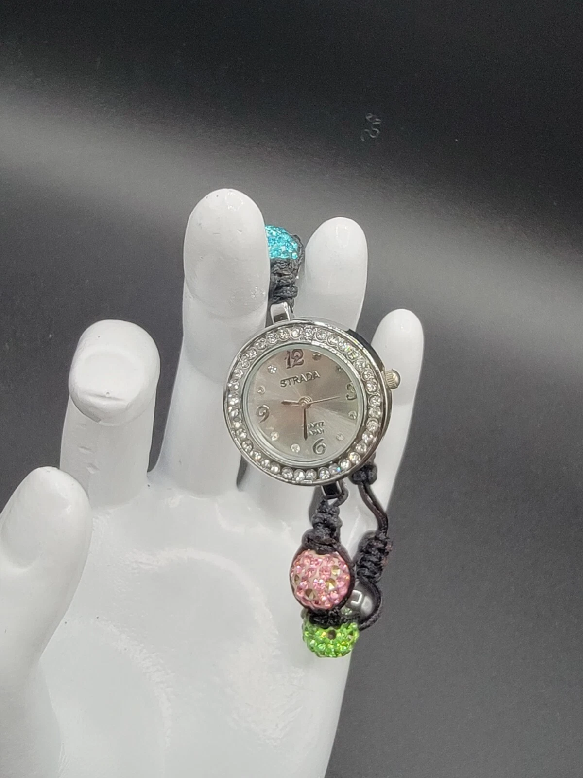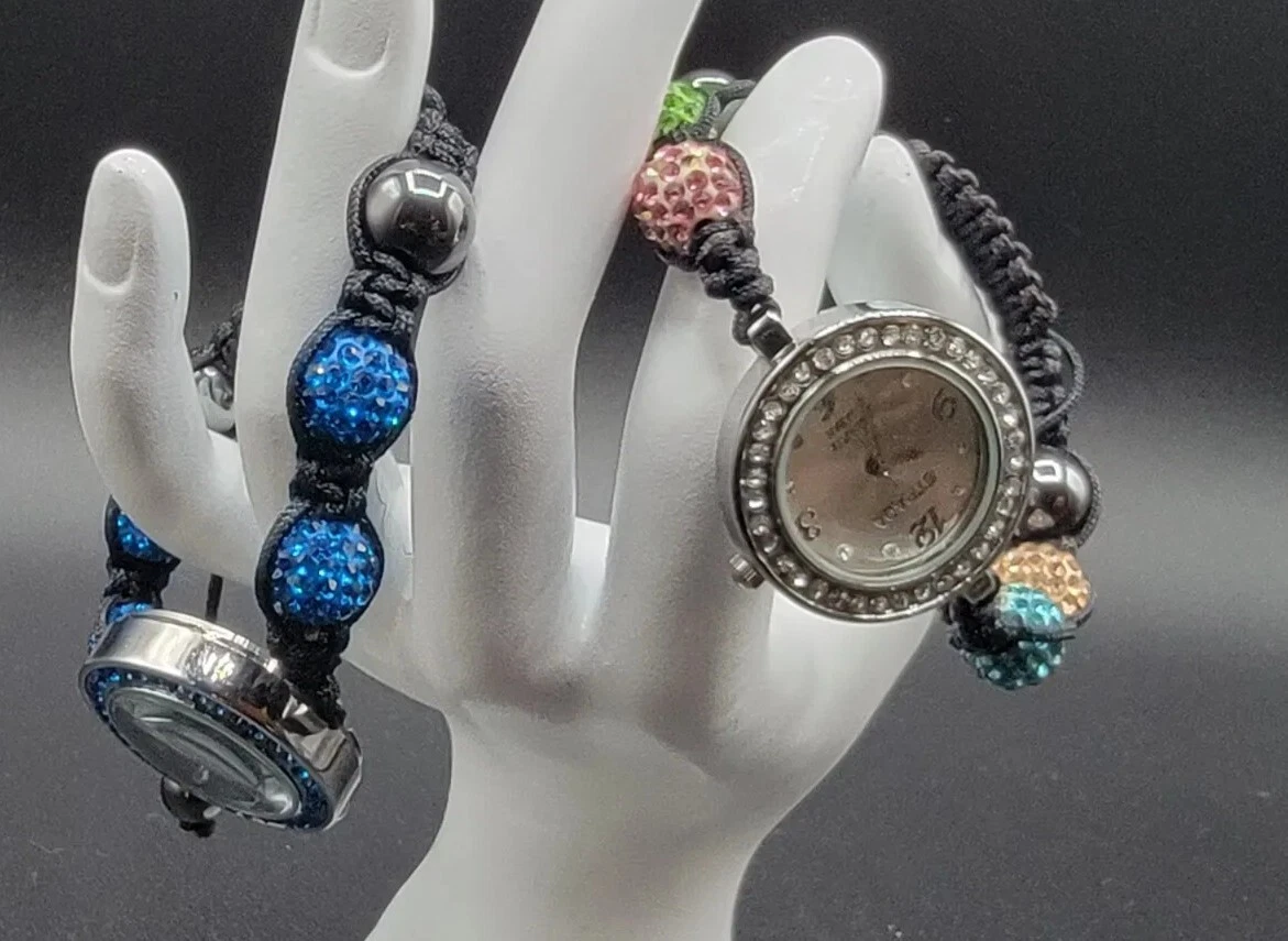 Strada Quartz Ladies Watches 2 Gorgeous Adjustable Rhinestone Beaded Bracelets