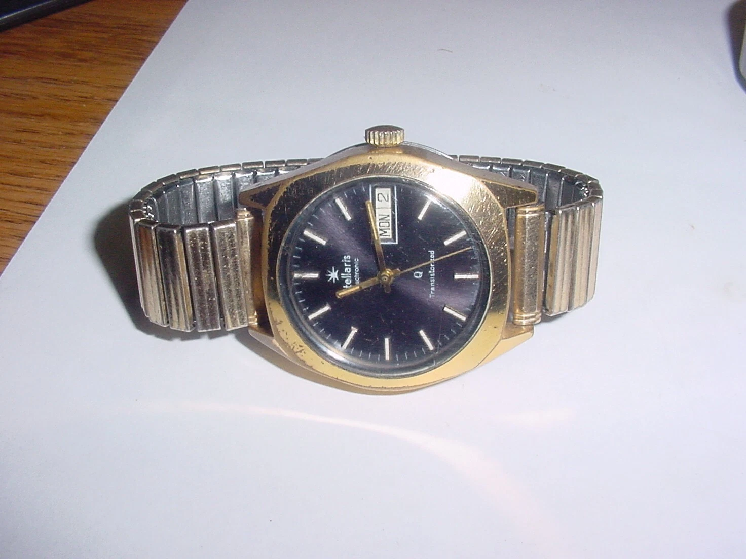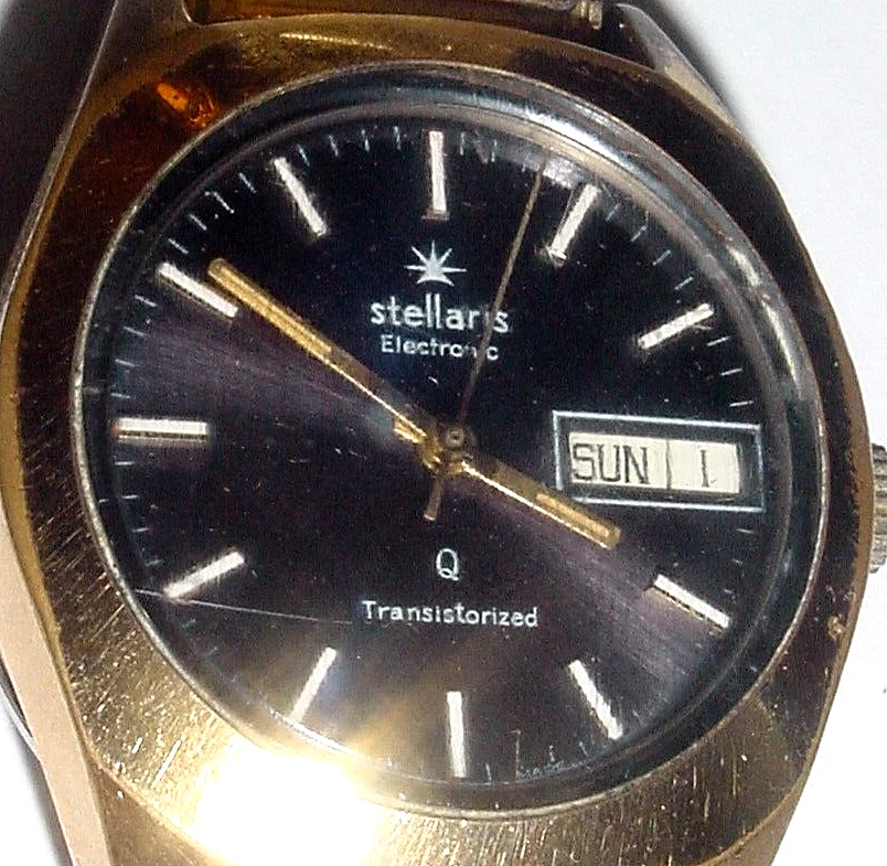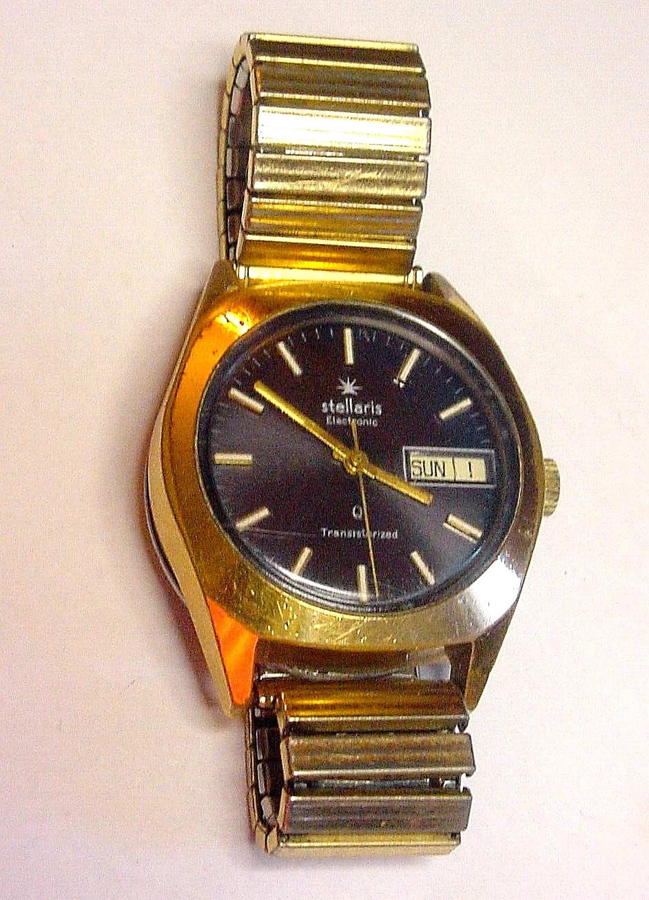 Vintage Stellaris Electronic Transistorized Watch Black Dial SHIP FREE 2 US ONLY