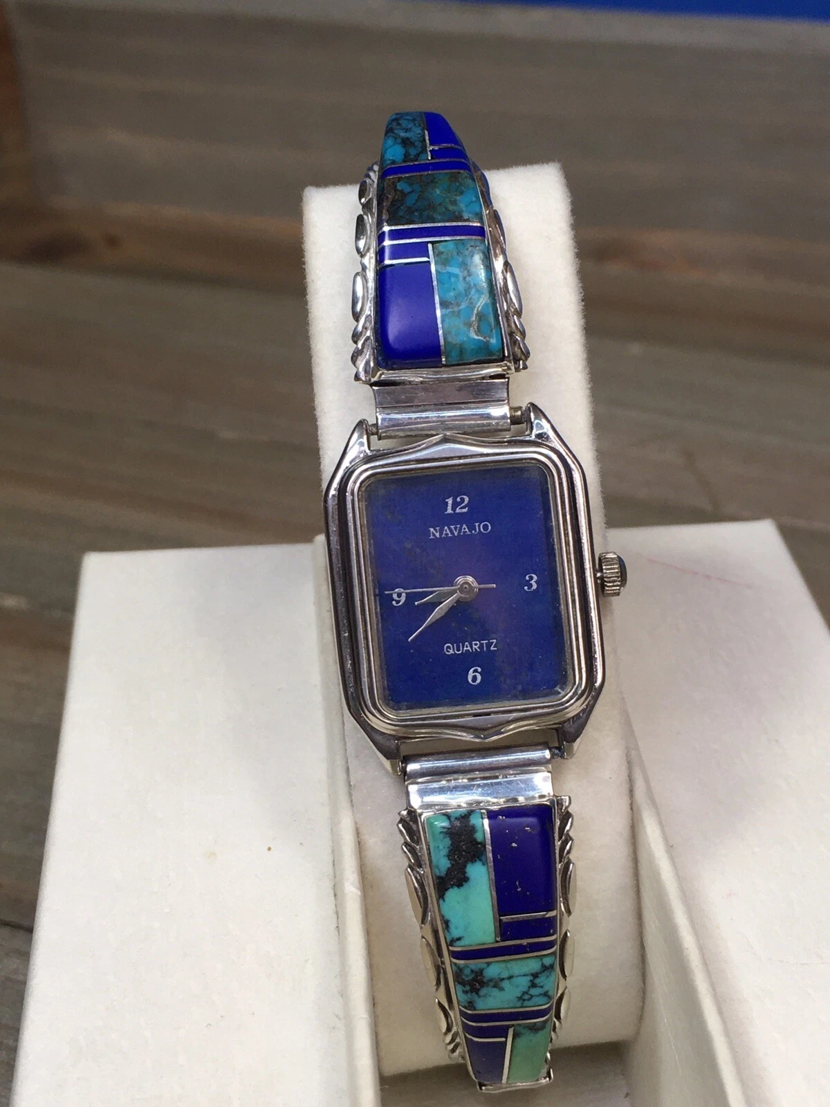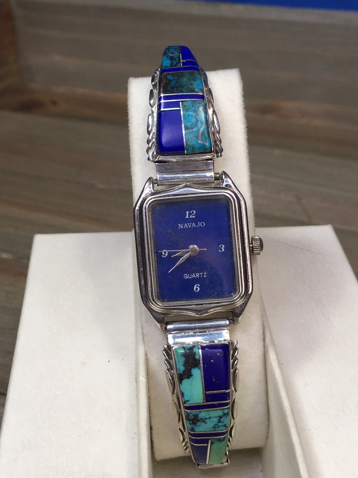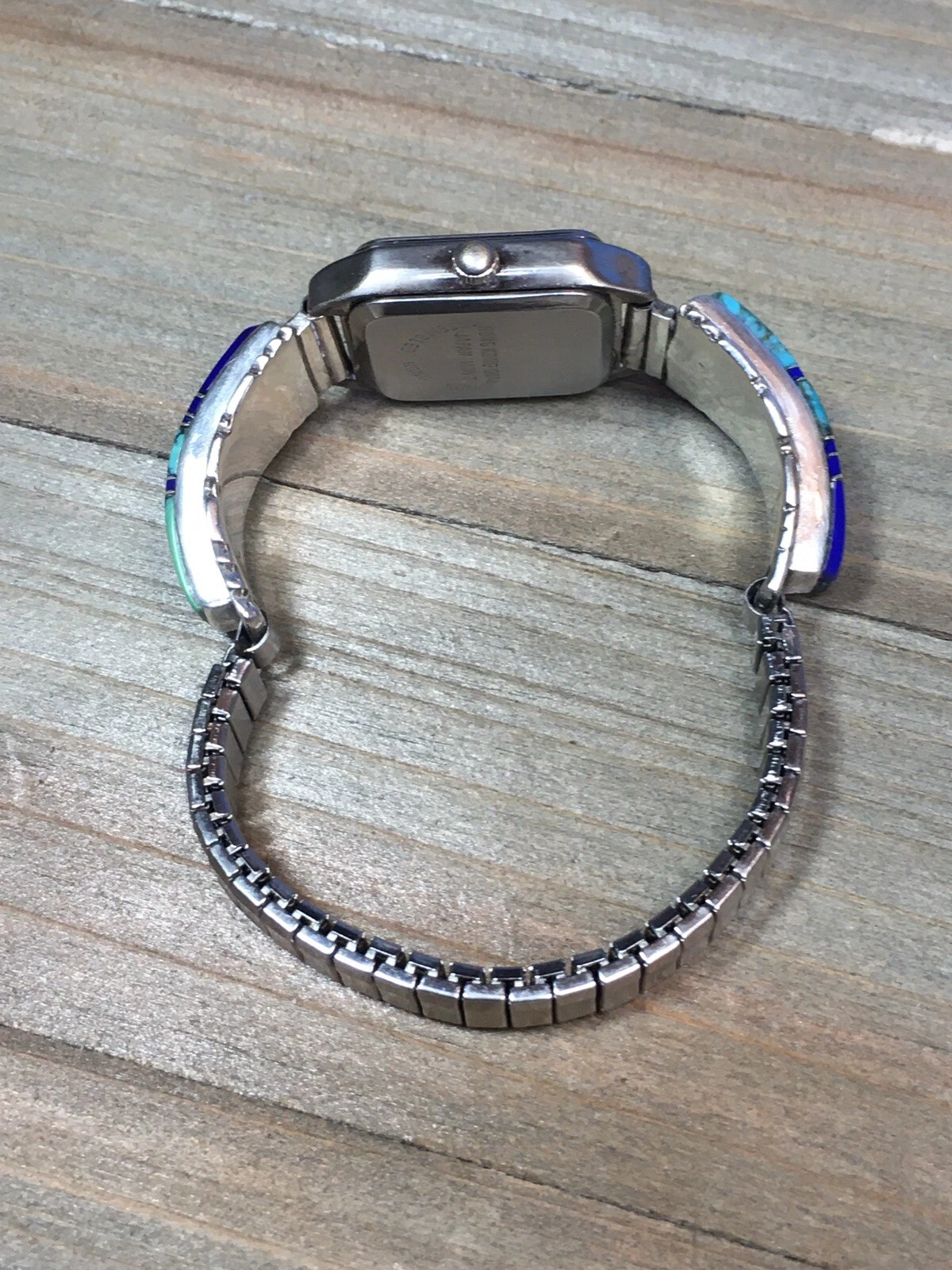Vintage Zuni Inlay Native Turquoise Lapis Ladies Watch Sterling New Battery