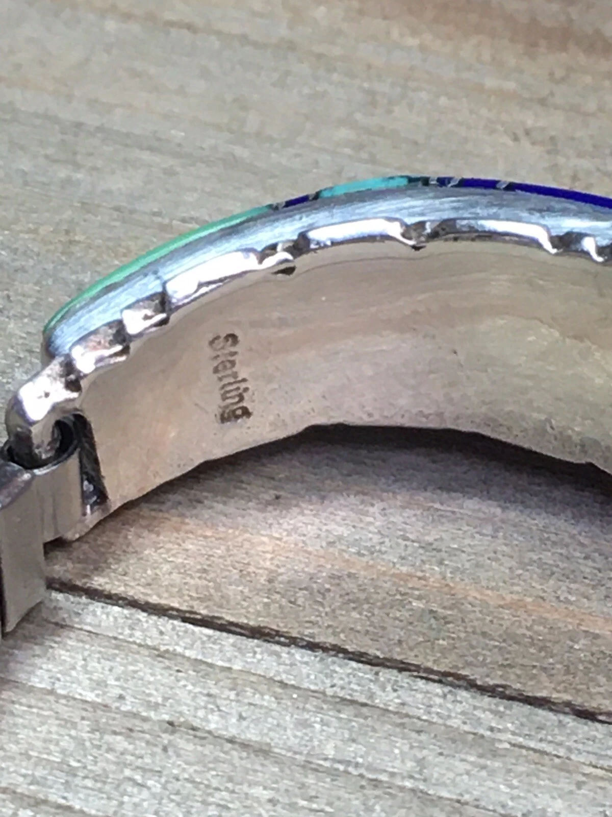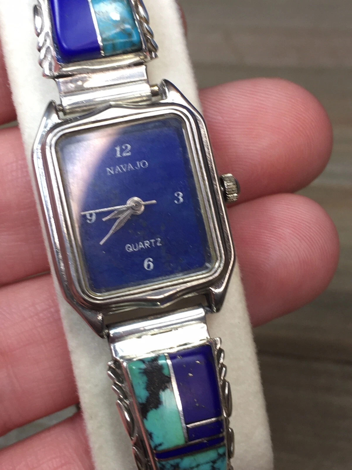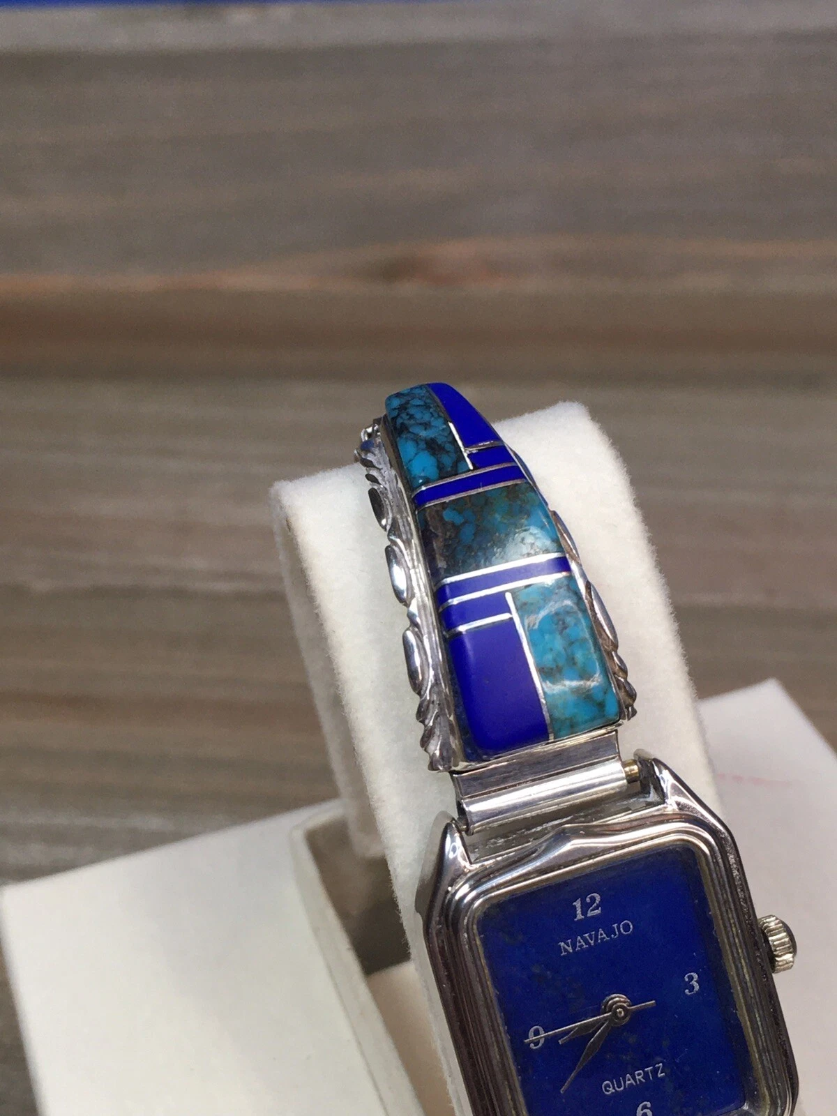 Vintage Zuni Inlay Native Turquoise Lapis Ladies Watch Sterling New Battery