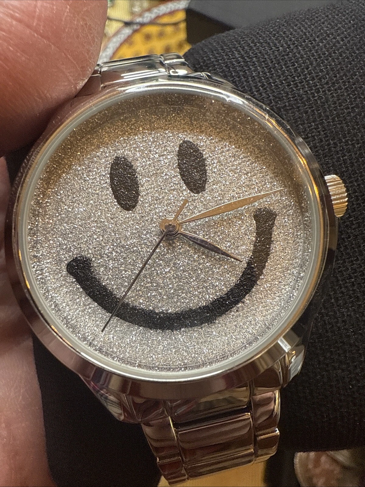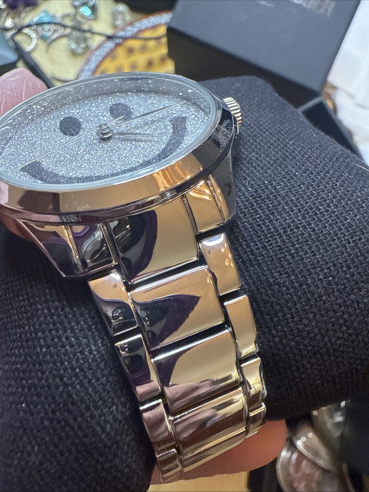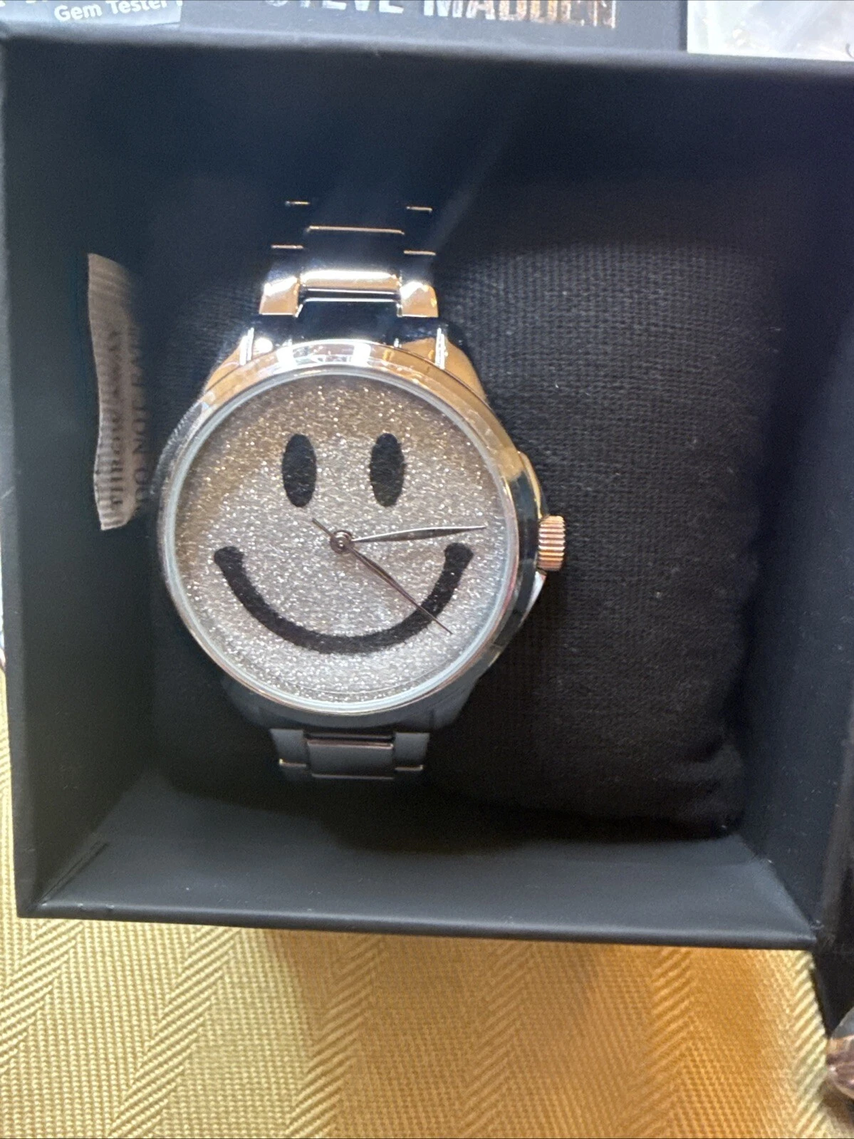 steve madden smiley face watch mens Unisex Silver Sparkle New In Box