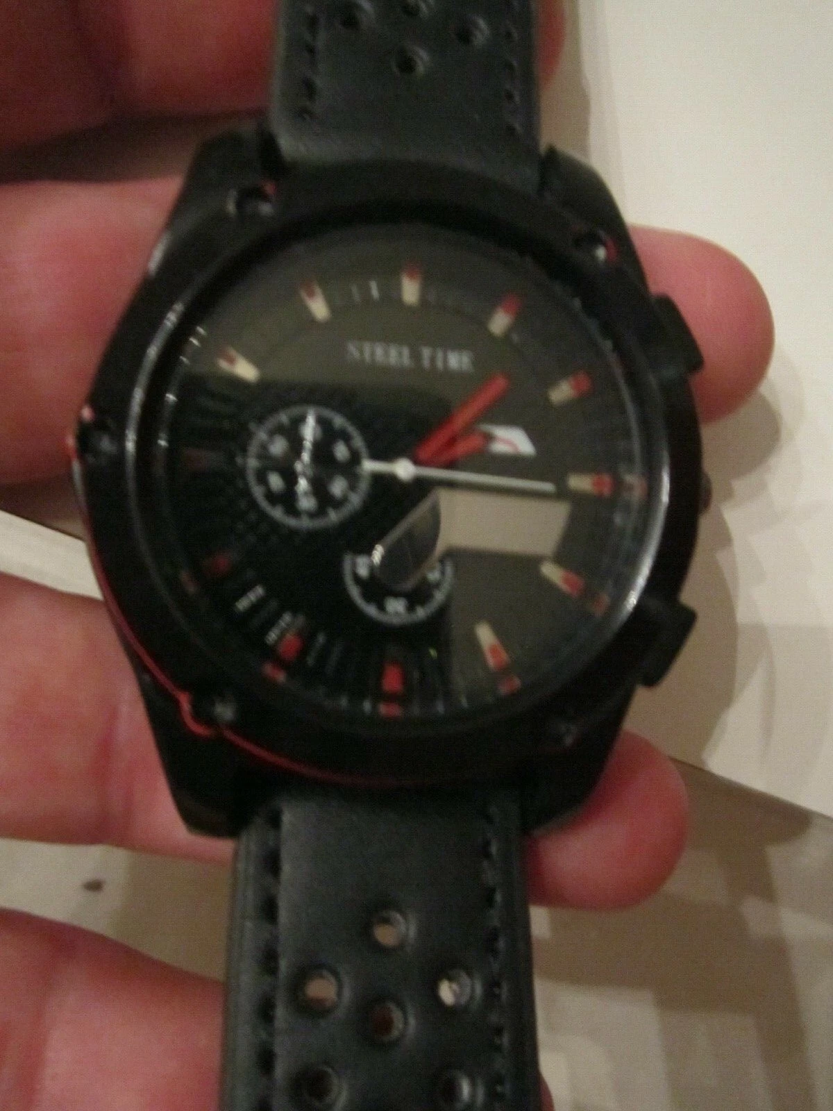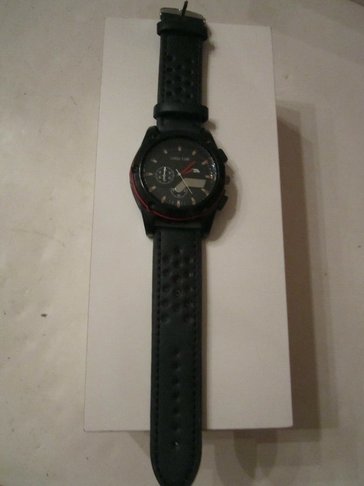STEEL TIME WATCH - QUARTZ - BLACK FACE WITH RED BEZEL -  BBA-26