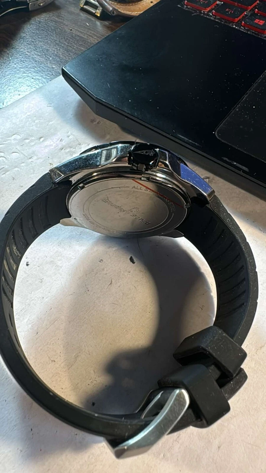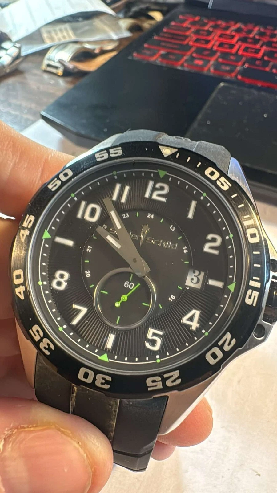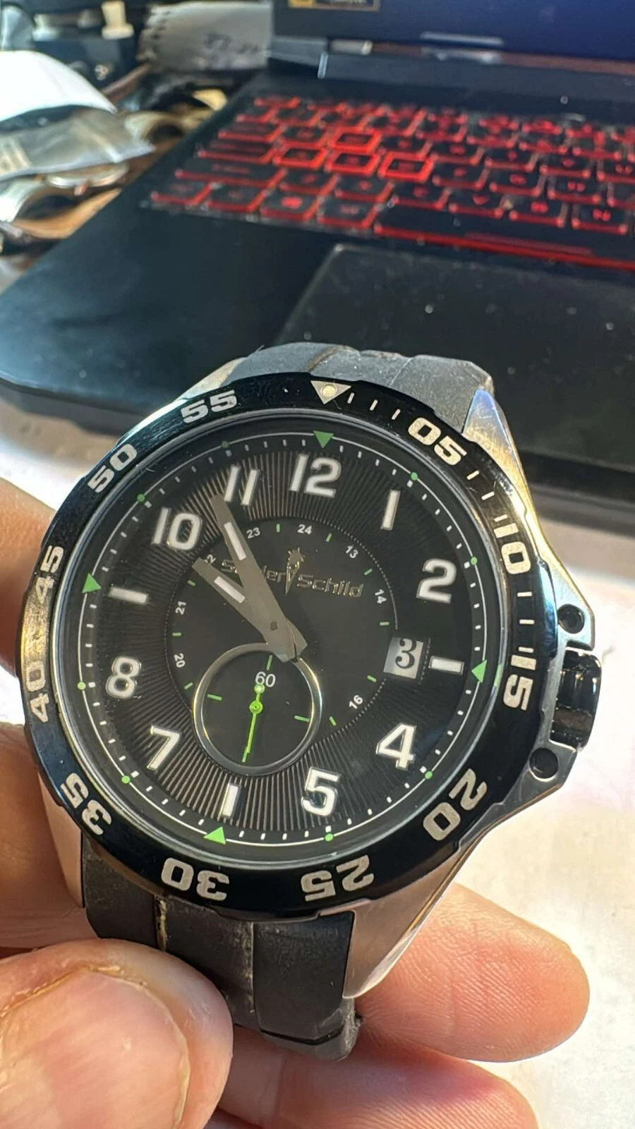Mens SS 44MM Studer Schild quartz sports watch new battery runs rubber strap