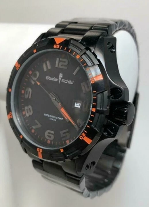 NEW Studer Schild 0102M Dyson Series Multi-Function Mens Black/Orange Date Watch