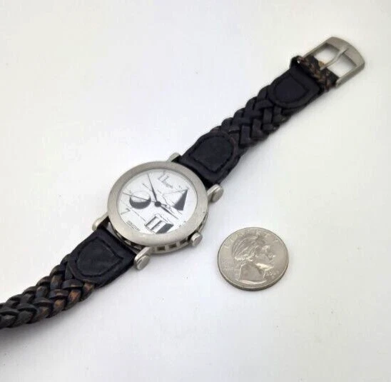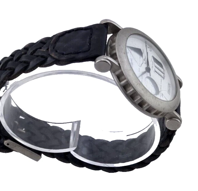 Structure Slim Mens Watch Geometric Shapes w Micro Adjust Leather Band NEW BATT
