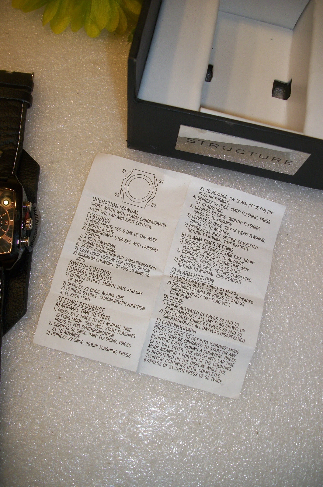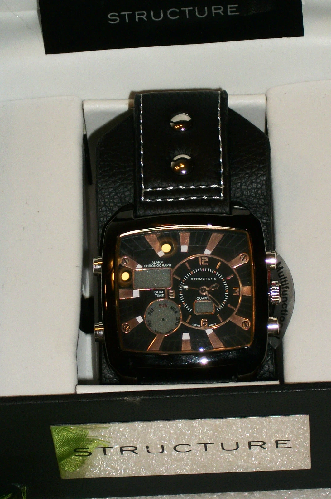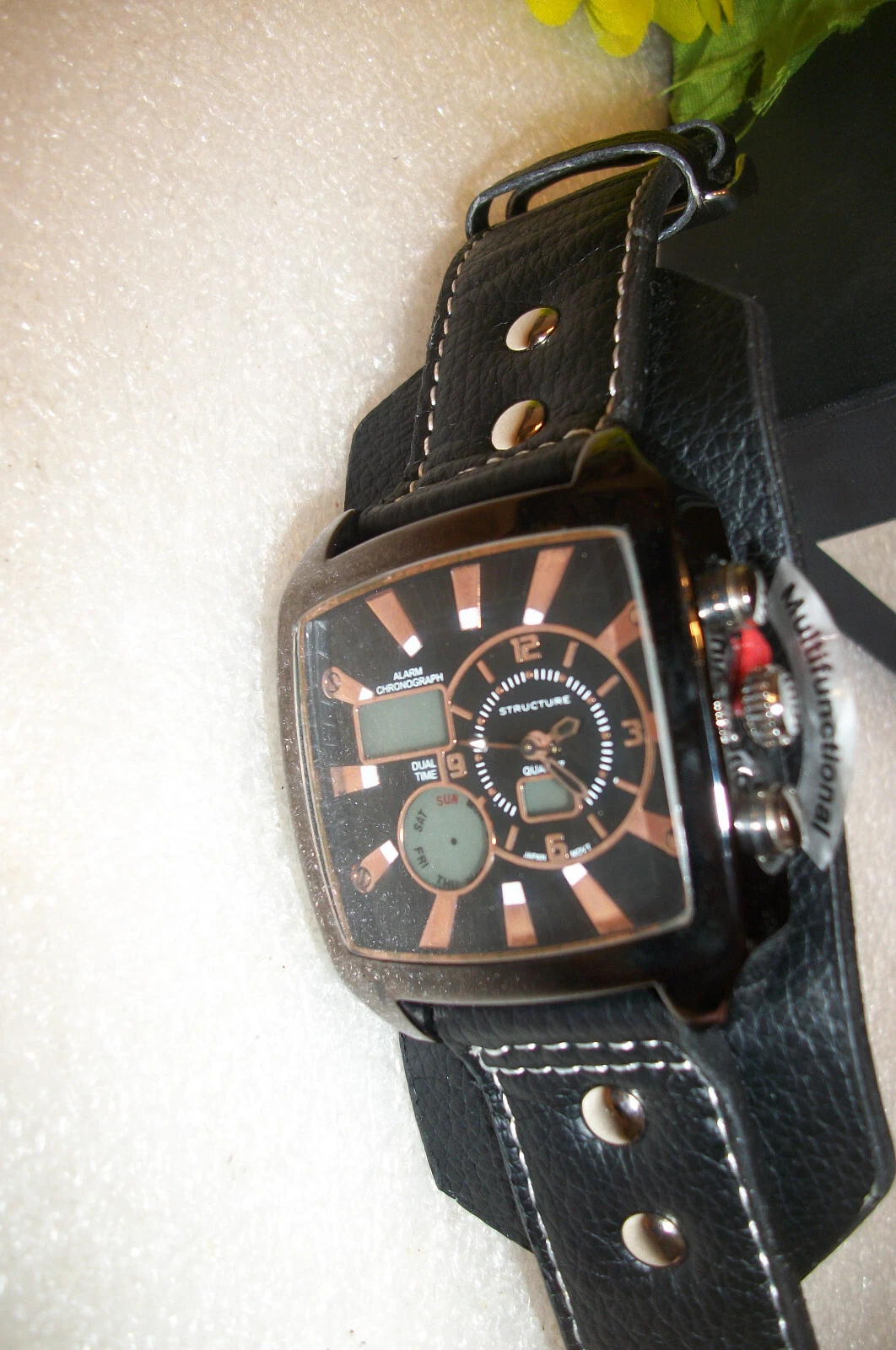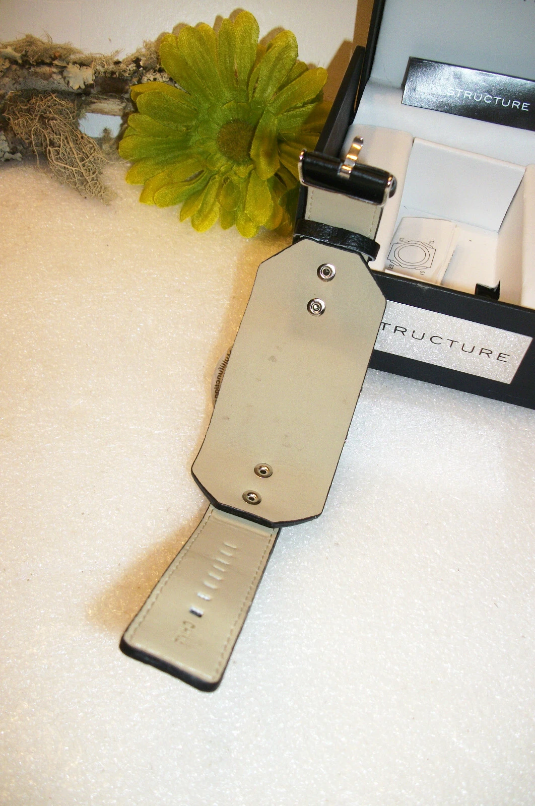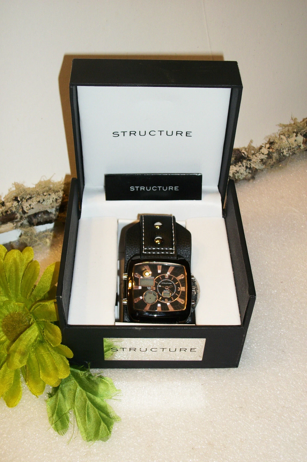 STRUCTURE NEW Men's Multi-Function Watch # 32377 Black Faux Leather Band