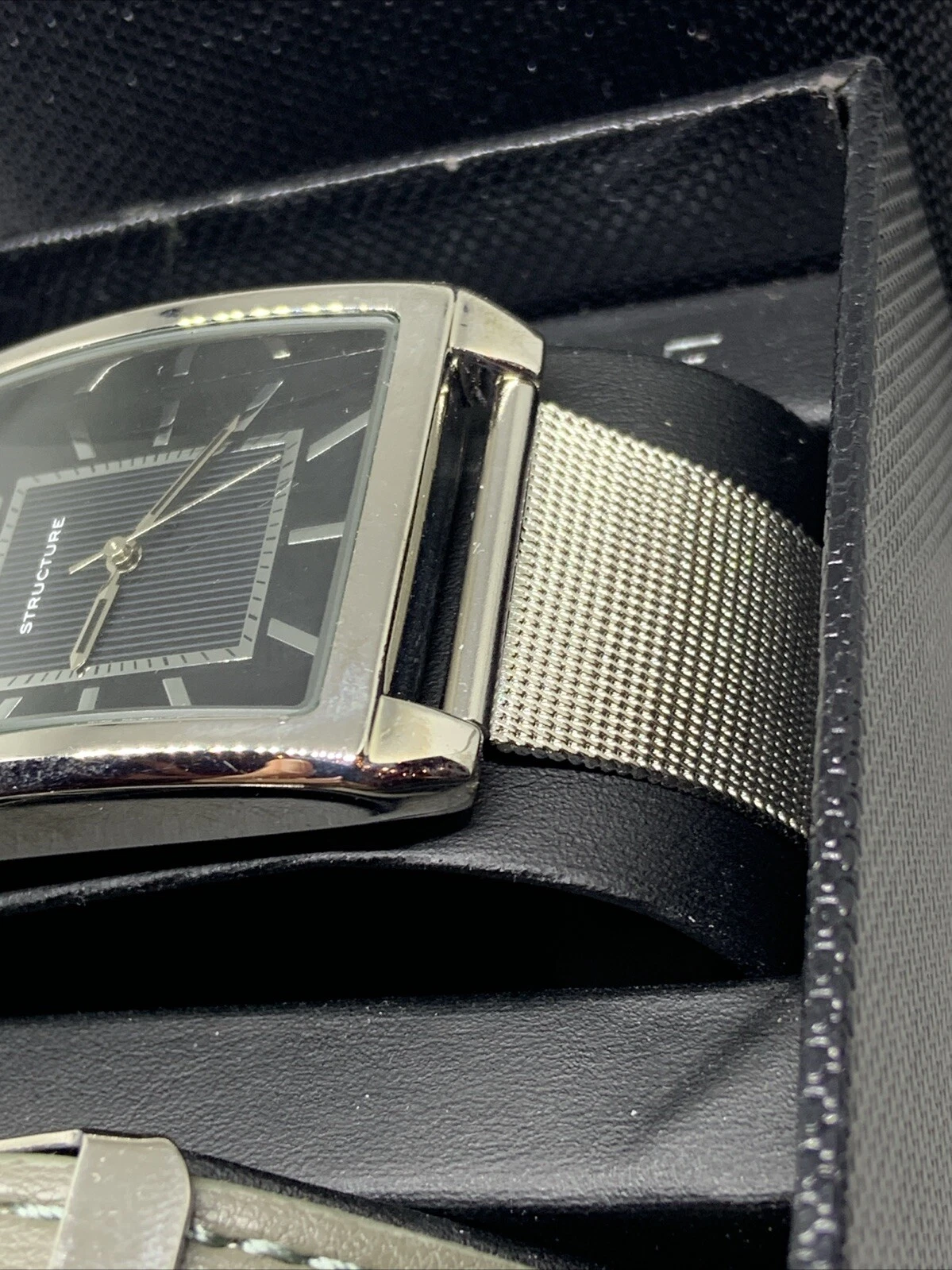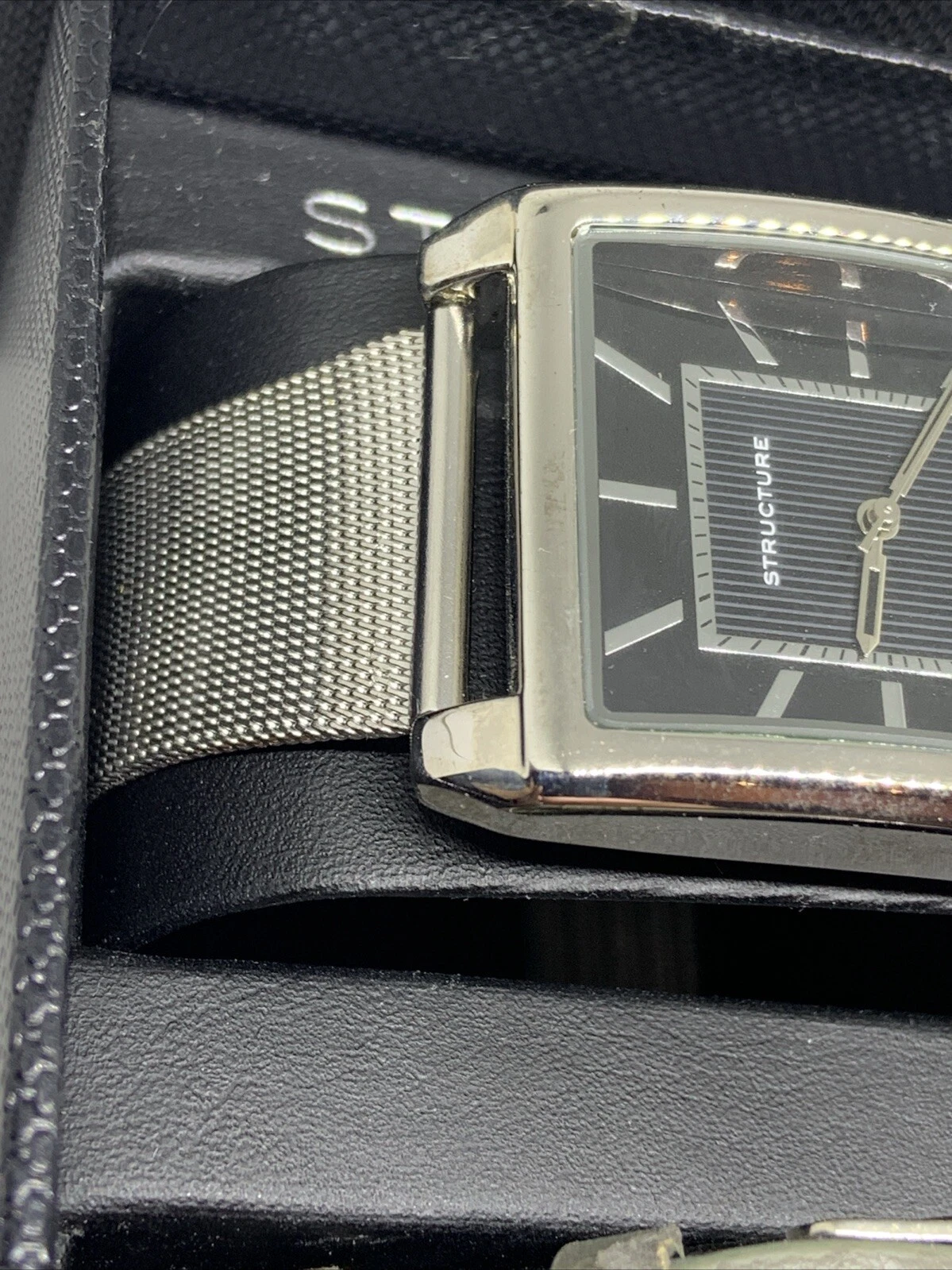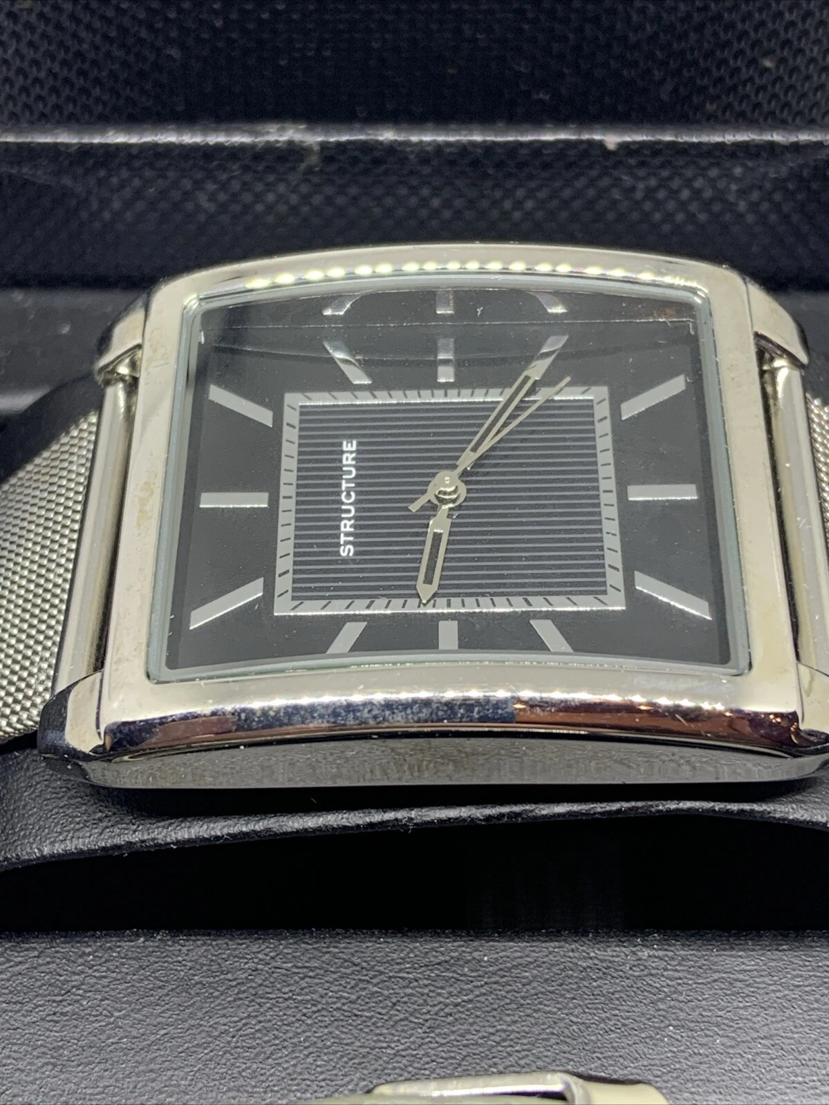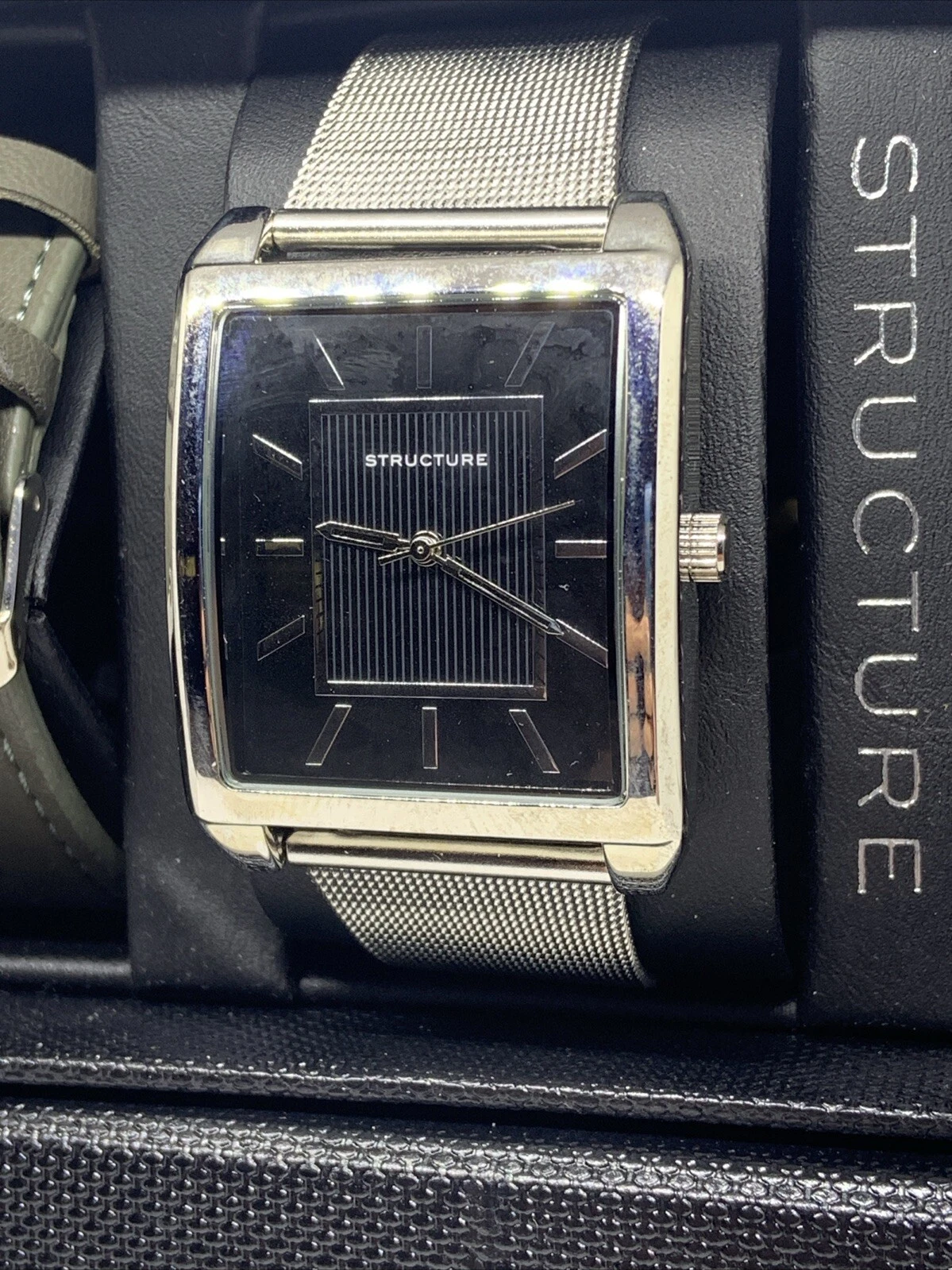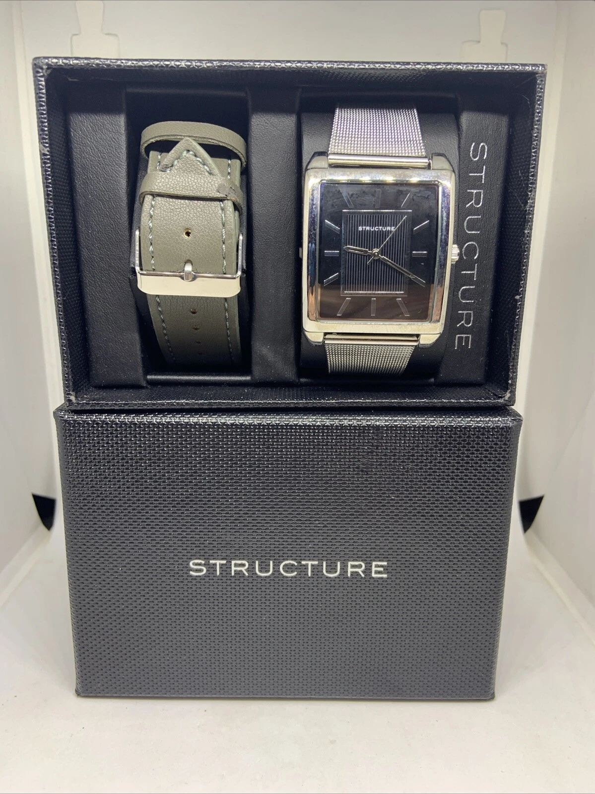 STRUCTURE Analog Quartz MENS WATCH SET Silver Tone Mesh Band Rectangle 62035-R13