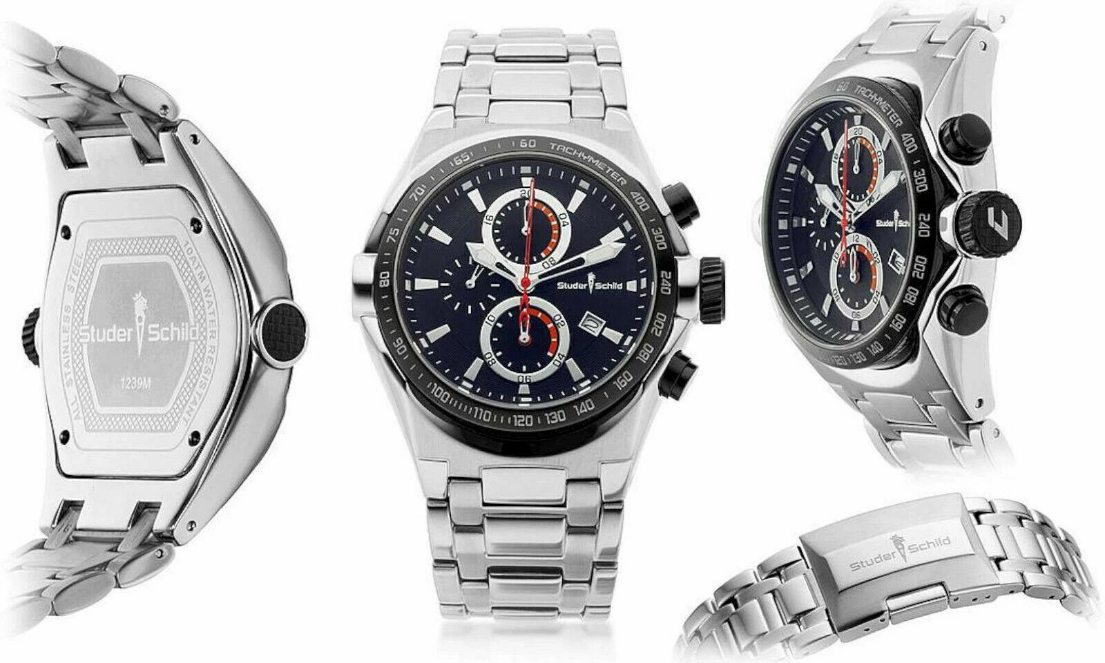 NEW Studer Schild 1239M-BLU Men's Sabin Blue Dial Steel Link Watch chronograph