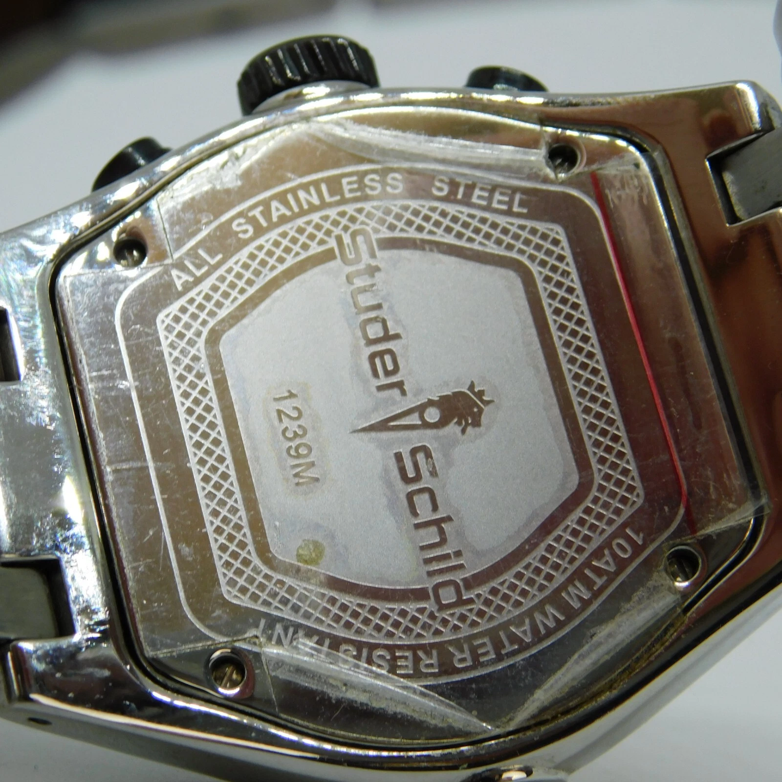 Studer Schild 1239M All Stainless Steel Quartz Men's Watch Sz. 8" New Battery