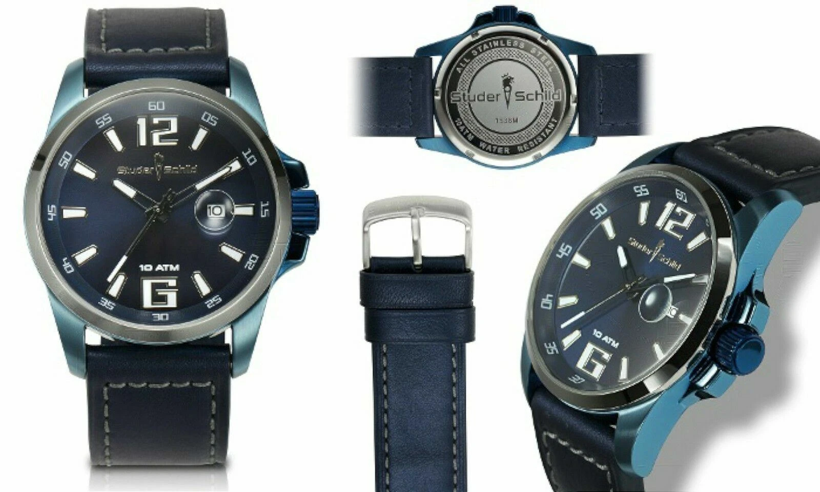 NEW Studer Schild 1538M Men's HOLLERITH Collection Blue Leather Fashion Watch