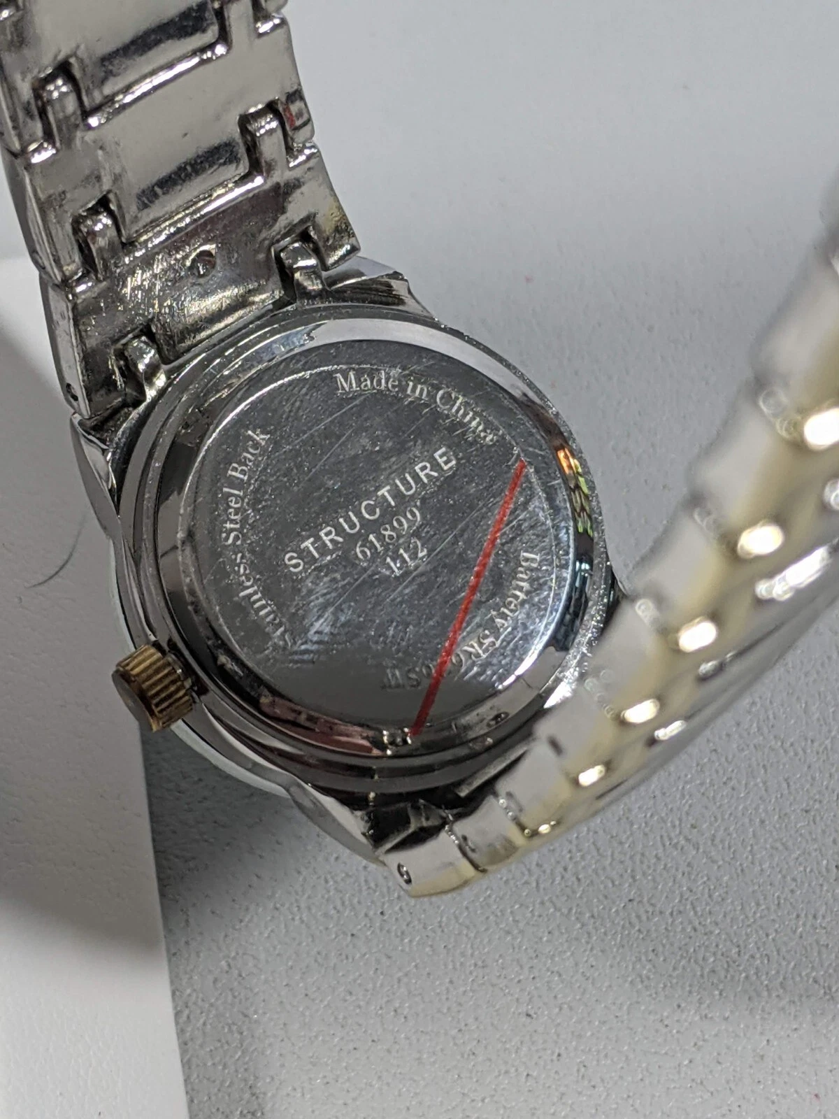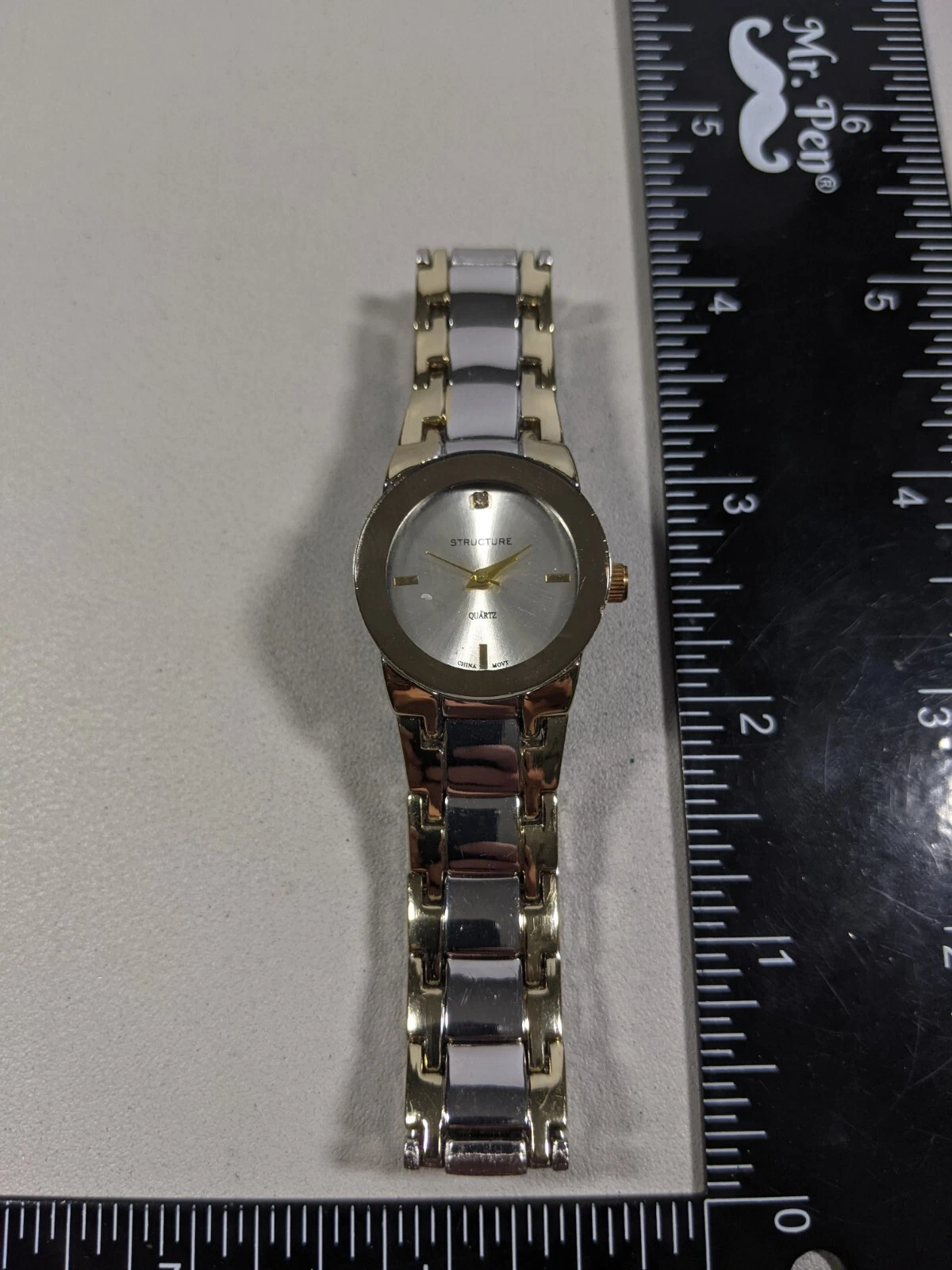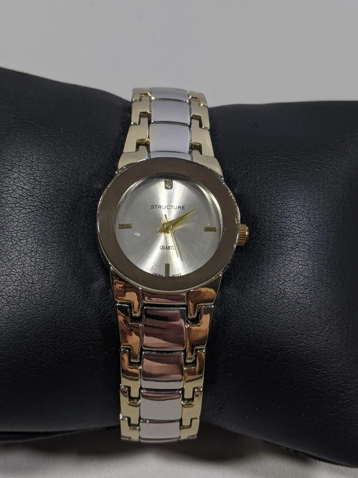 Structure Silver Tone Round Case 25 mm Stainless Steel Band Watch 7 Inch