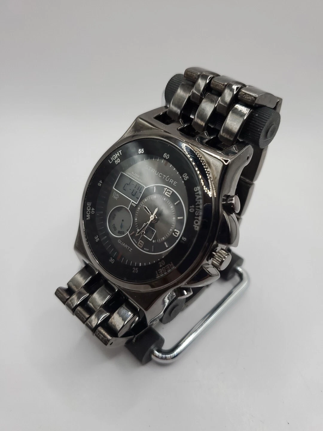 Structure Men's Multifunction Digital/Analog Quartz Watch 44mm Round Black Metal