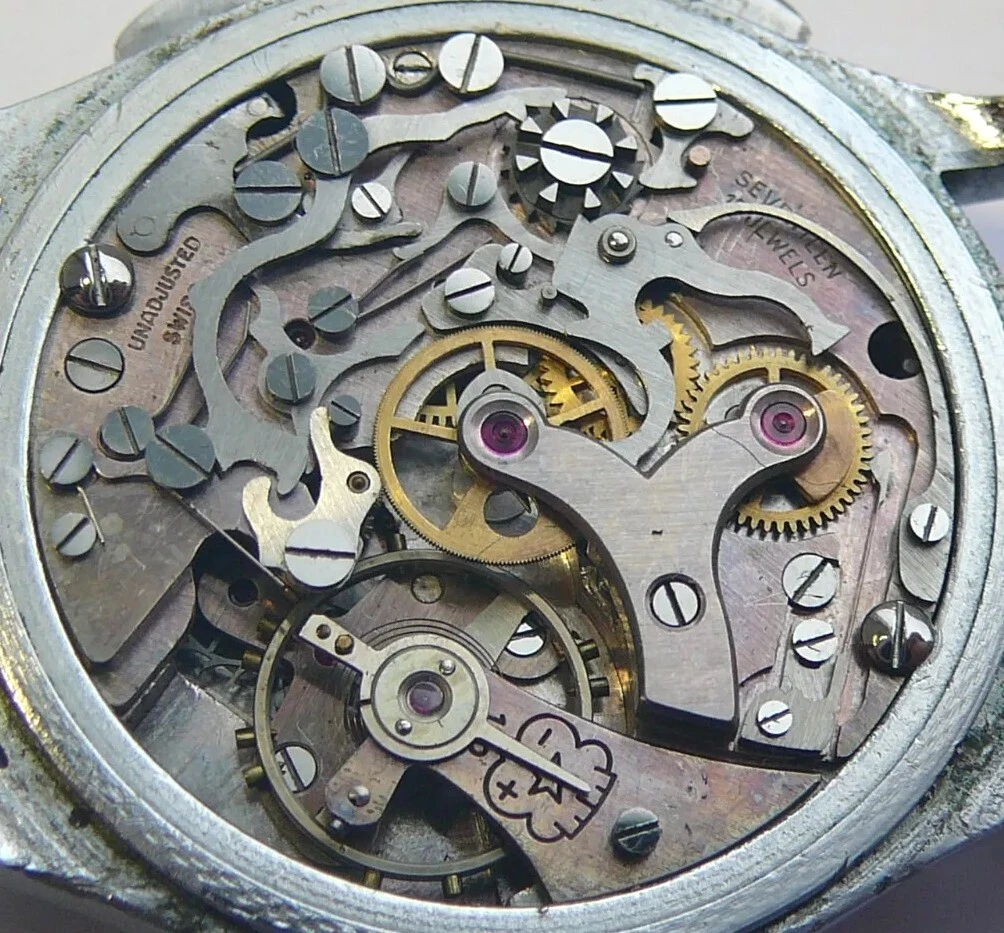 Vintage WWII Wrist Watch Chronograph Suisse Telemetre 17 Jewels Swiss