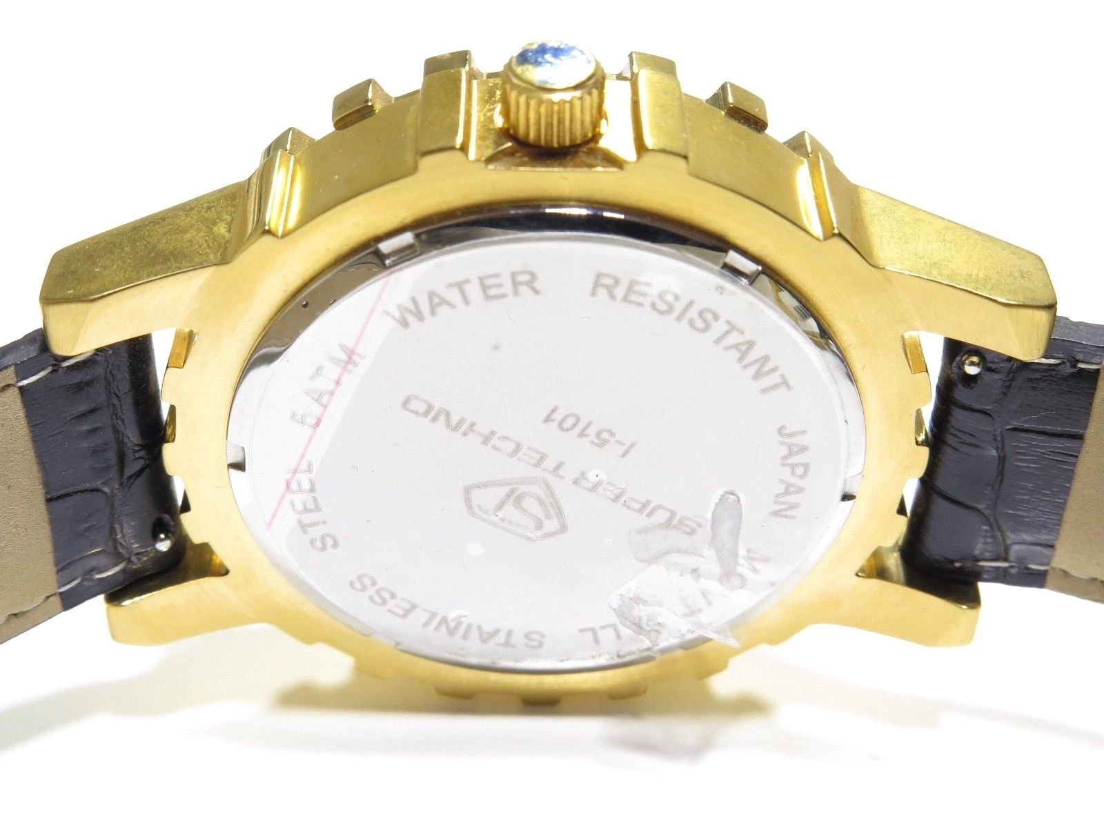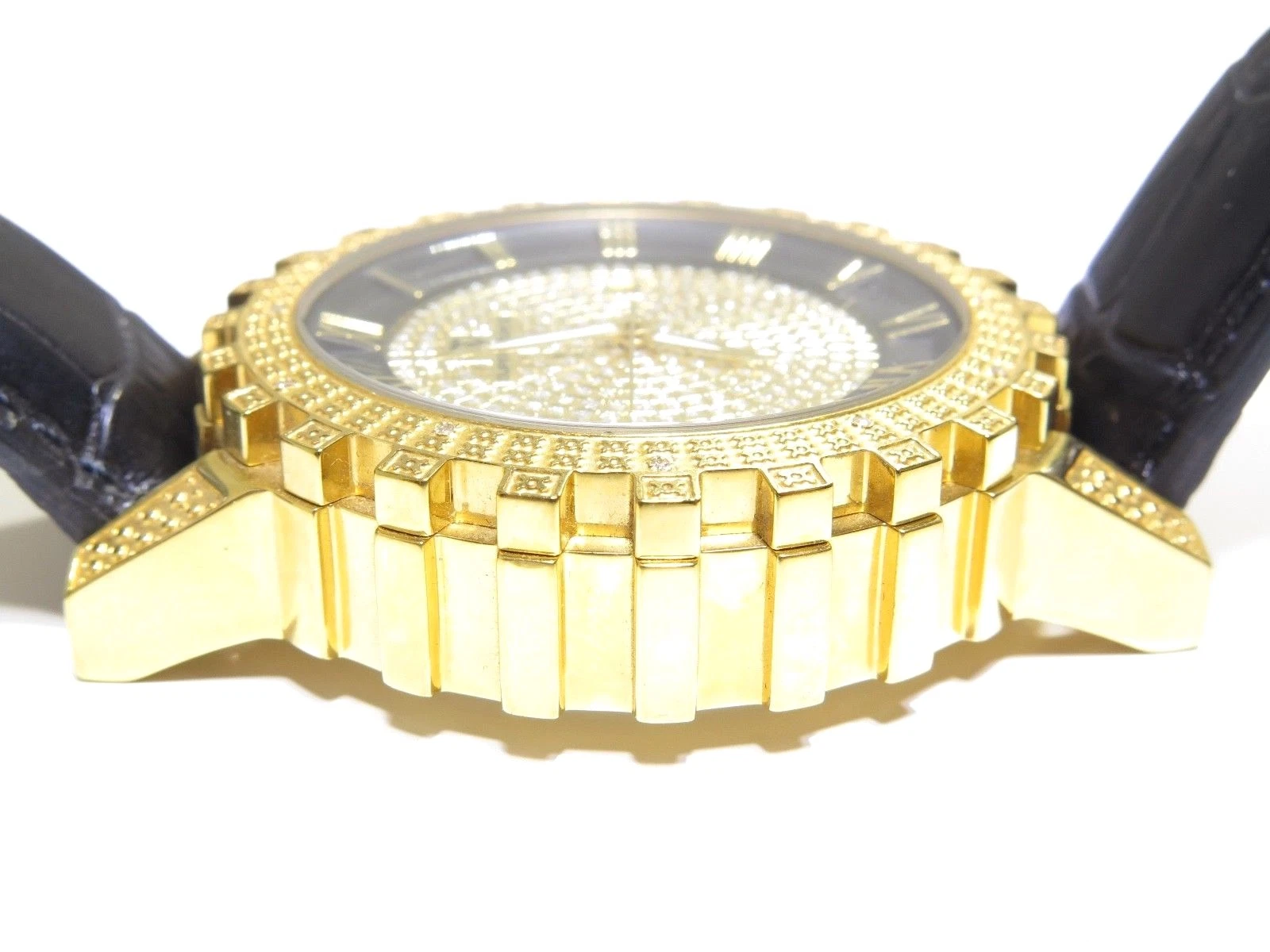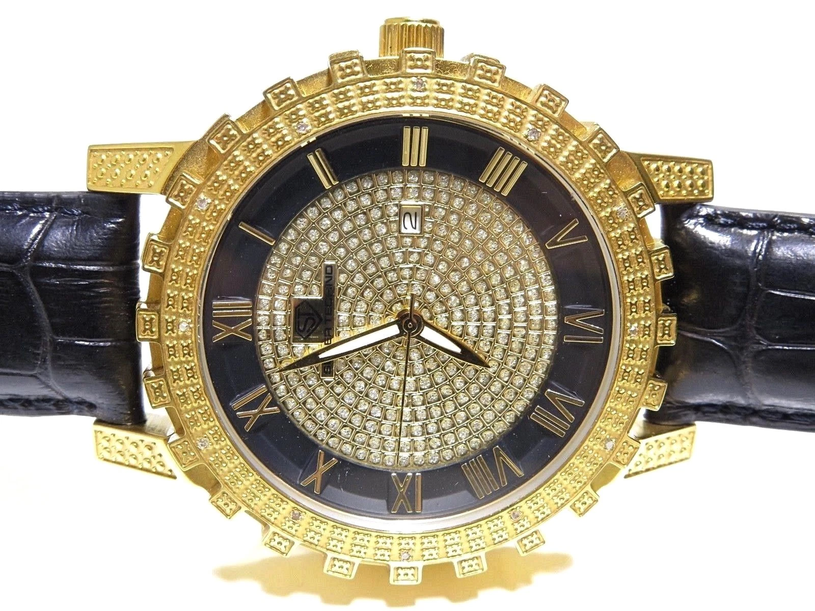 Mens Stainless Steel Yellow Gold Plated Super Techno .05ct White Diamond Watch