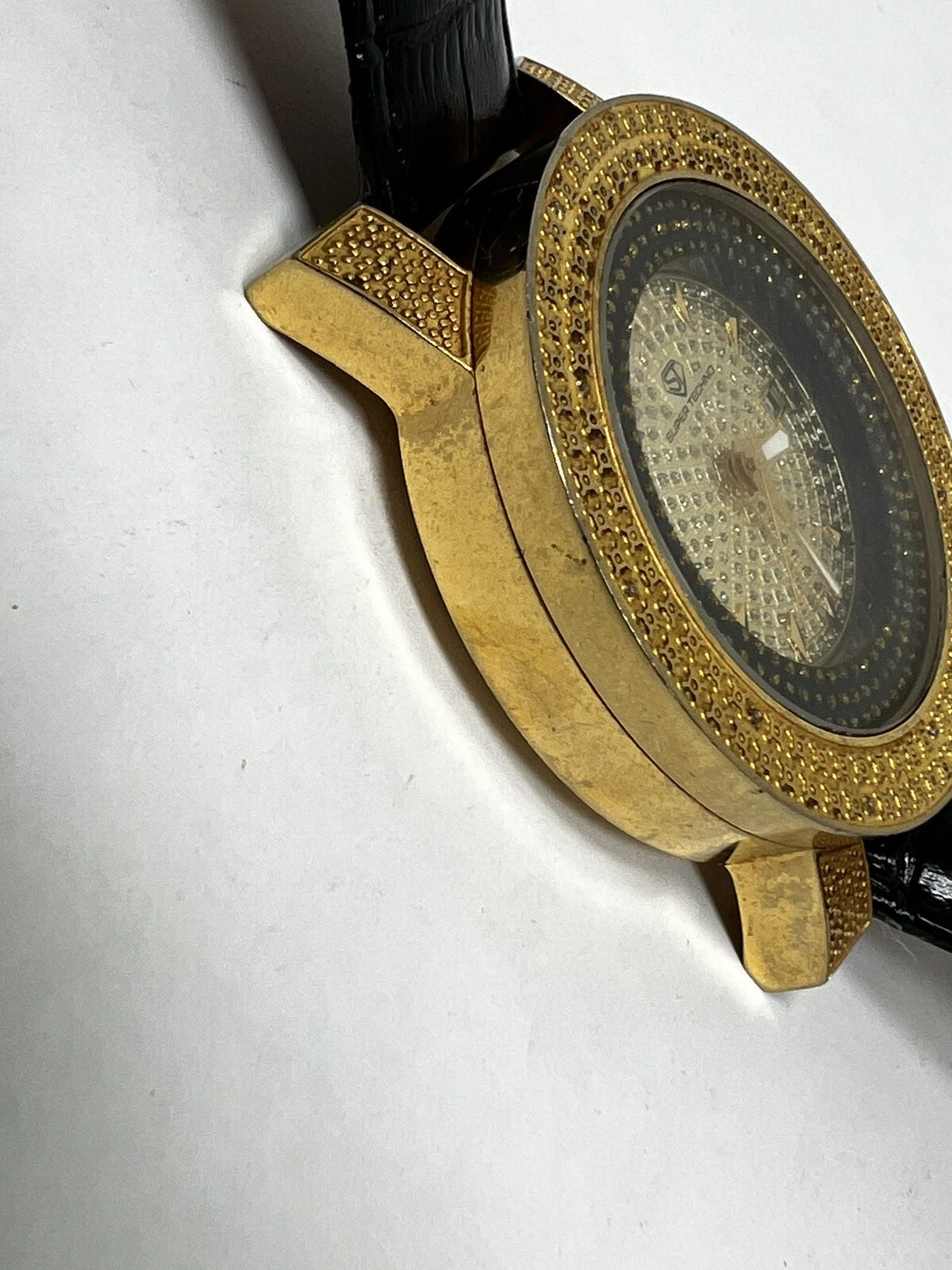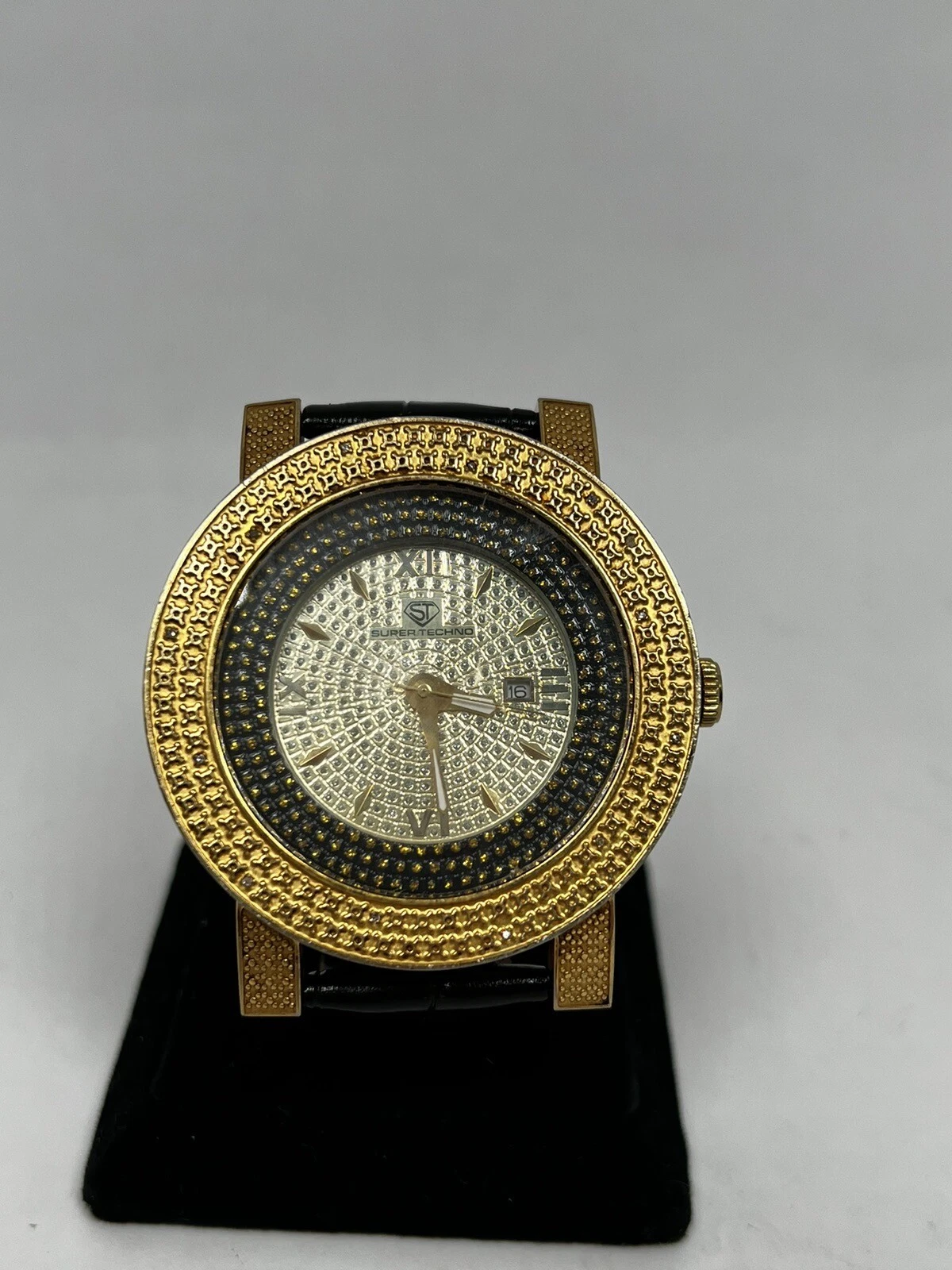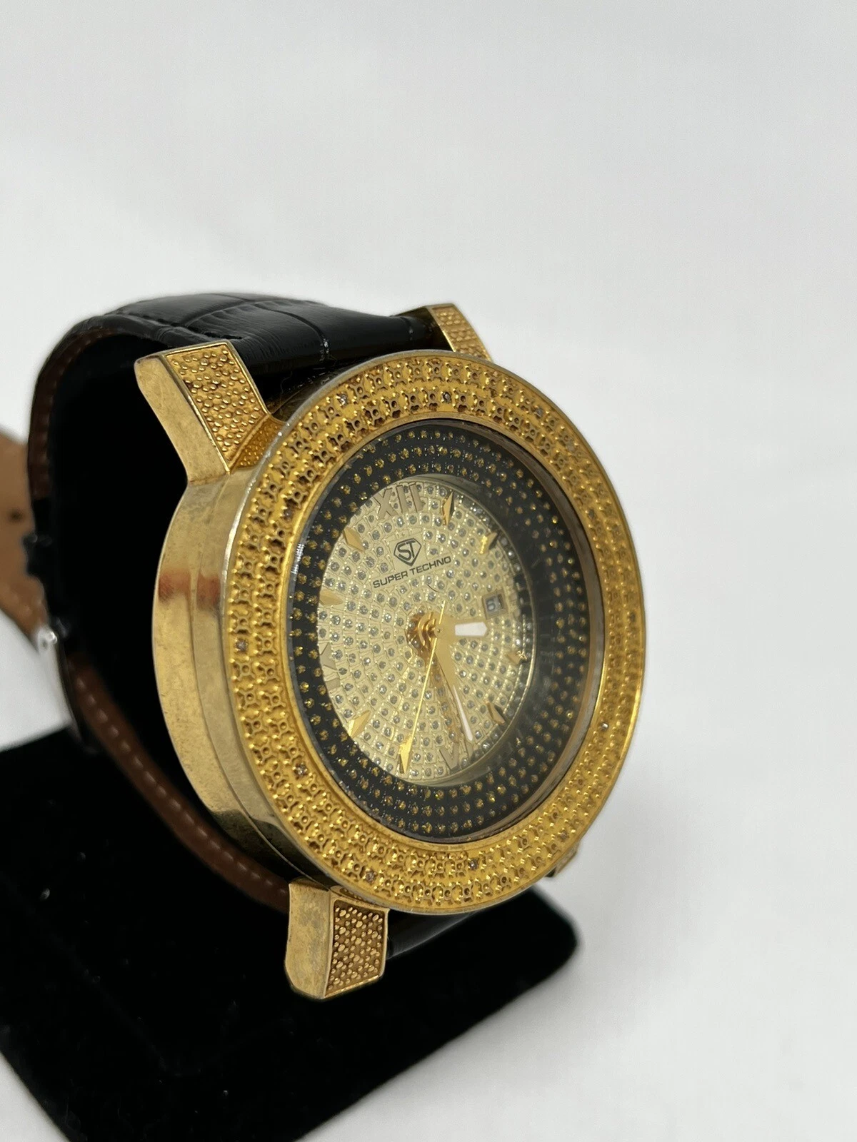 Super Techno Men's 52mm Gold Tone Leather Band Watch I5093