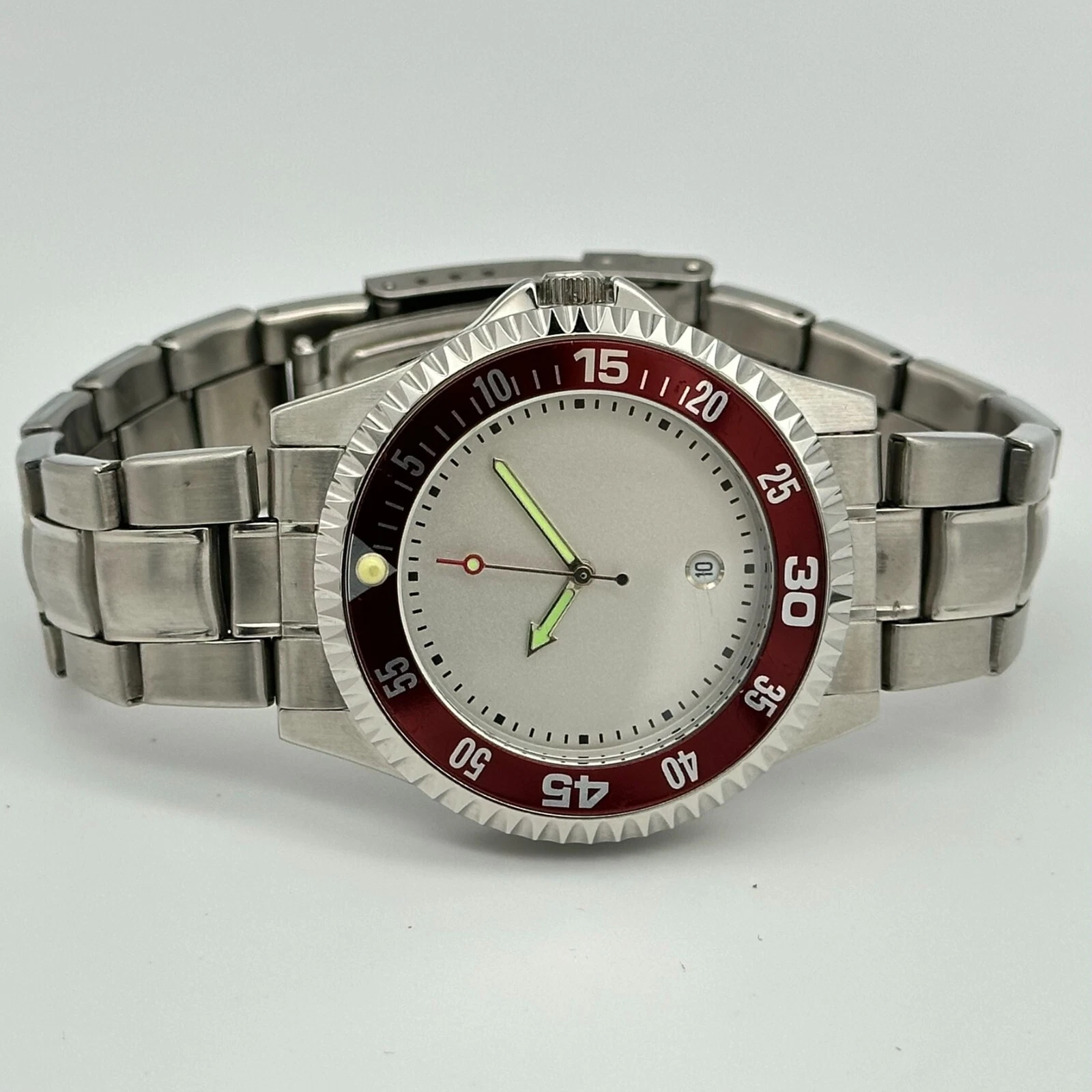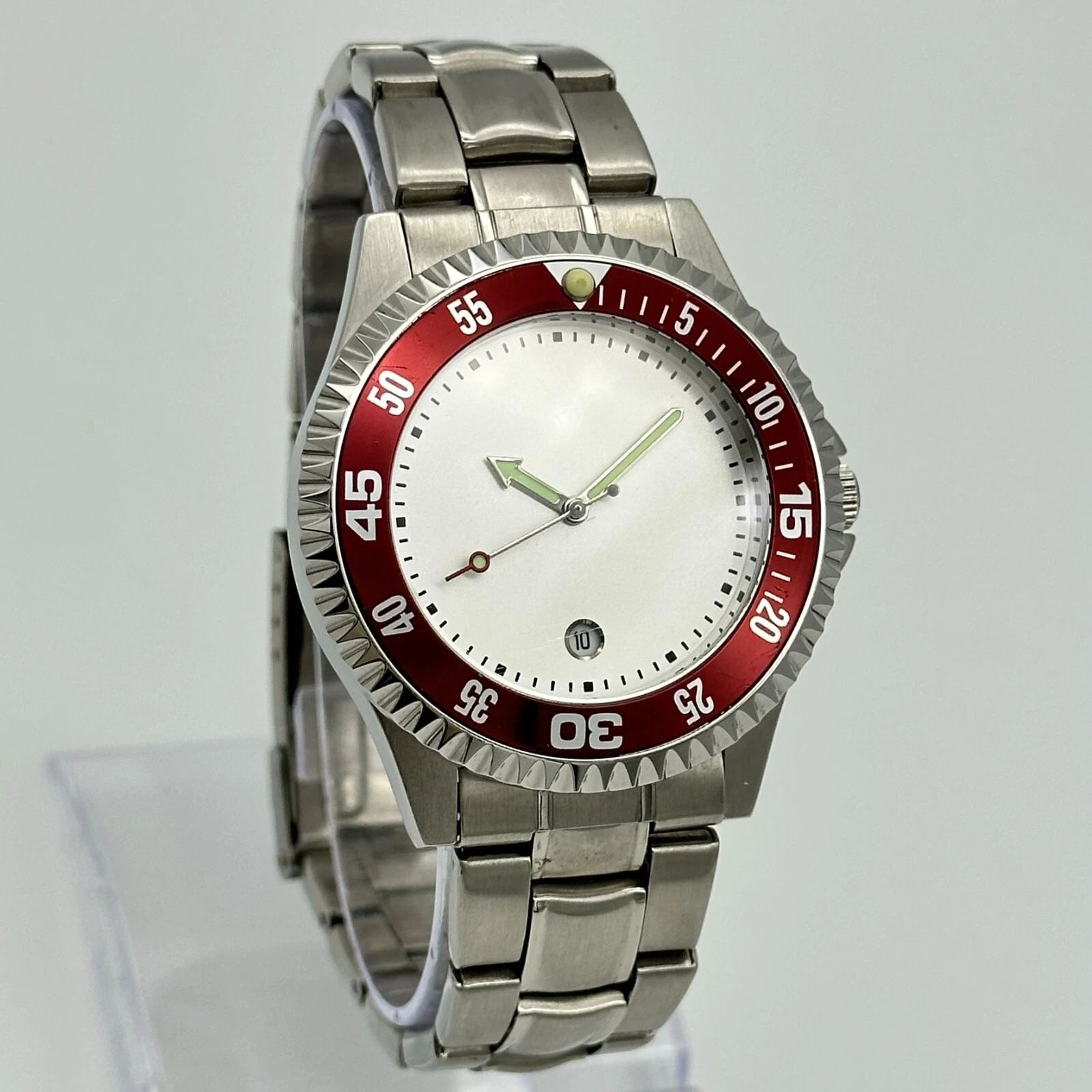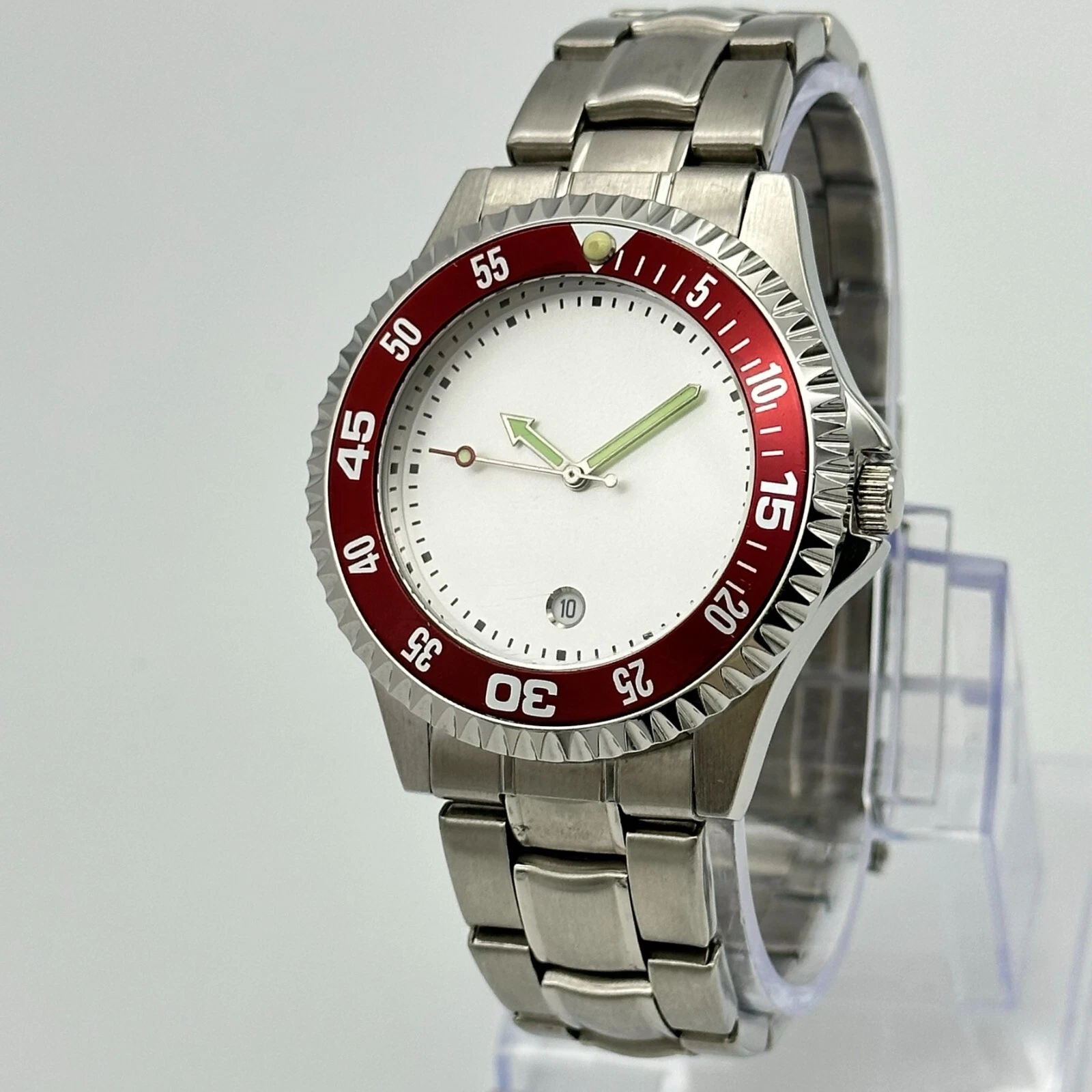 Men's SUNTIME Competitor Minimalist Silver Tone Watch, Red Bezel, Date, 40mm
