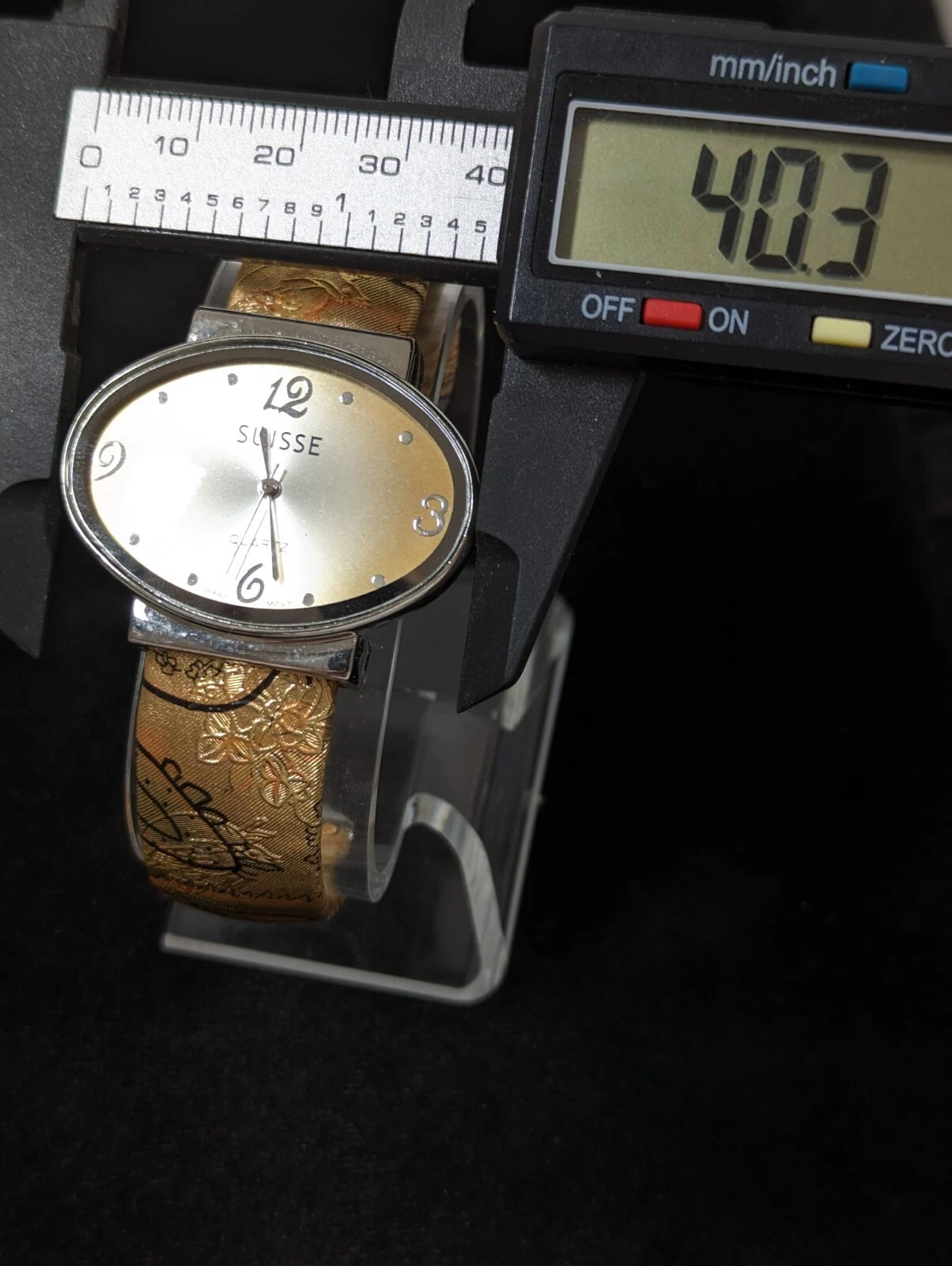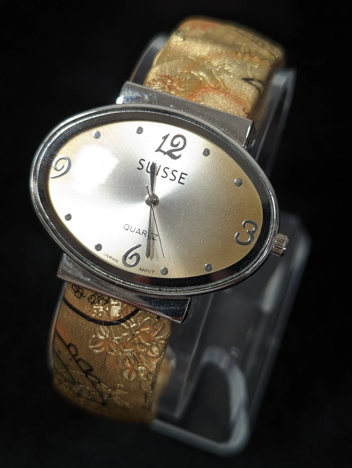 Suisse Gold Tone Dial Silver Tone Oval Case Hinge Bracelet Band Watch