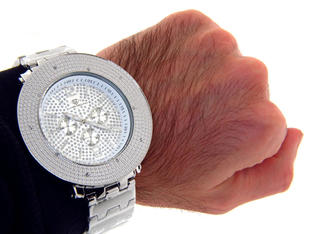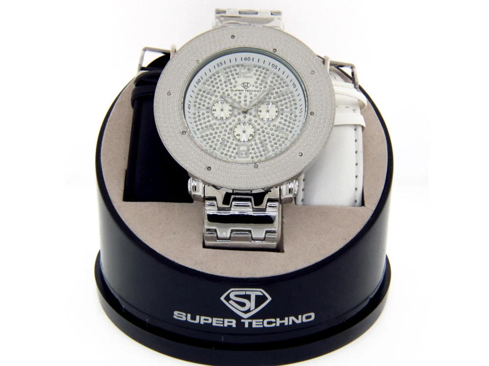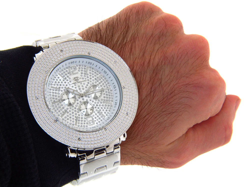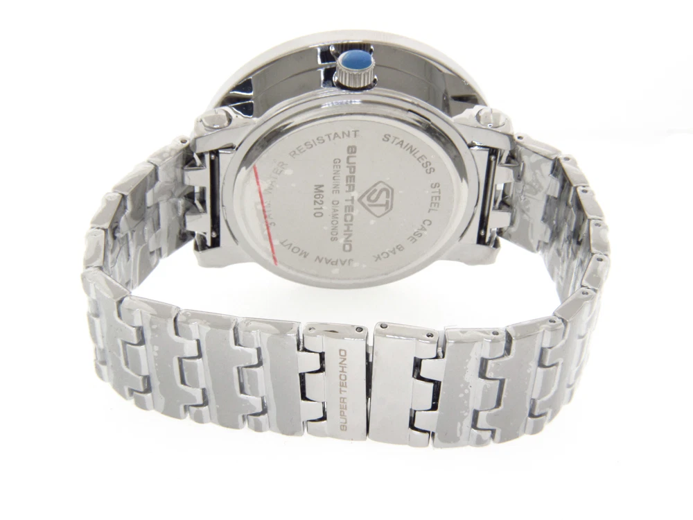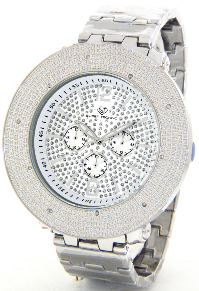 NEW SUPER TECHNO BY JOE RODEO MENS DIAMOND WATCH SILVER TONE CASE METAL BAND