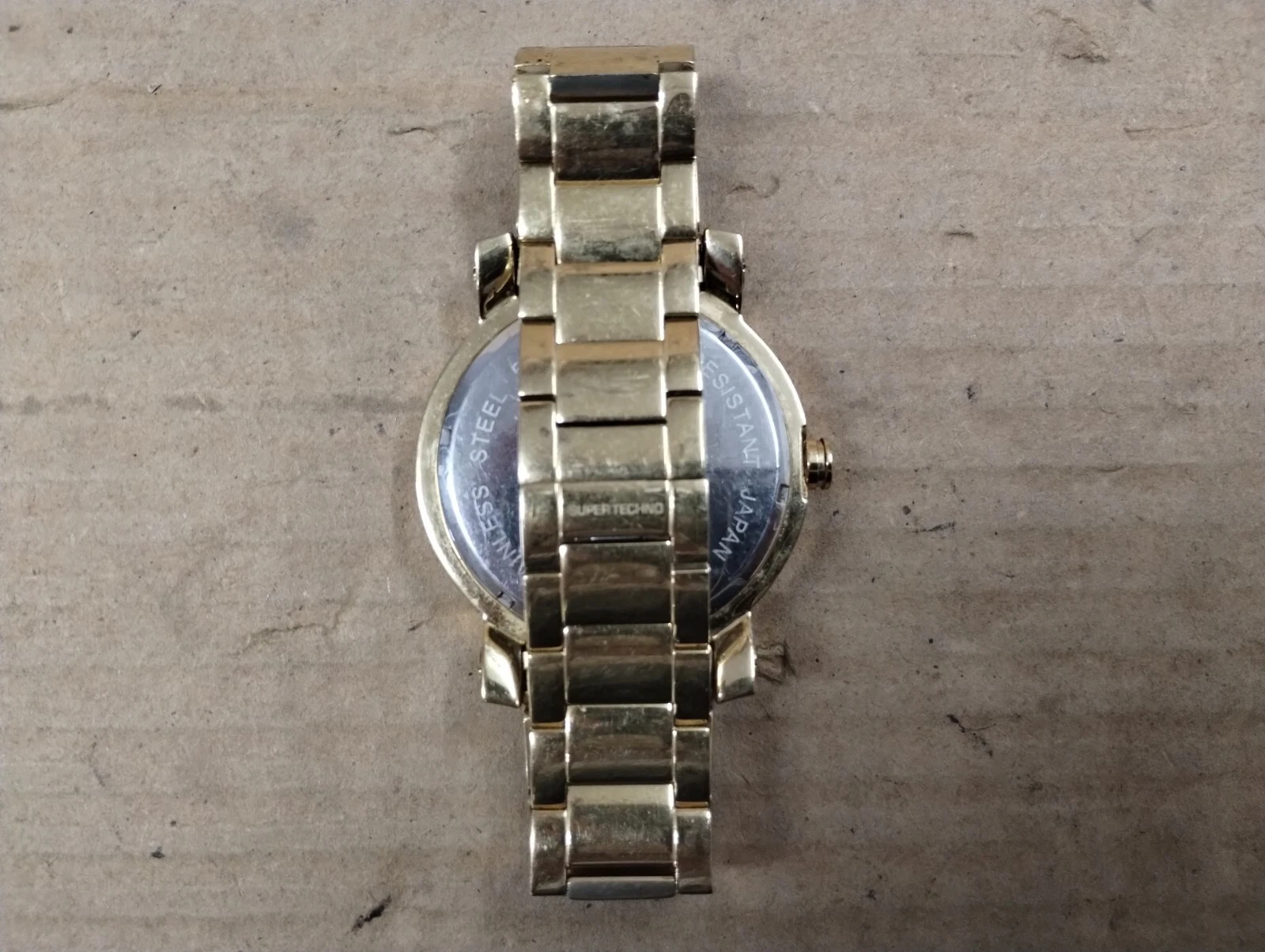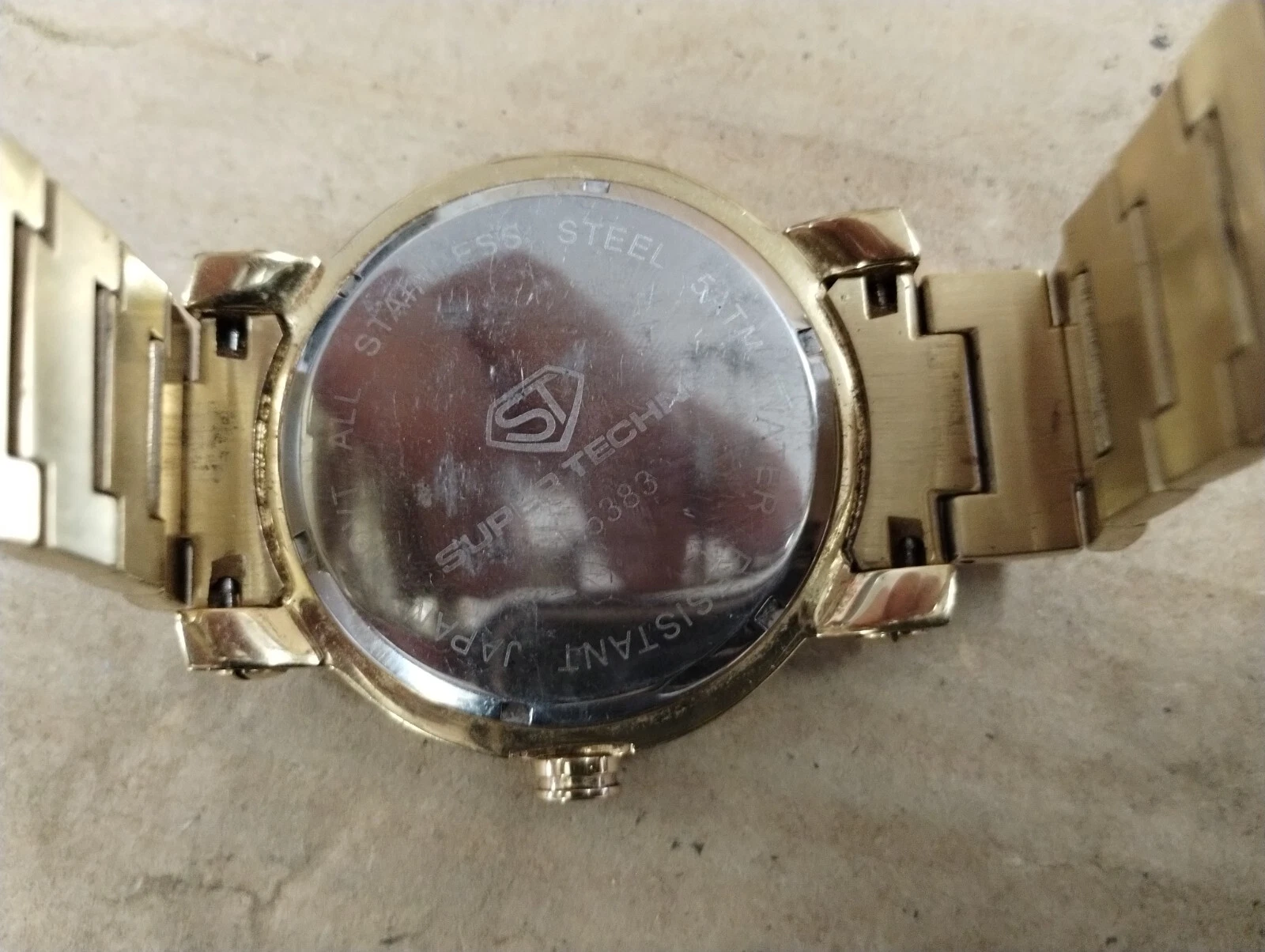 SUPER TECHNO I-5383 GOLDTONE MENS ANALOG QUARTZ WATCH 50mm NEW BATTERY