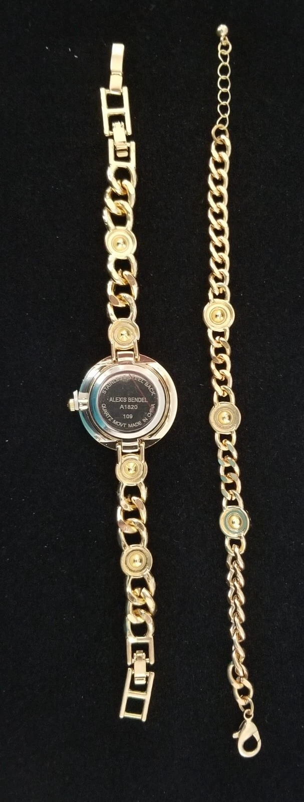 Alexis Bendal Gold Tone Watch, Bracelet Set MOP Dial Amber Stones Running