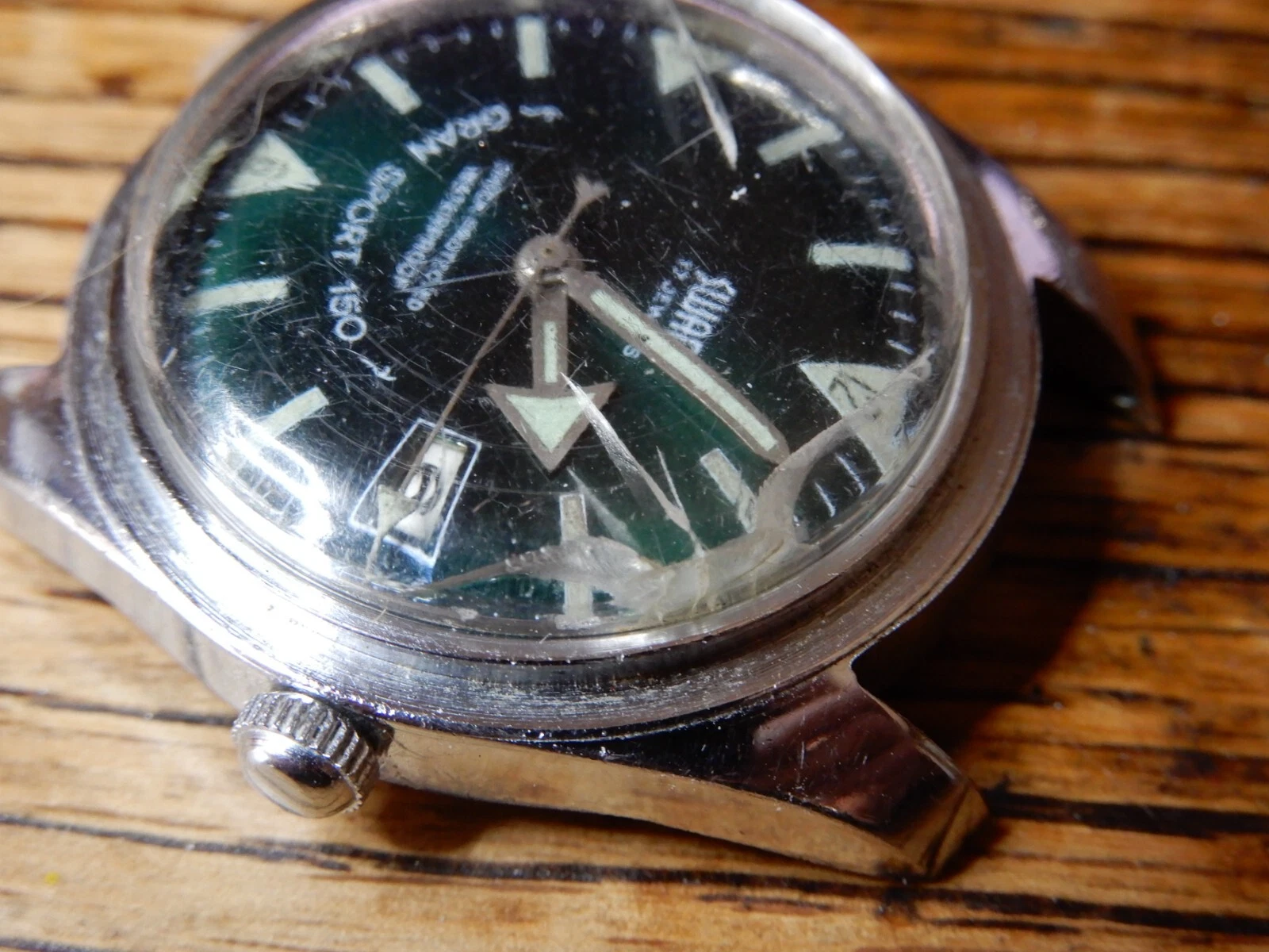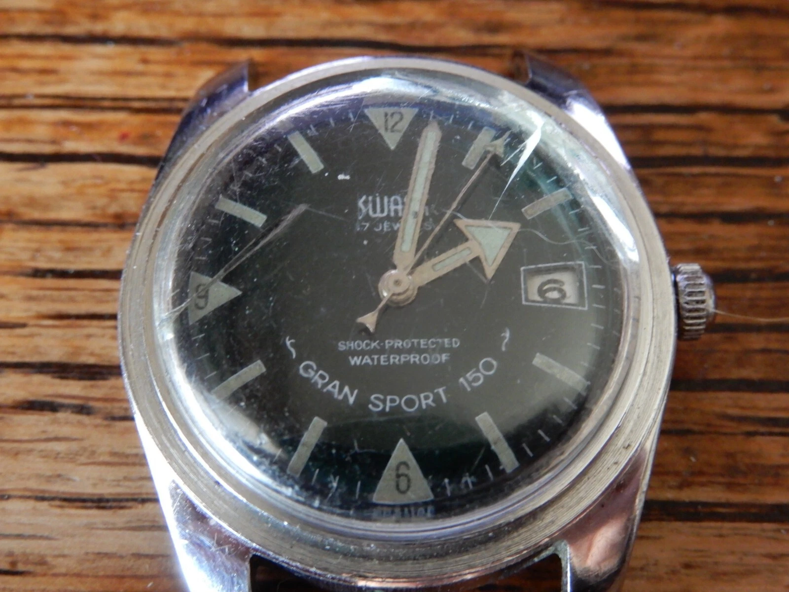 Swank 17 Jewel Gran Sport 150 Green Watch Working FOR PARTS