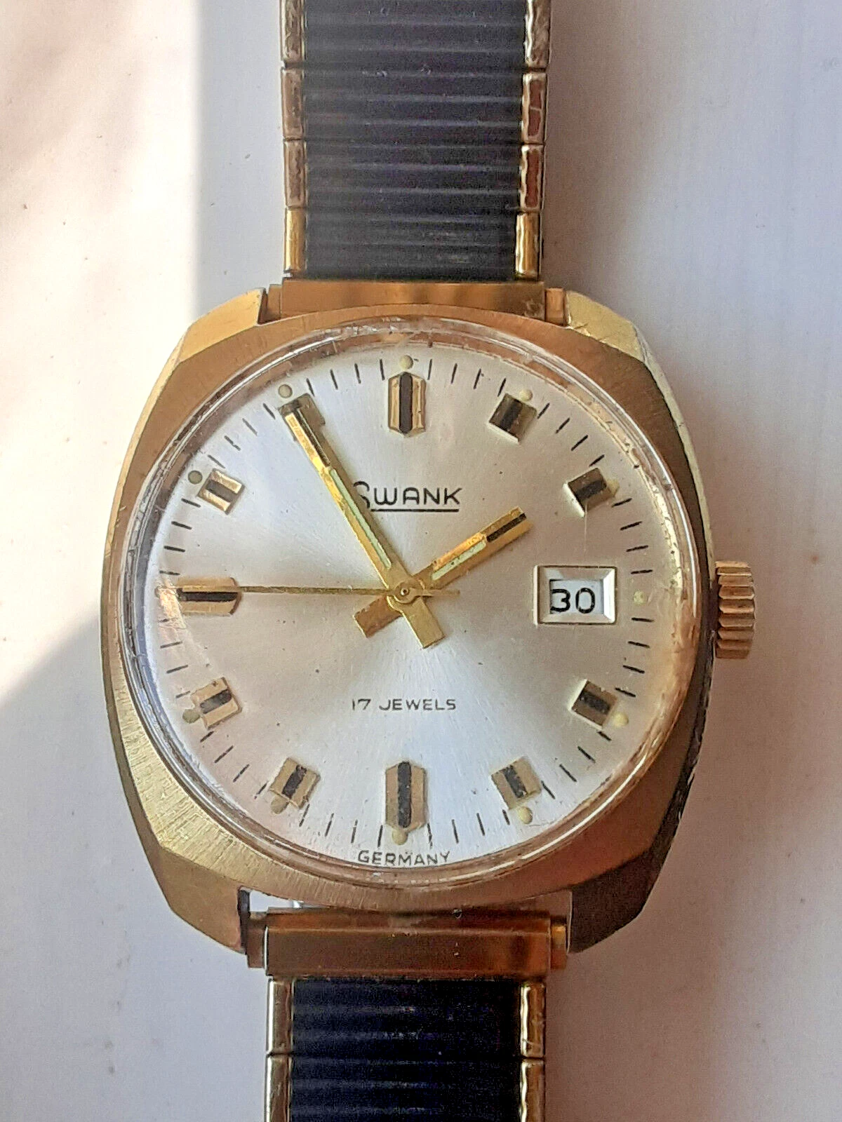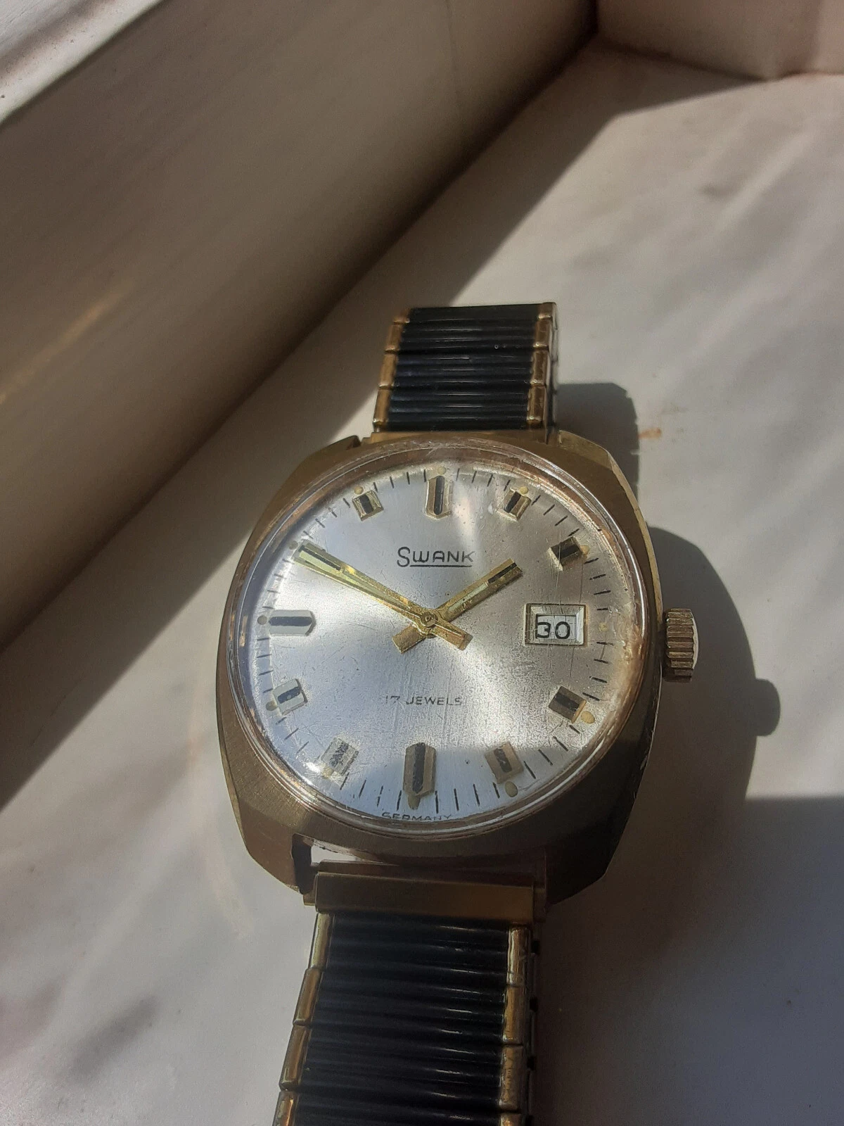 Vintage SWANK Men's Wristwatch 17 Jewels Germany Stainless Steel Back Running