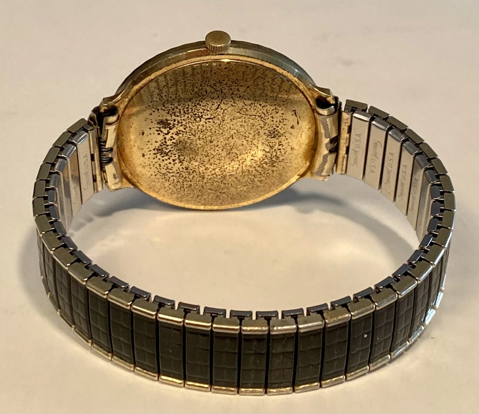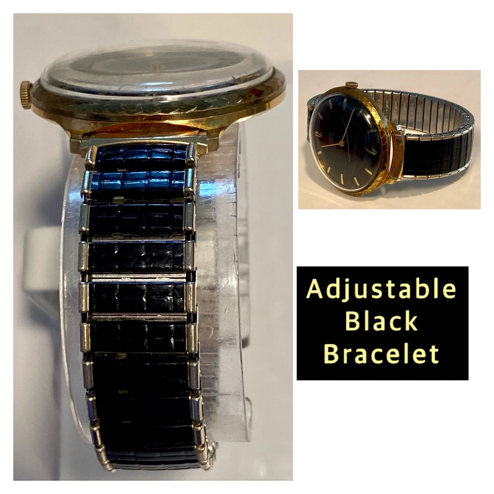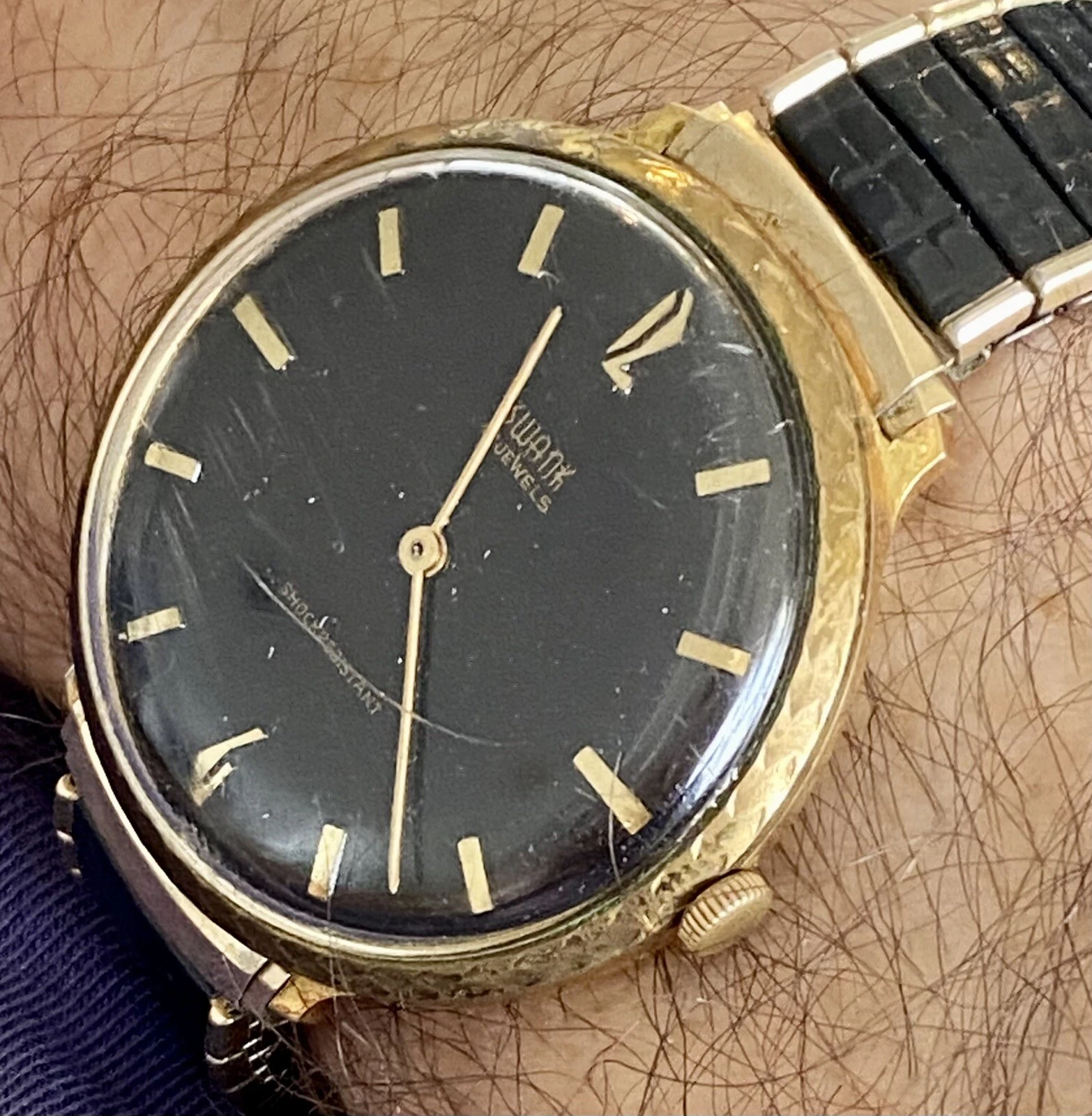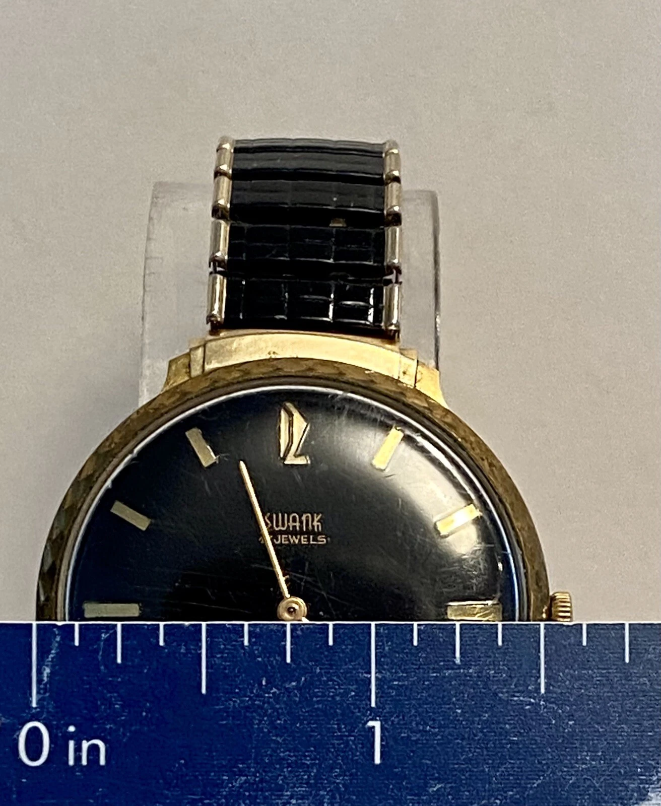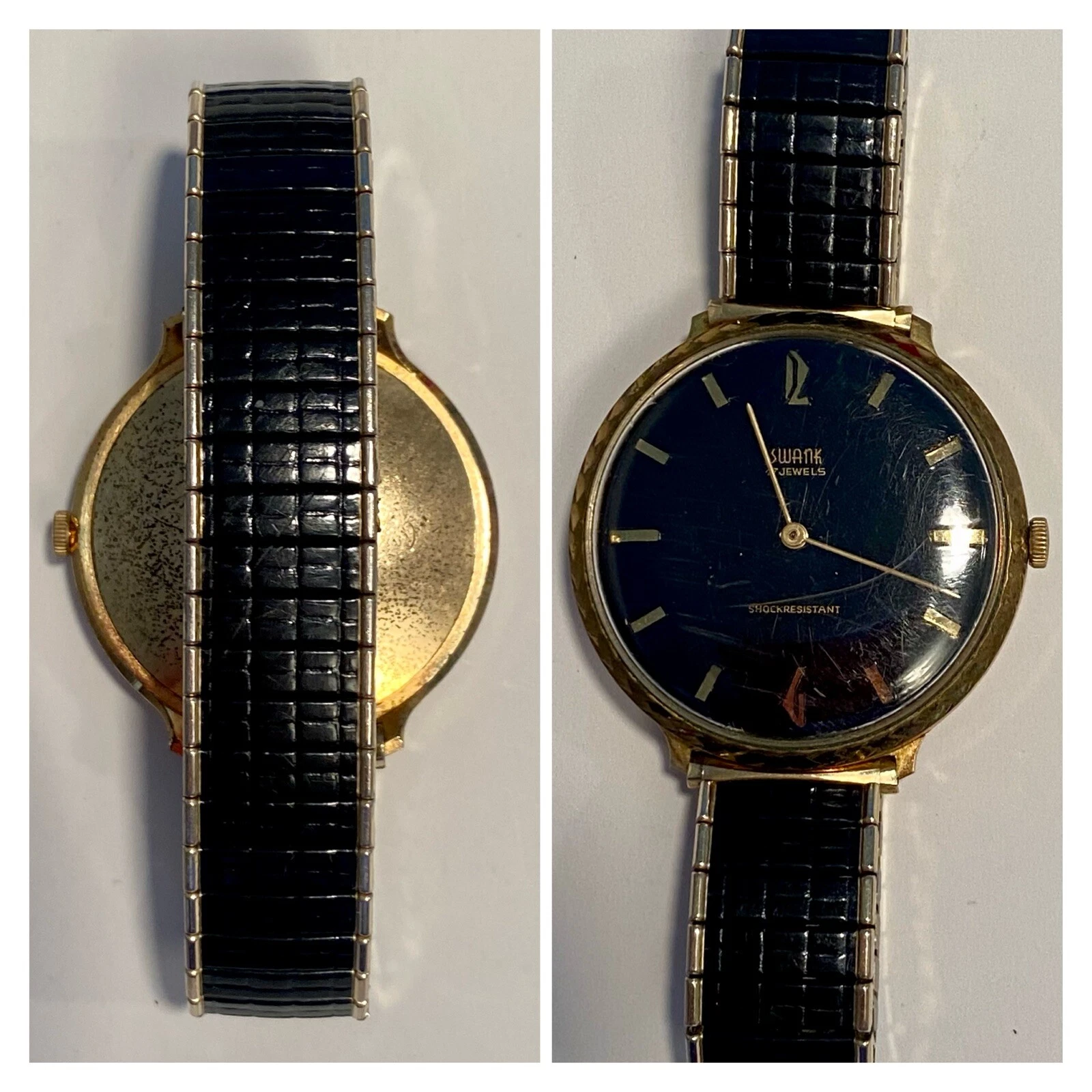 Vintage 40mm Goldtone SWANK Mechanical Black Dial and Bracelet Mens Watch