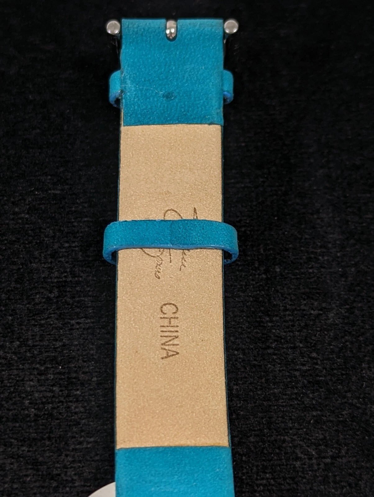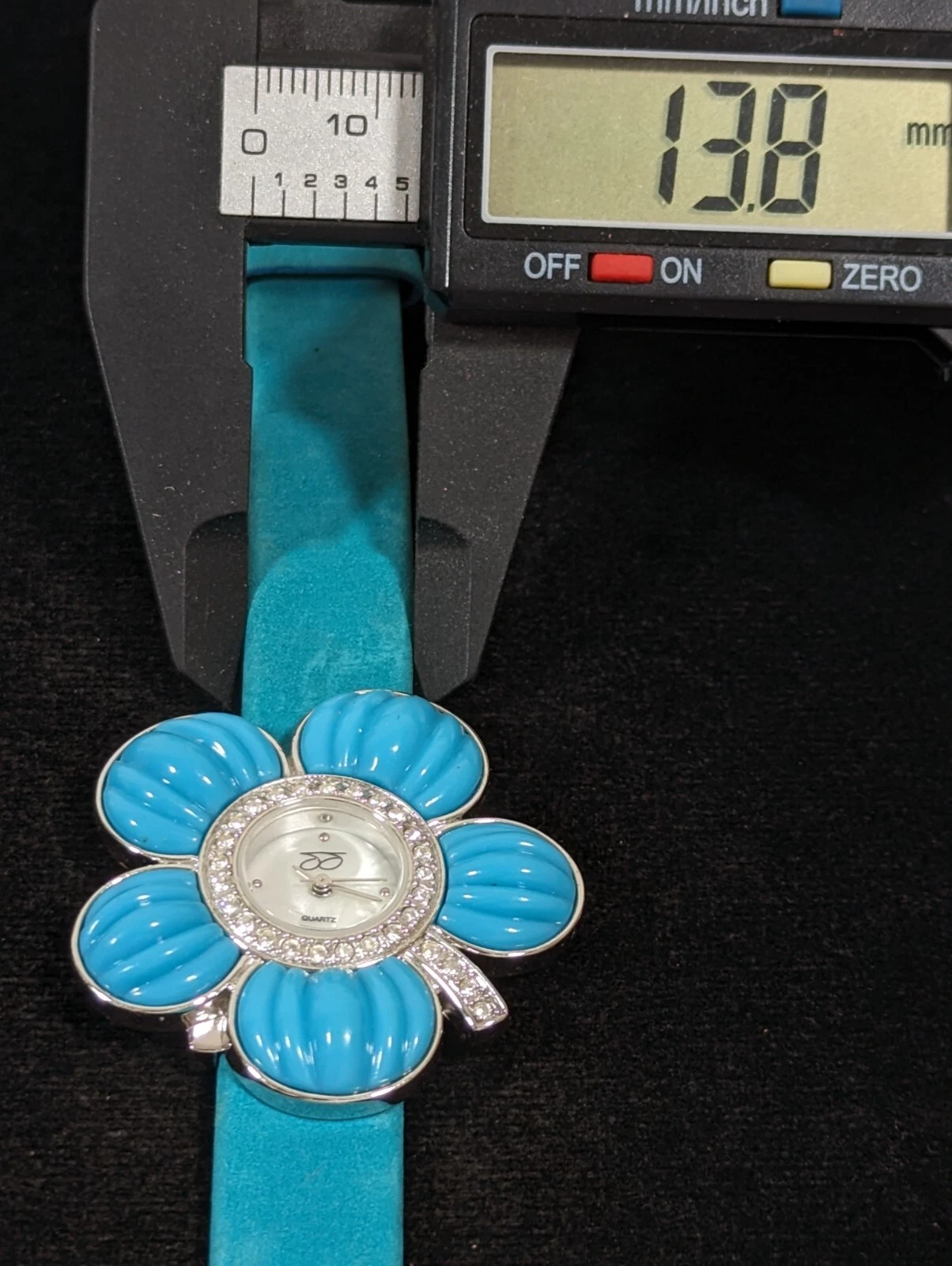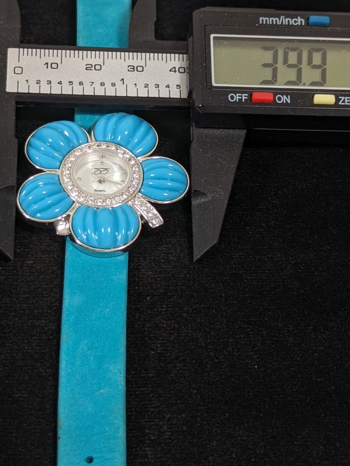 Vintage Suzanne Somers White Dial Blue Flower Leather Strap Watch 7.5 Inch