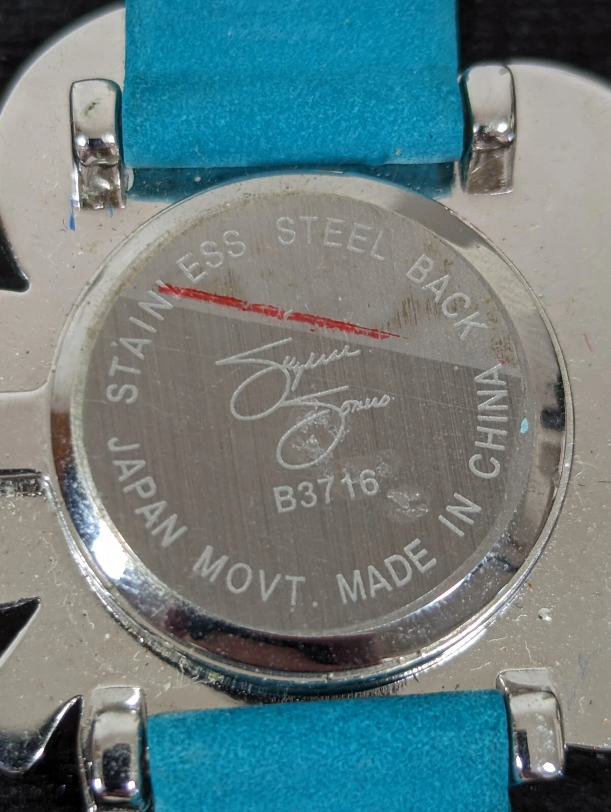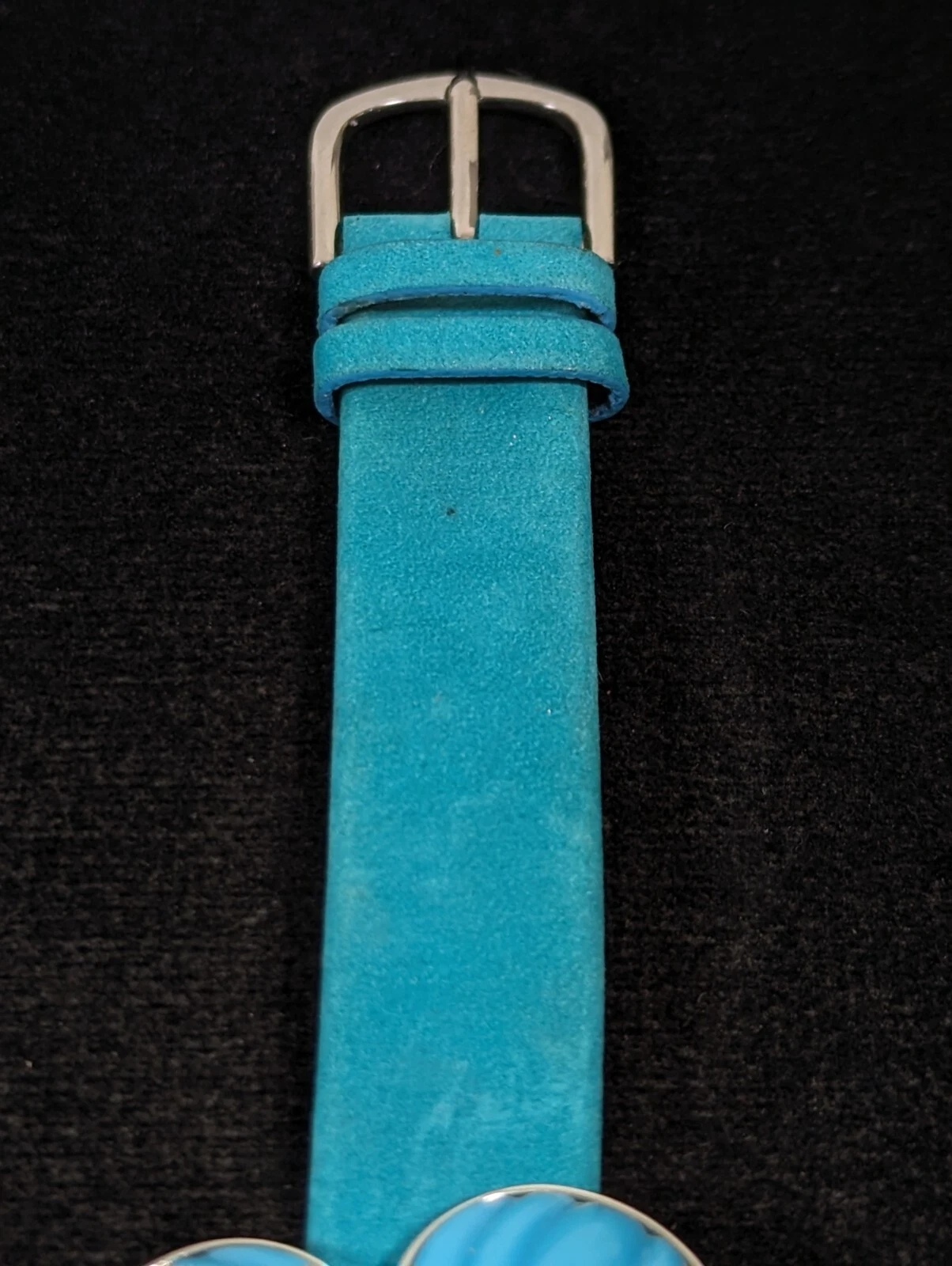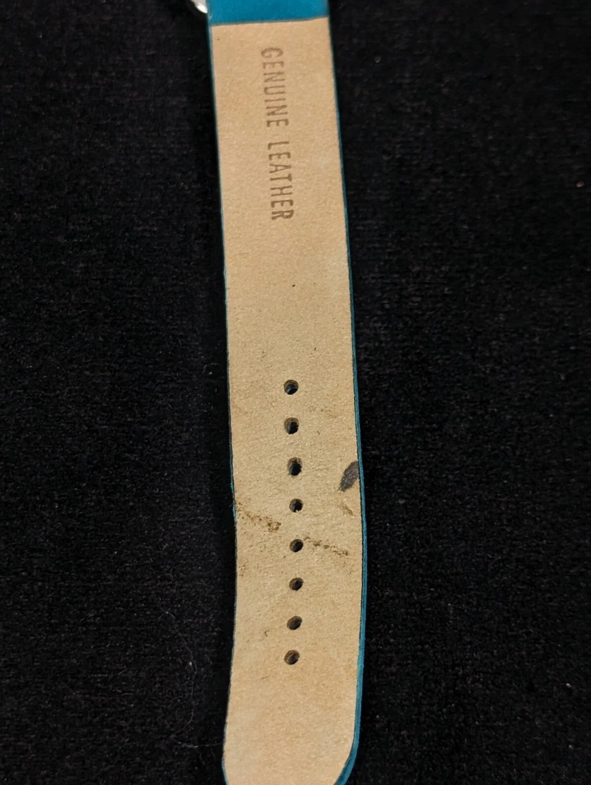 Vintage Suzanne Somers White Dial Blue Flower Leather Strap Watch 7.5 Inch