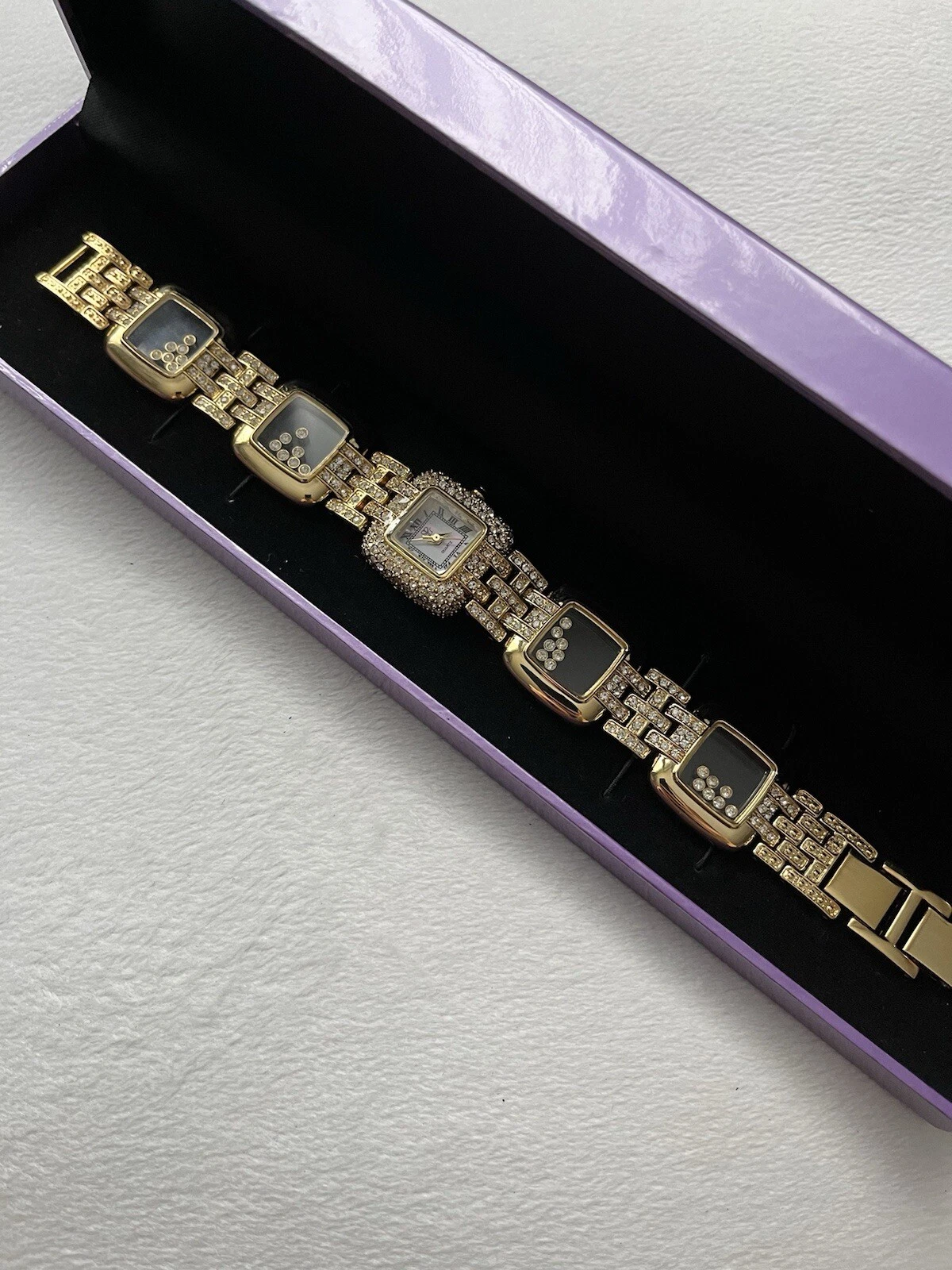 Vintage Gold Diamond Studded Suzanne Somers Timepiece Watch 8in
