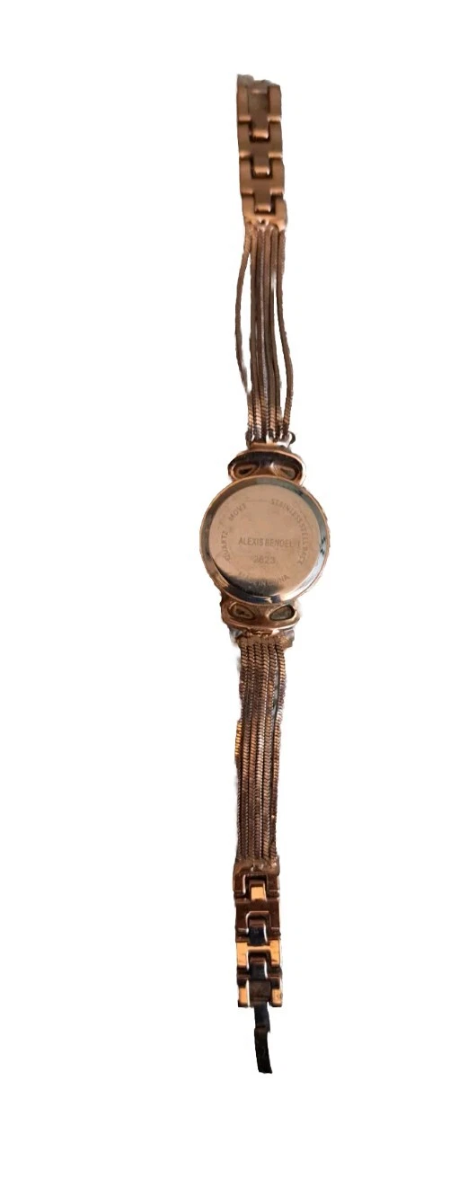 Alexis Bendel Women's 7" RoseGold Tone Watch Rhinestone Bows New Battery