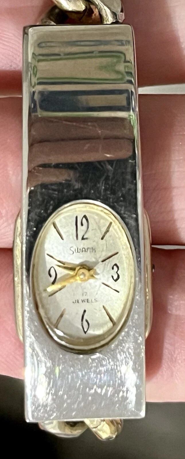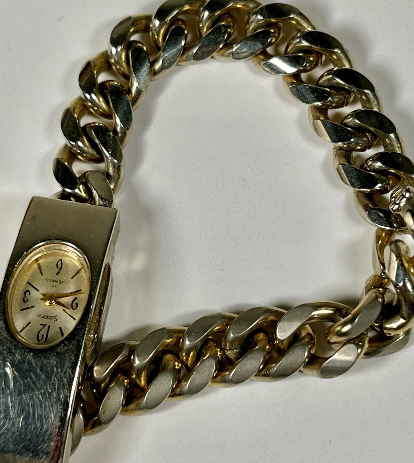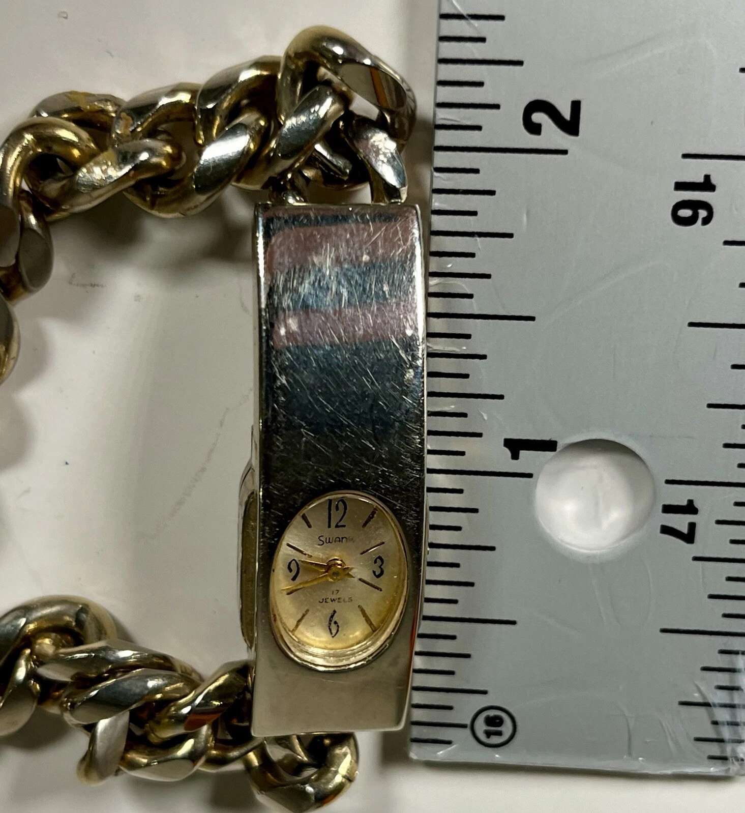 Swank 17 Jewels Gold Chain Band Wind-up Analog Women's Watch Sz. 6" READ