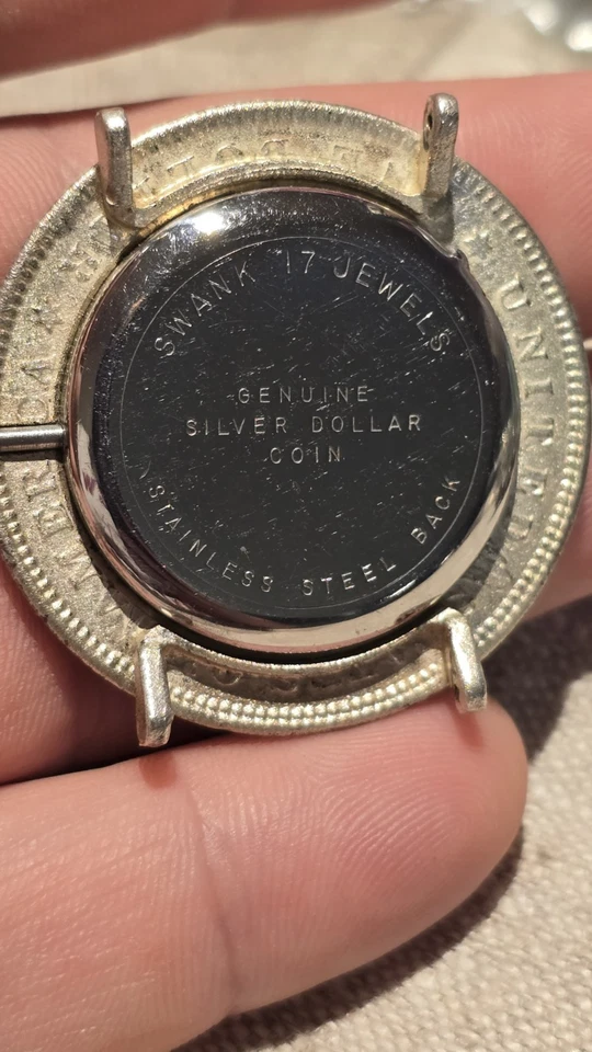 Vintage Swank Real 1884 Silver Morgan Dollar Watch 17J Swiss 1960s