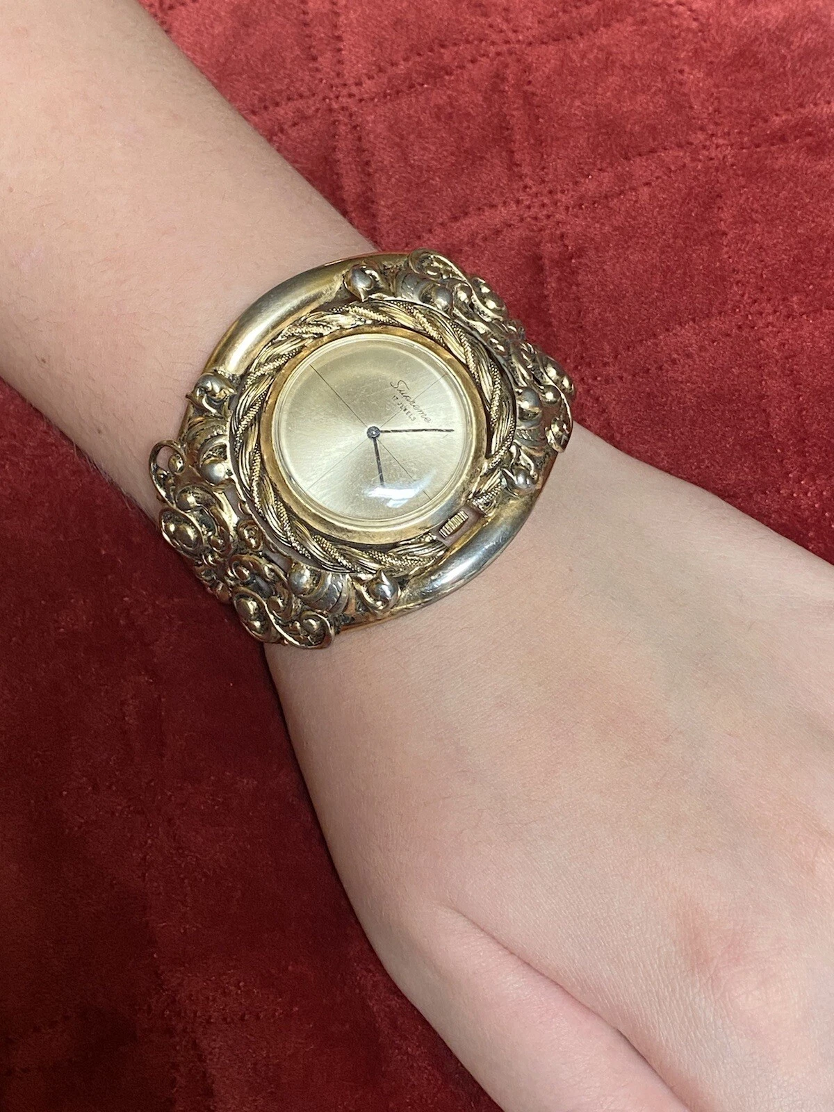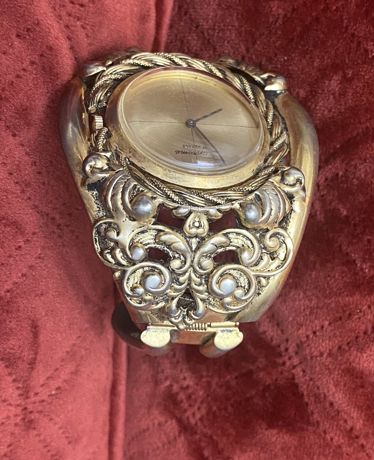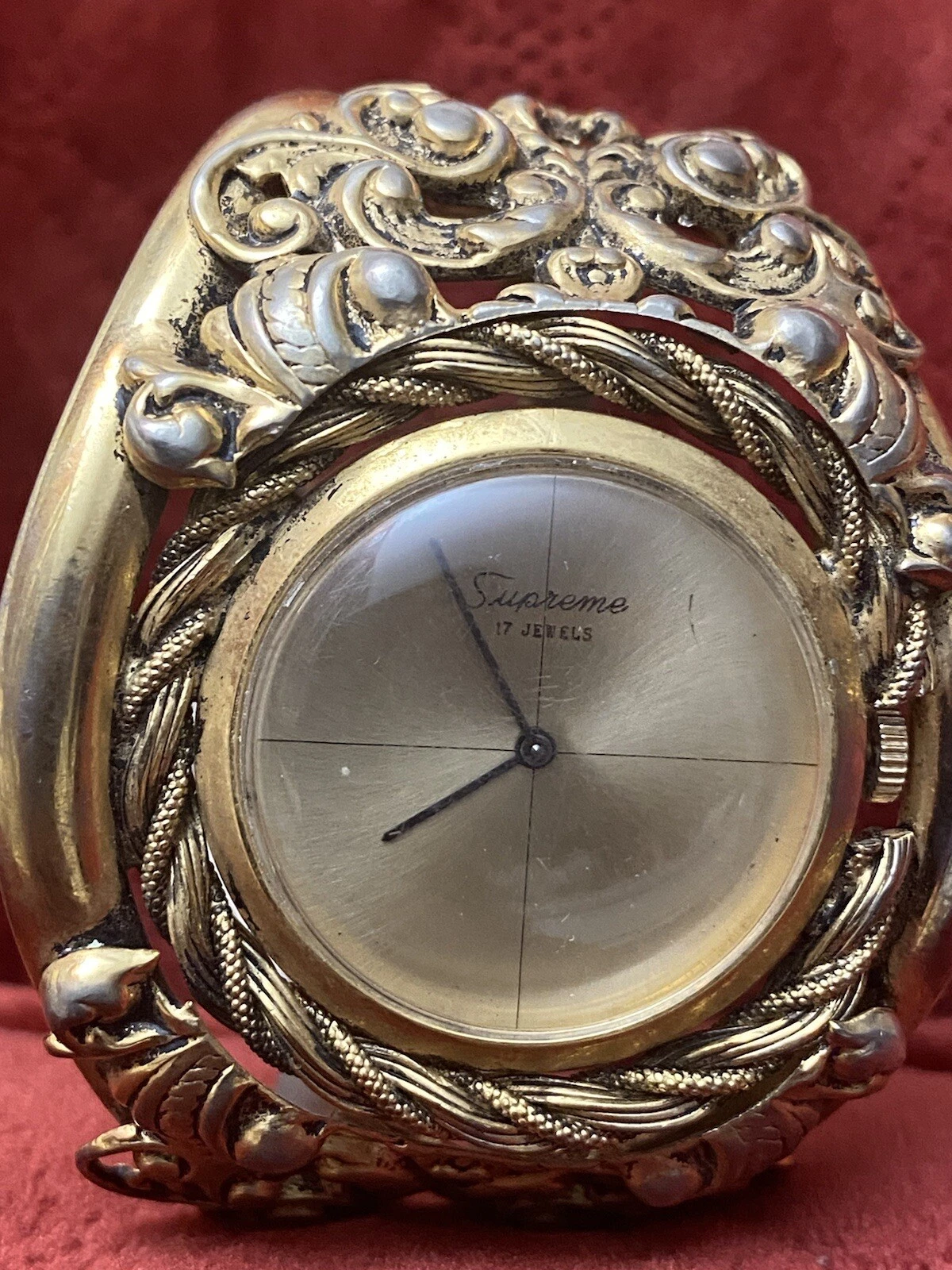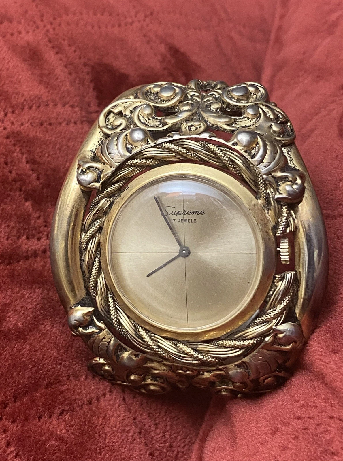 Supreme Illinois watch 17 Jewels Gold Toned Cuff Wind-Up Wristwatch -RARE! WORKS