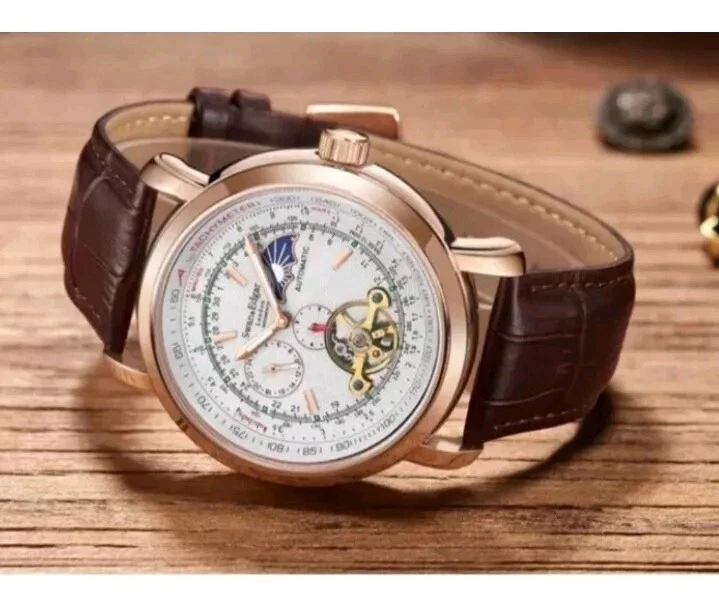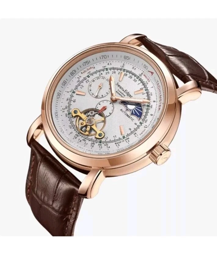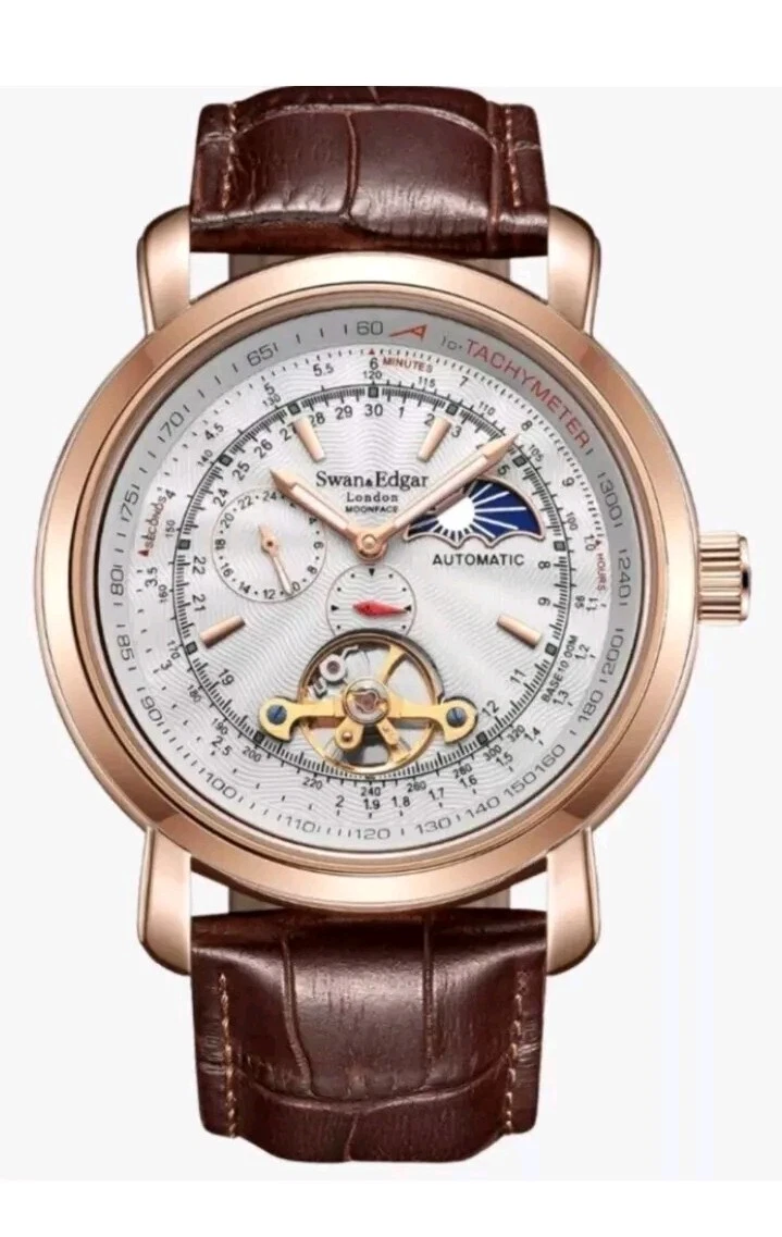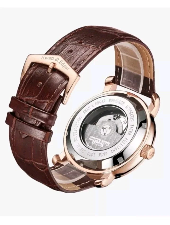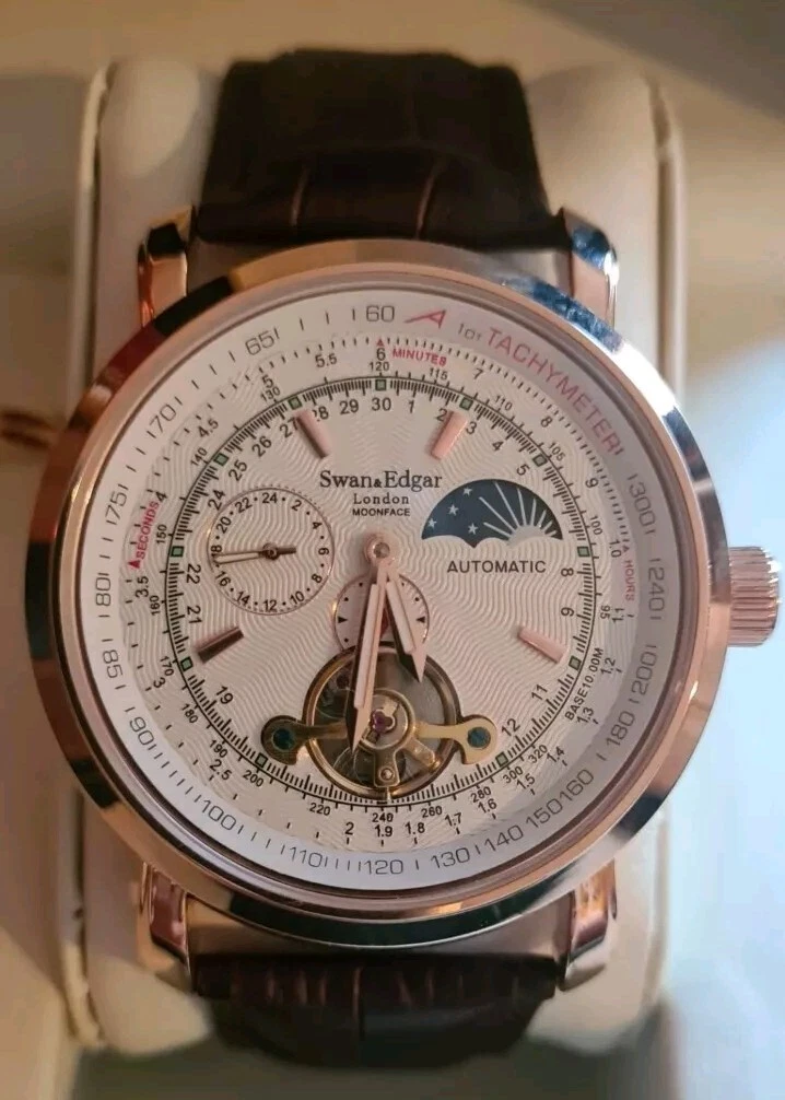 LIMITED EDITION SWAN & EDGAR MOONFACE AUTOMATIC ROSE & WHITE MENS WATCH RRP 349