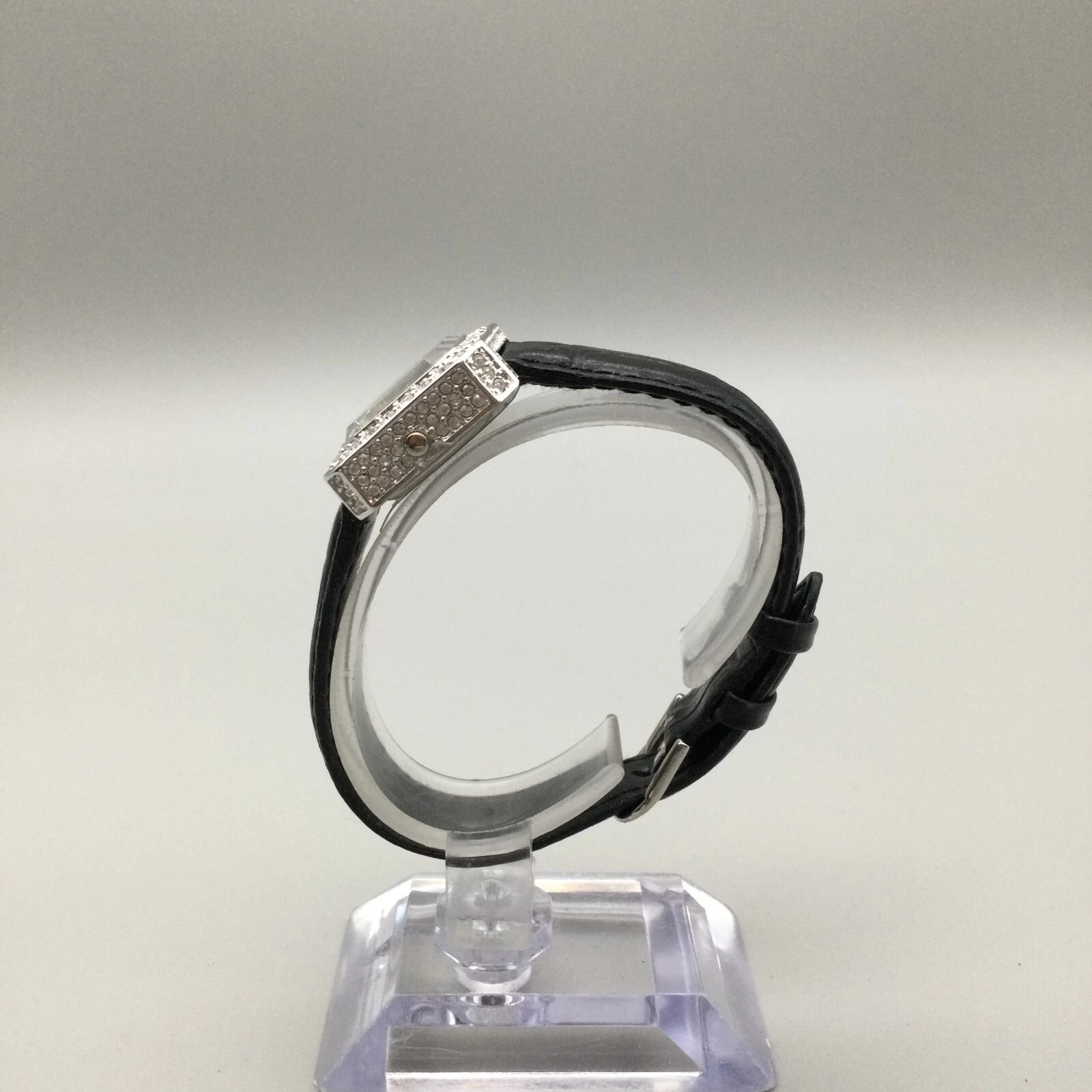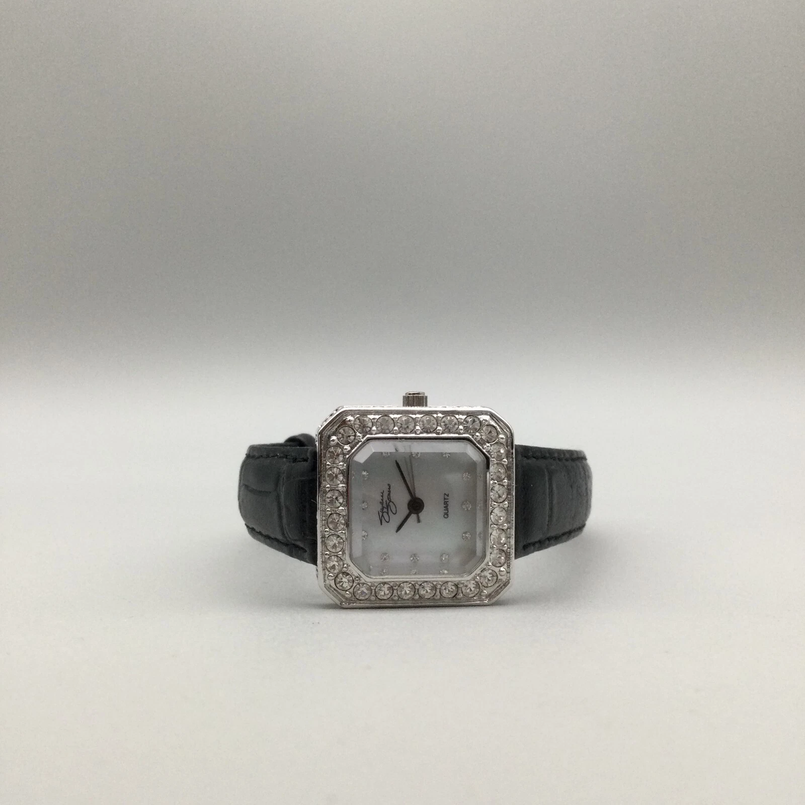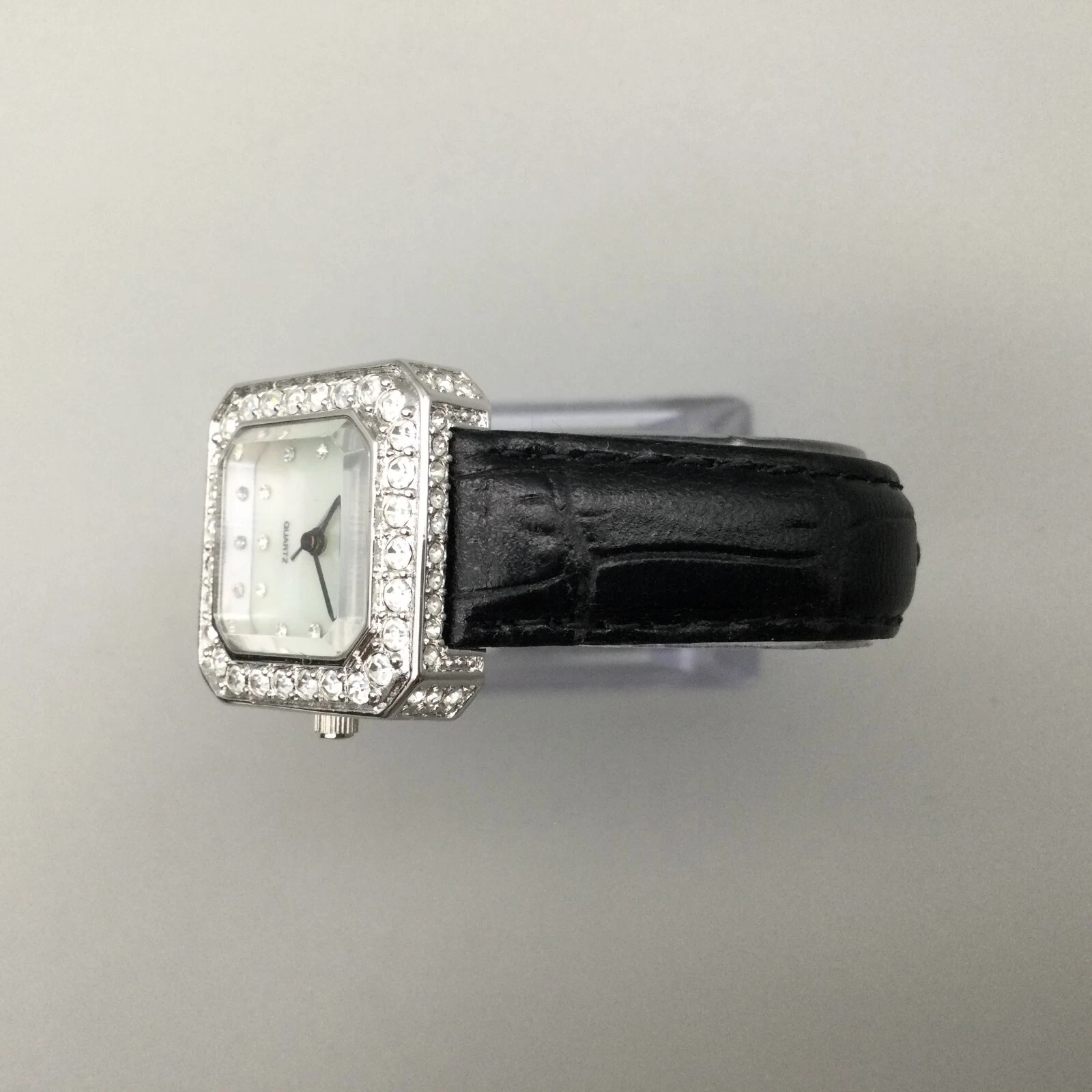 Suzanne Somers Watch Women 24mm Silver Tone MOP Crystals Black Band New Battery