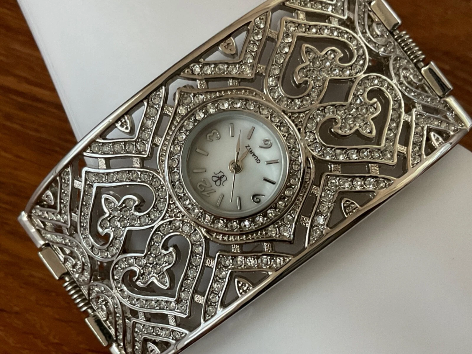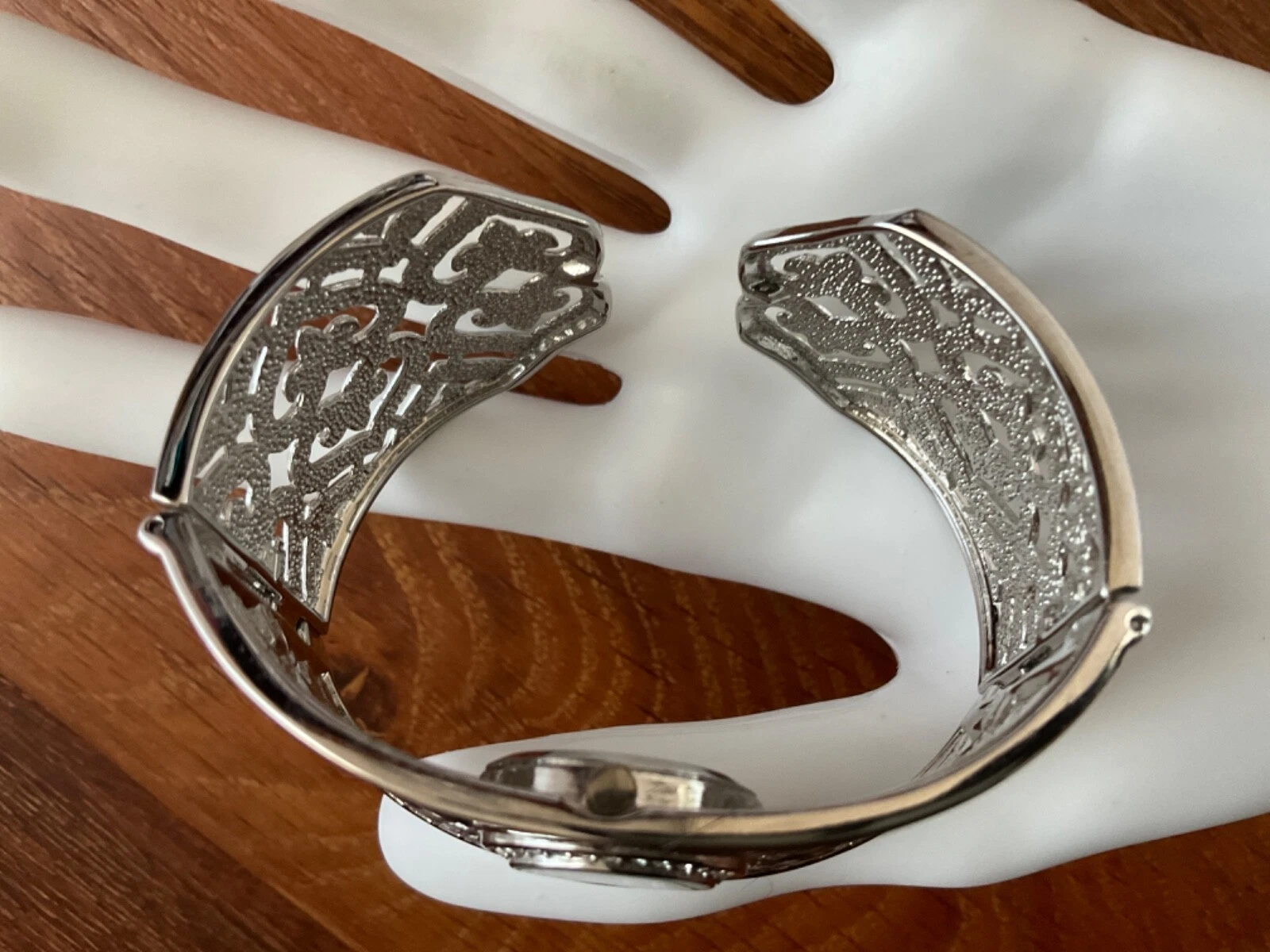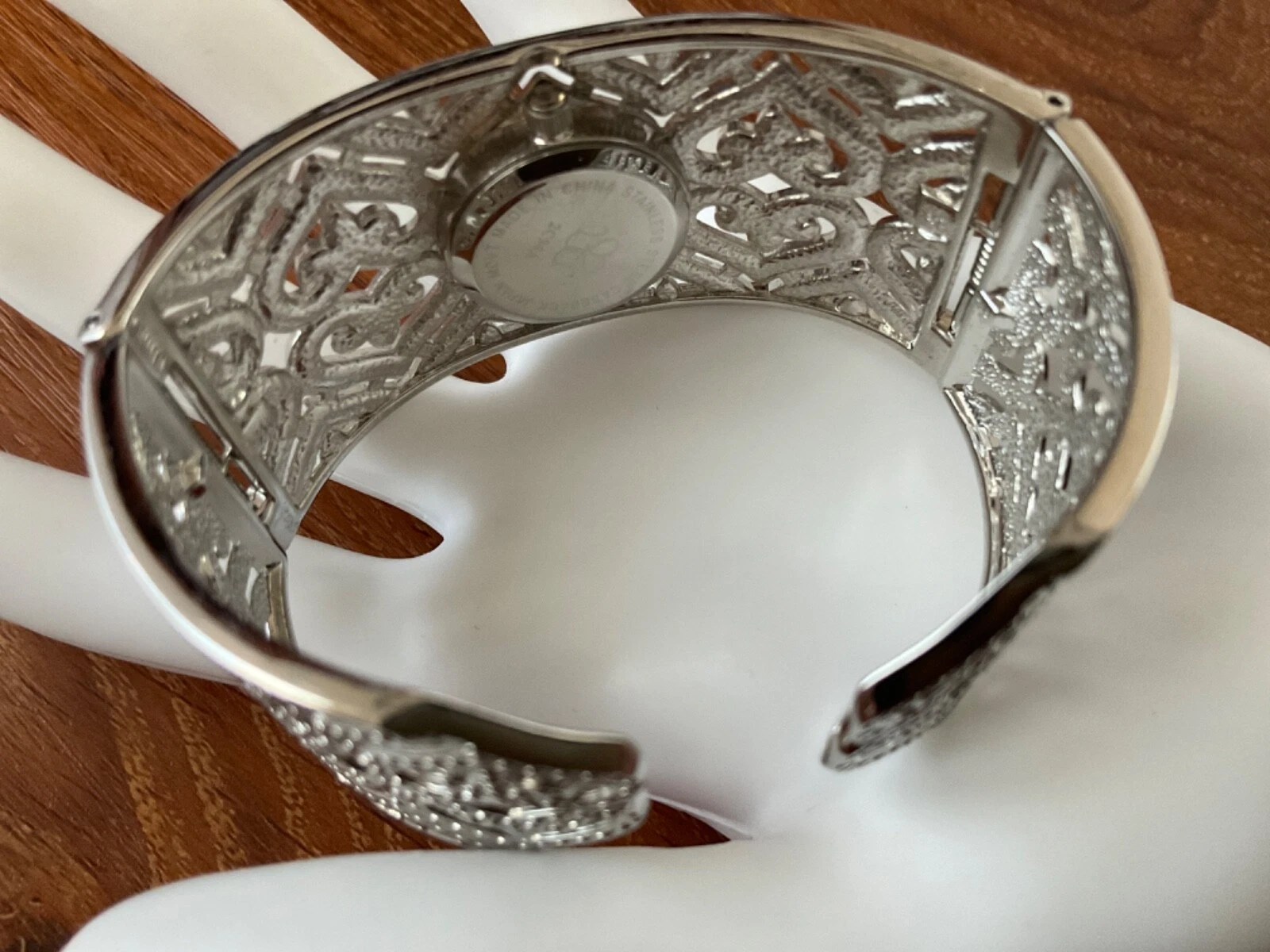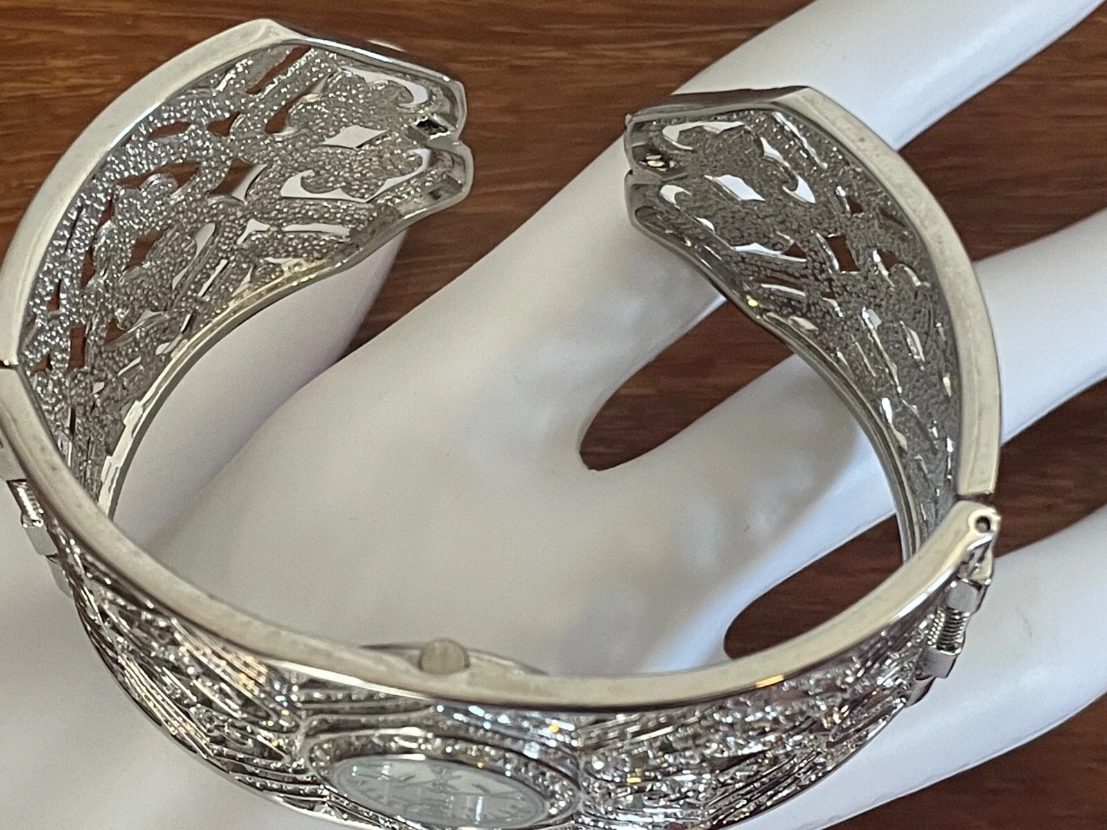 RARE Suzanne Somers Vintage silver tone Rhinestone bangle Bracelet Hinged Watch
