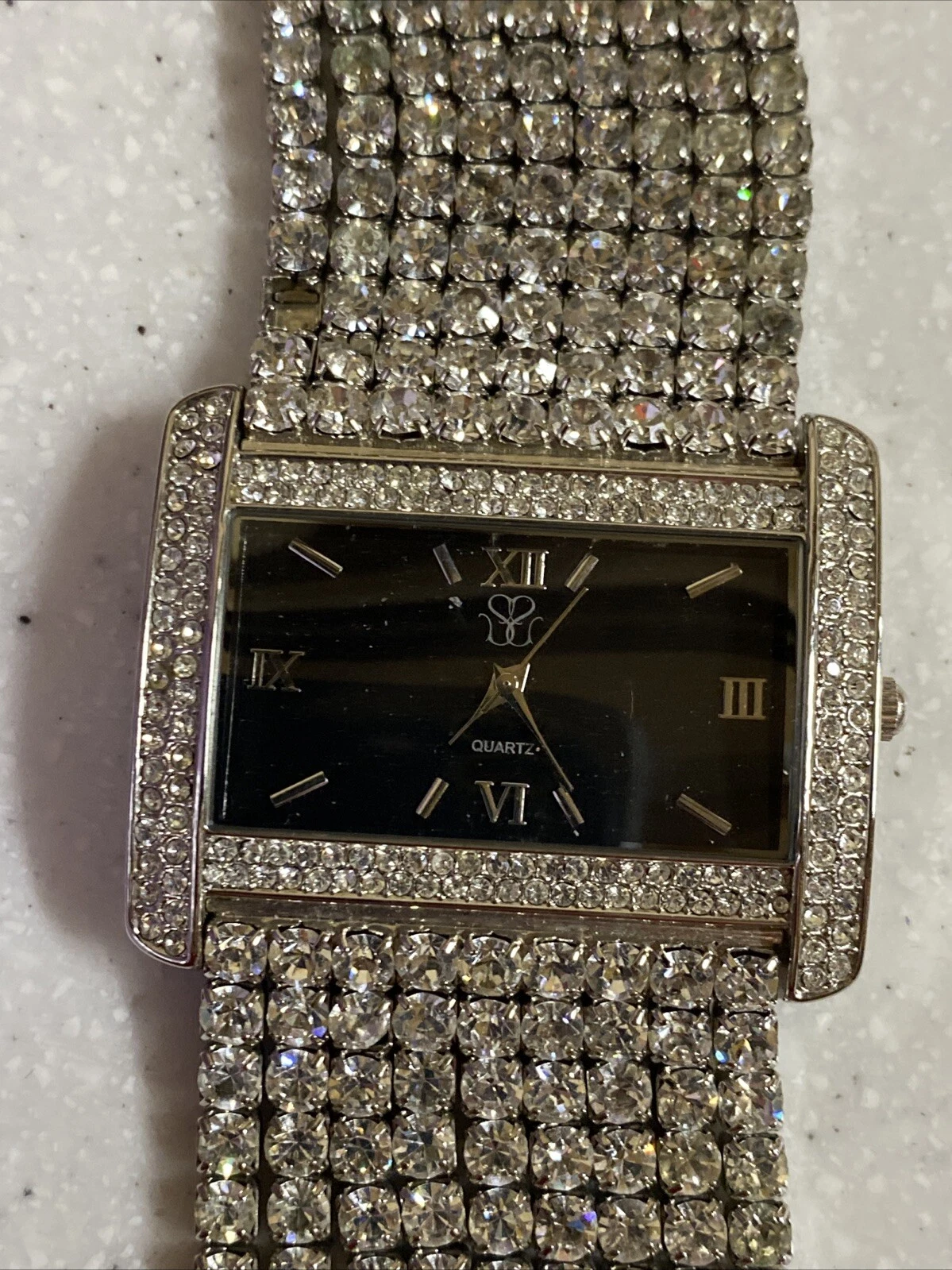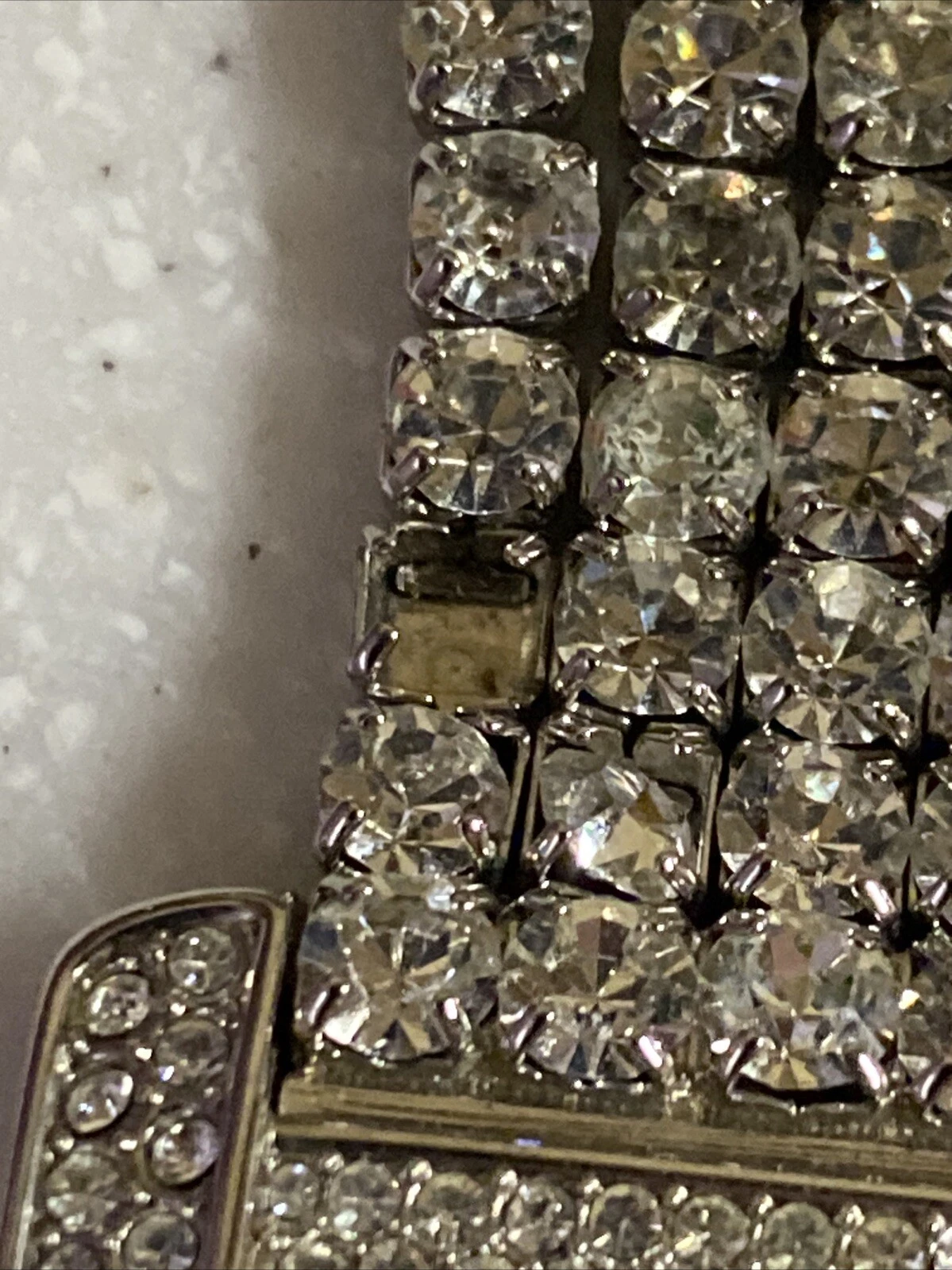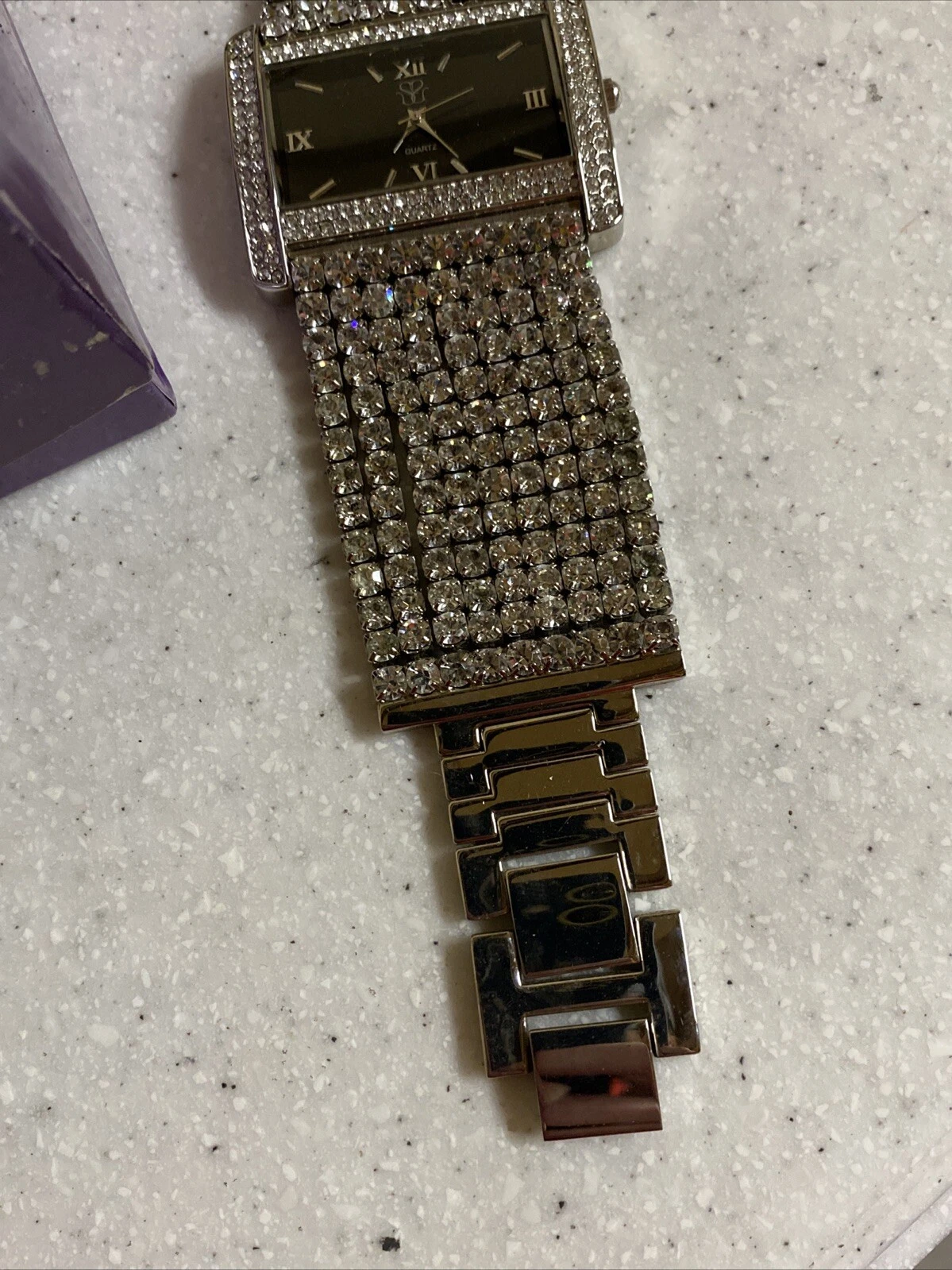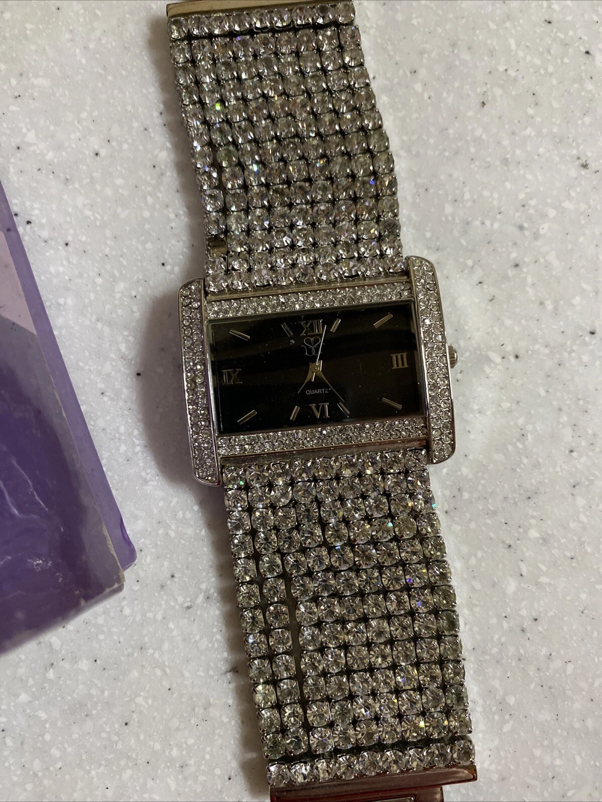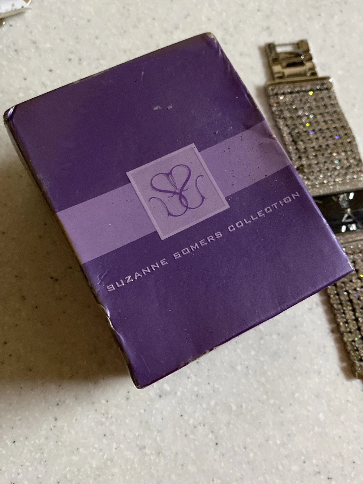 Suzanne Somers Wide Silver Tone  Rhinestone Crystals Watch New Battery W/box