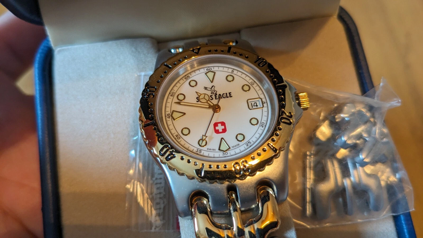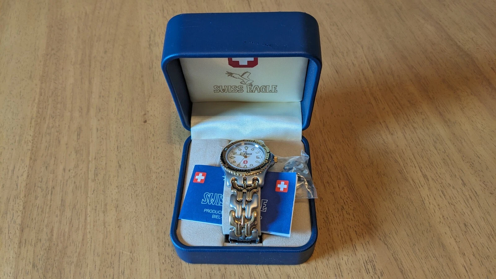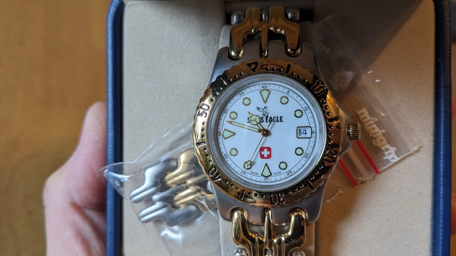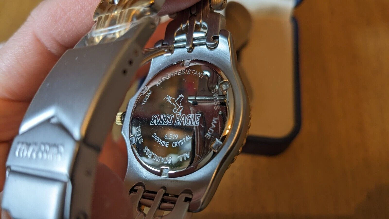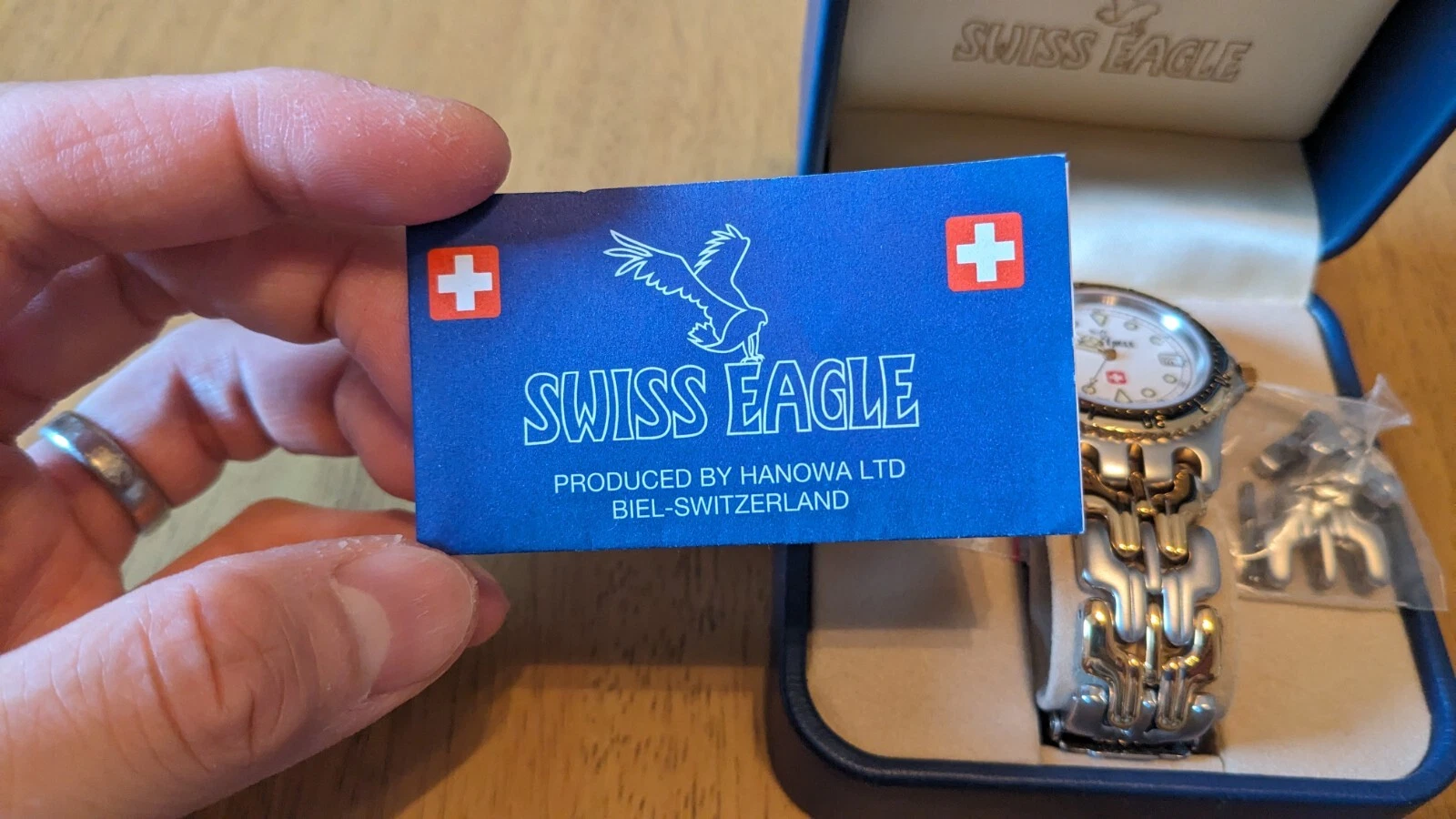 Swiss Eagle analog 100m hanowa WATCH two-tone gold silver sapphire crystal box