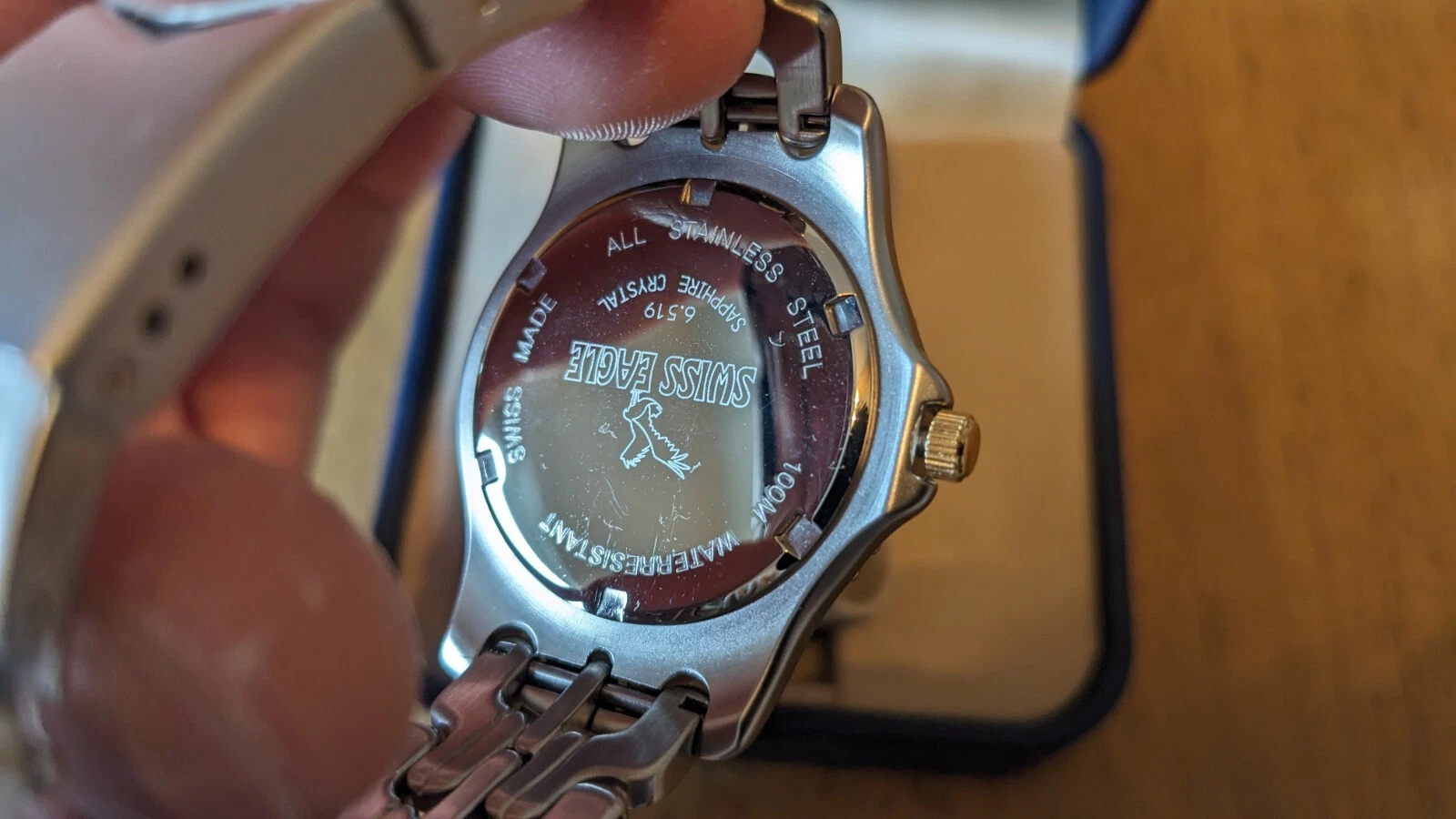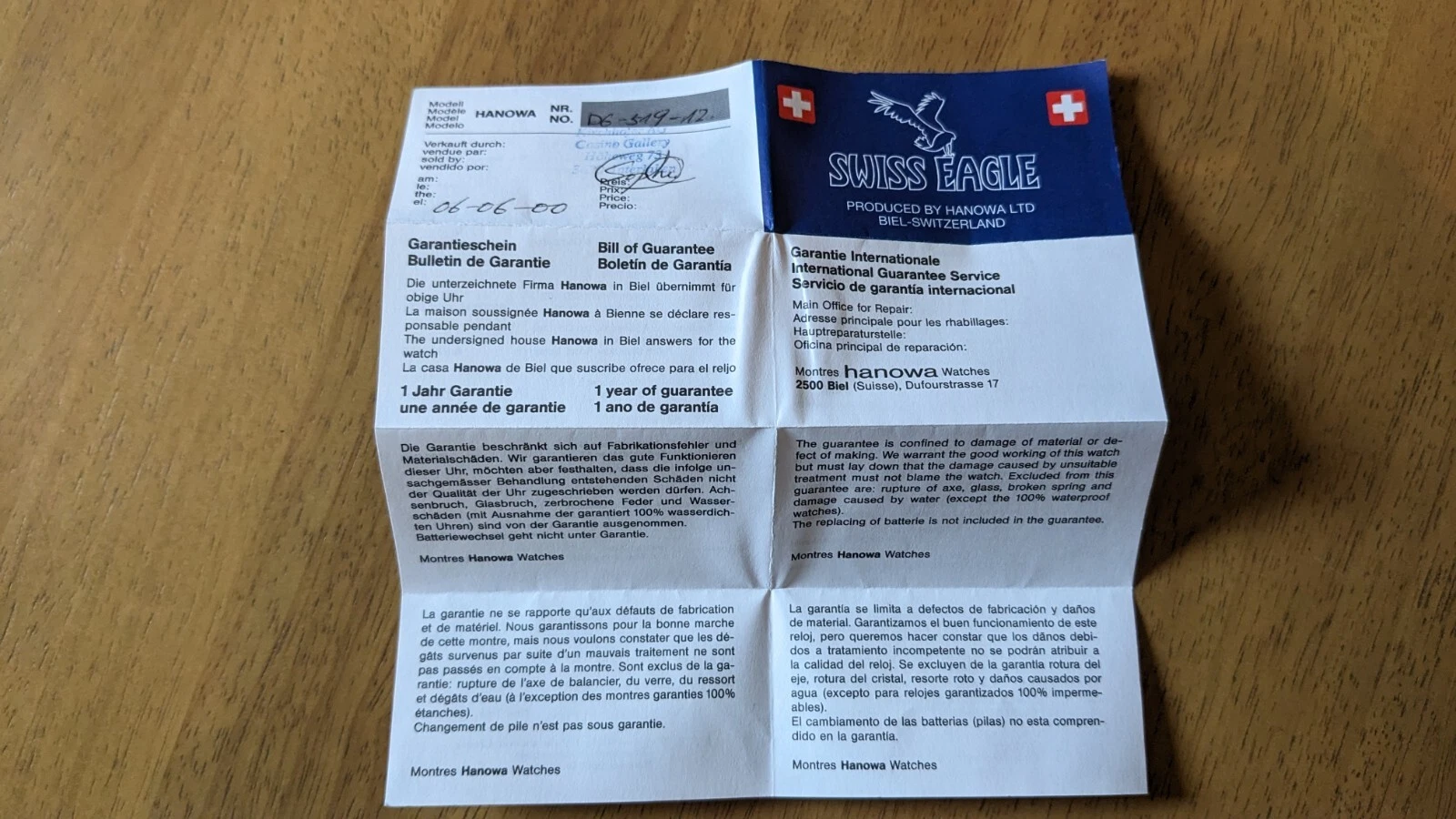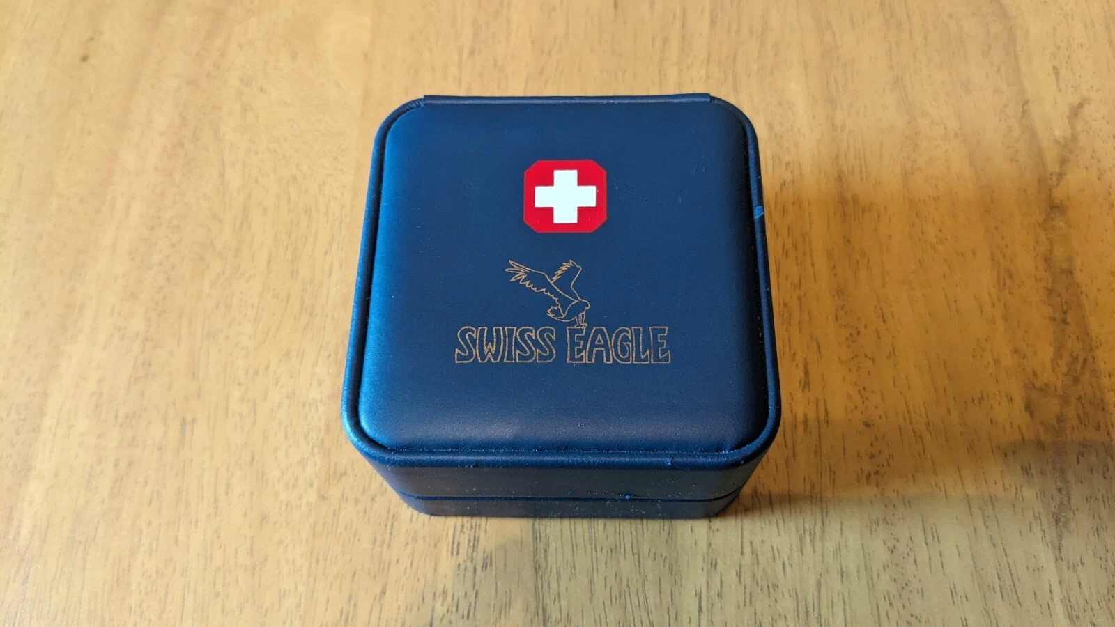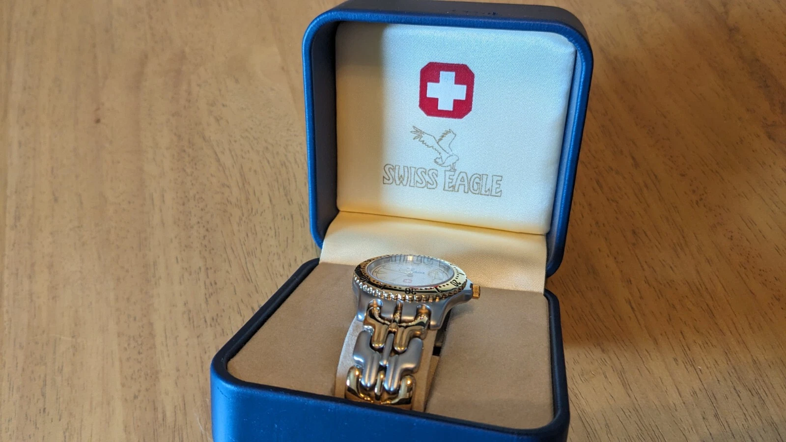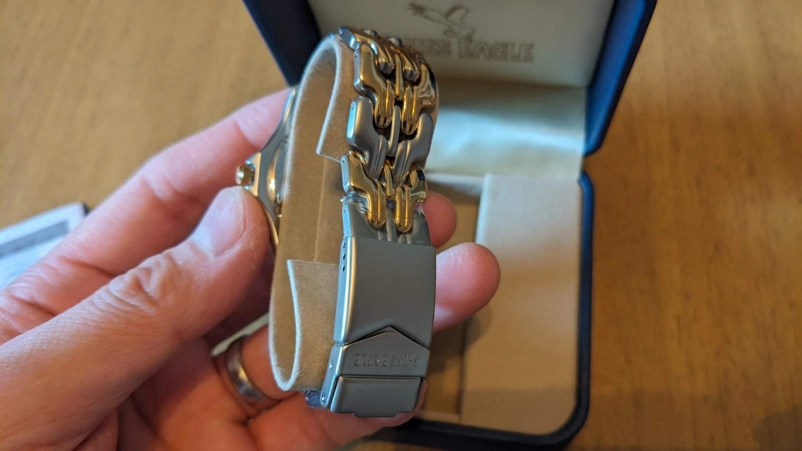 Swiss Eagle analog 100m hanowa WATCH two-tone gold silver sapphire crystal box