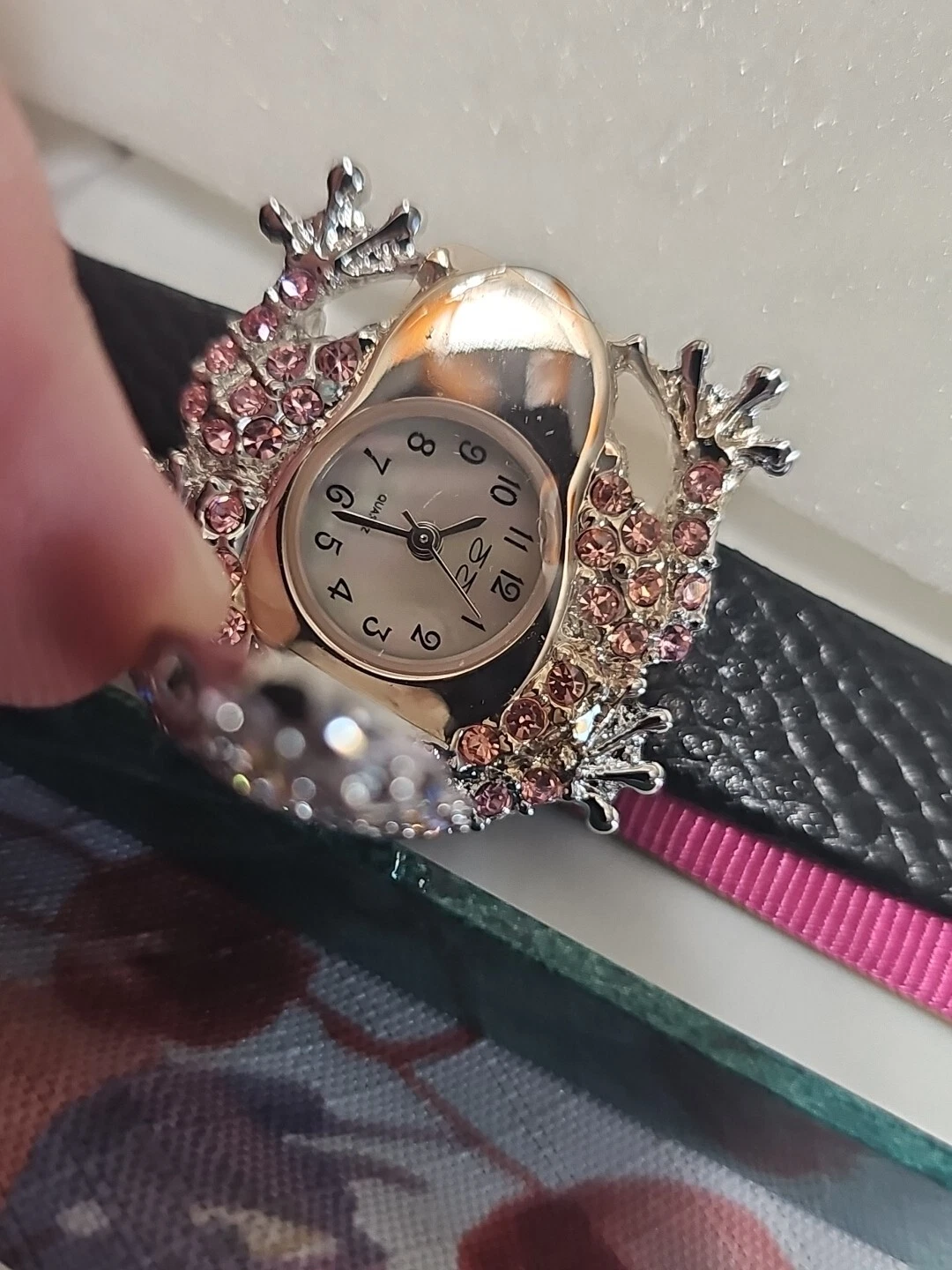 New in Box Ladies Suzanne Somers Crystal Frog Watch with Two Bands