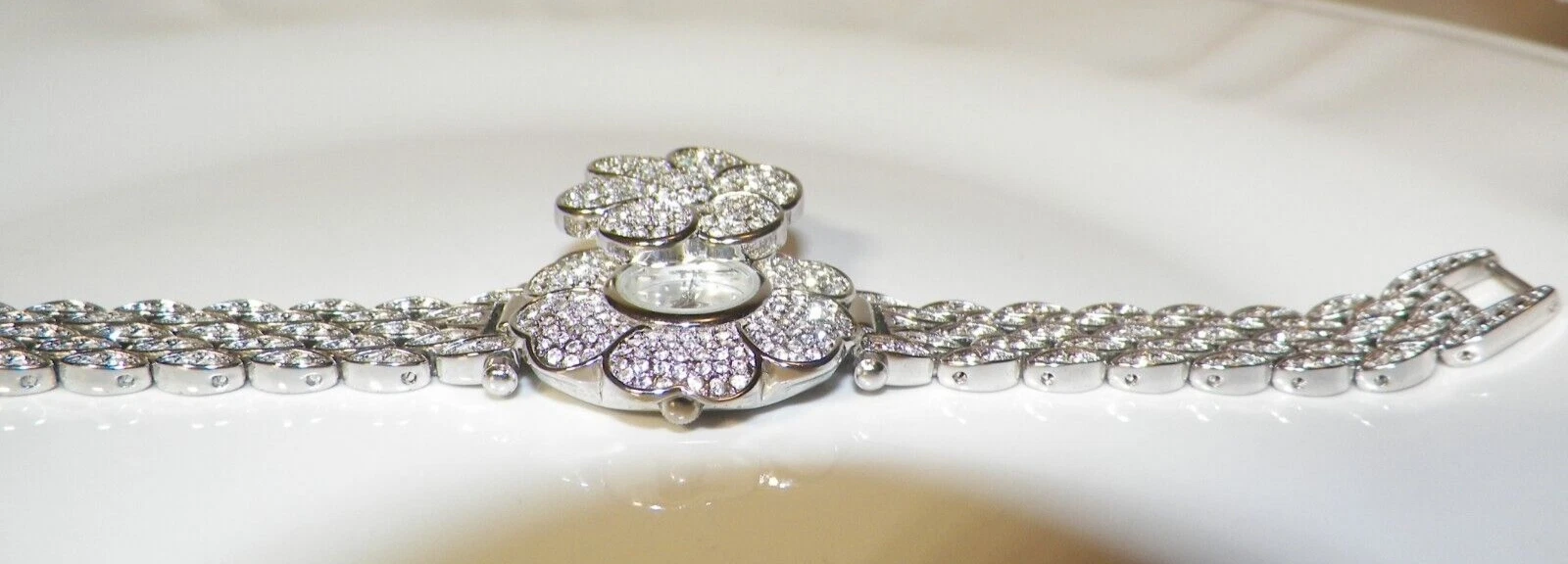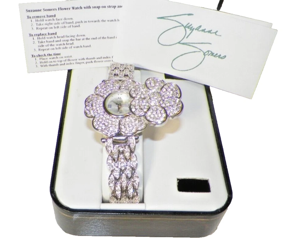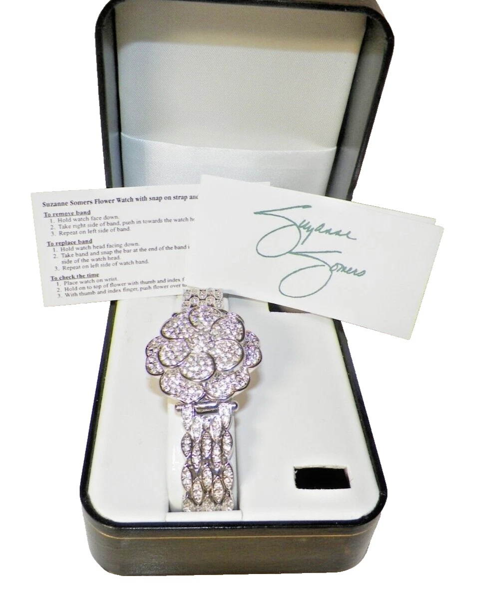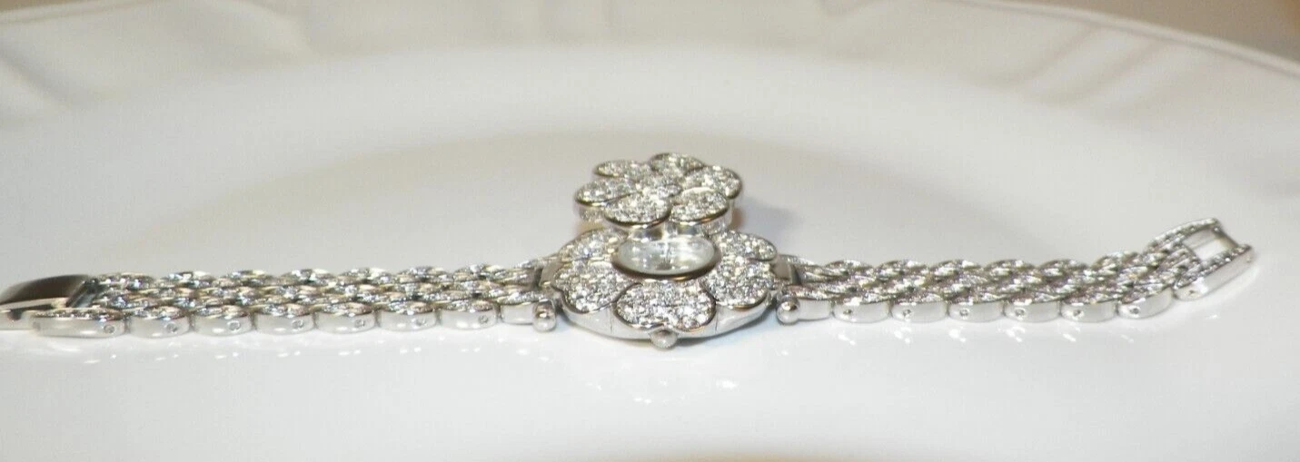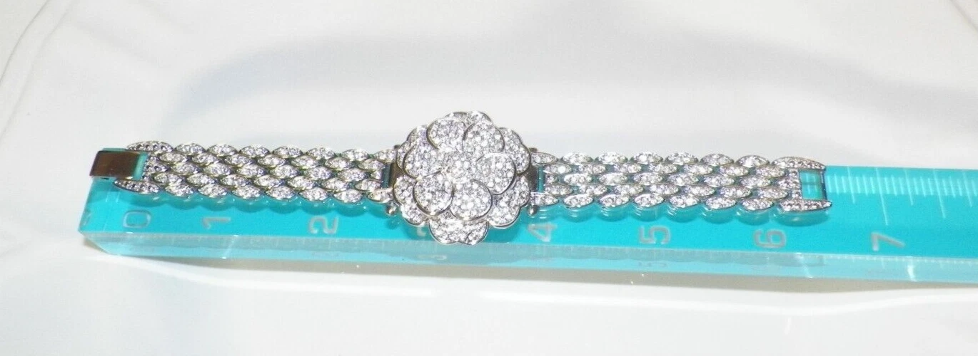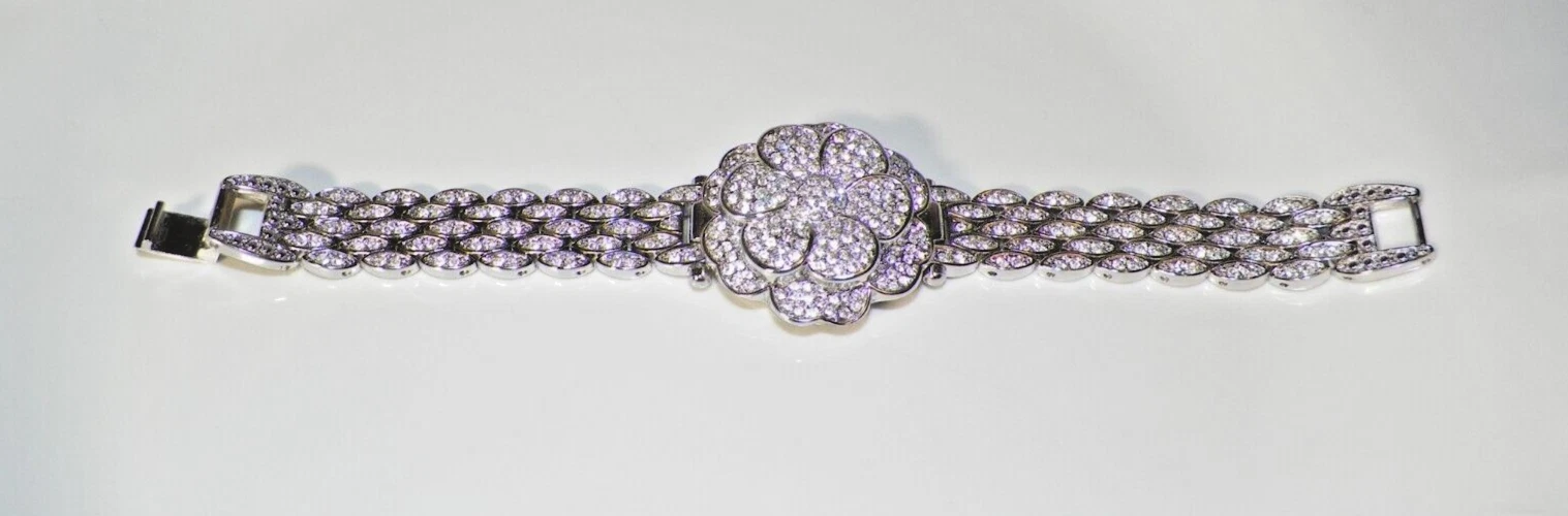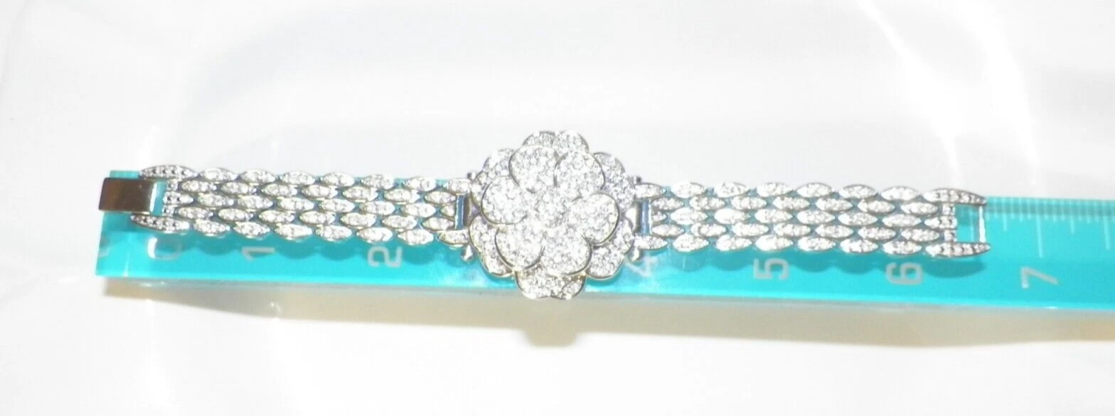 Small 6 1/4" Suzanne Somers Watch Pave Rhinestone Flower Bracelet 6 1/4"