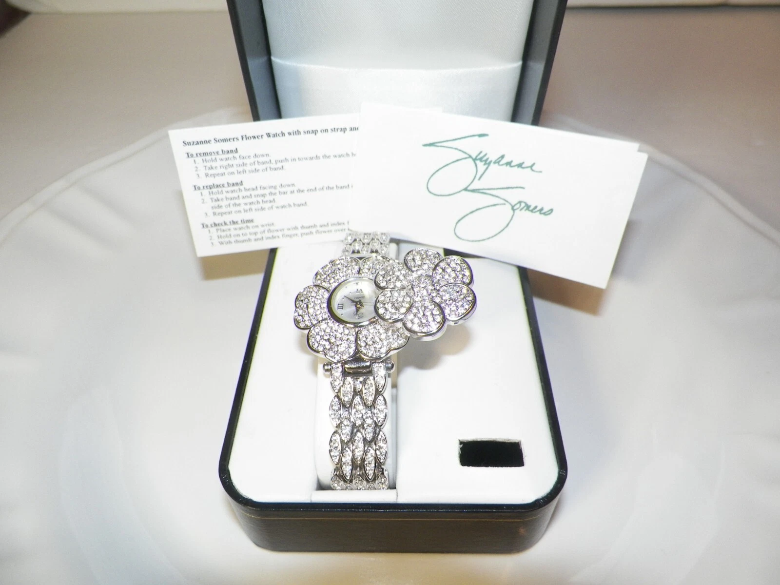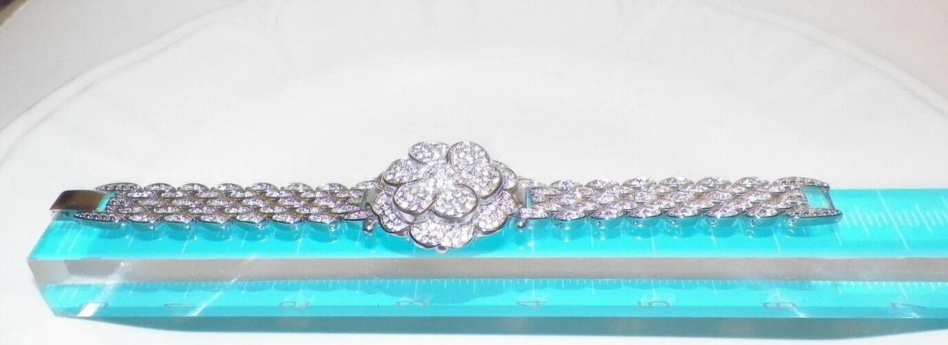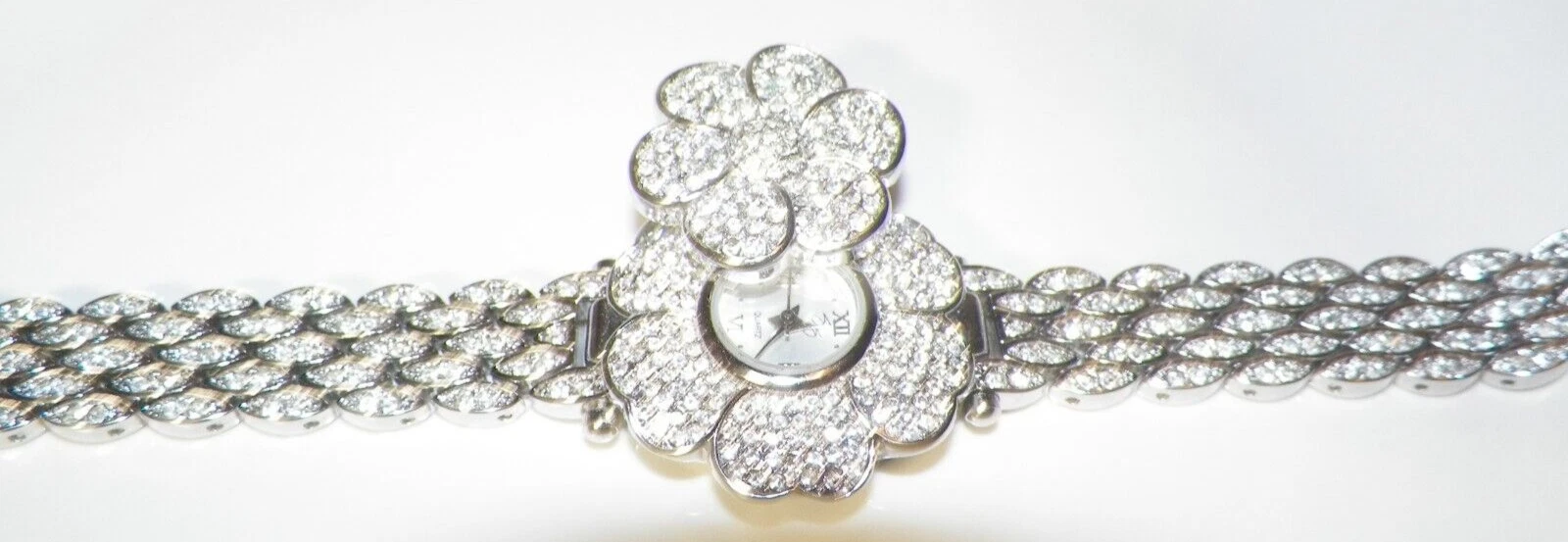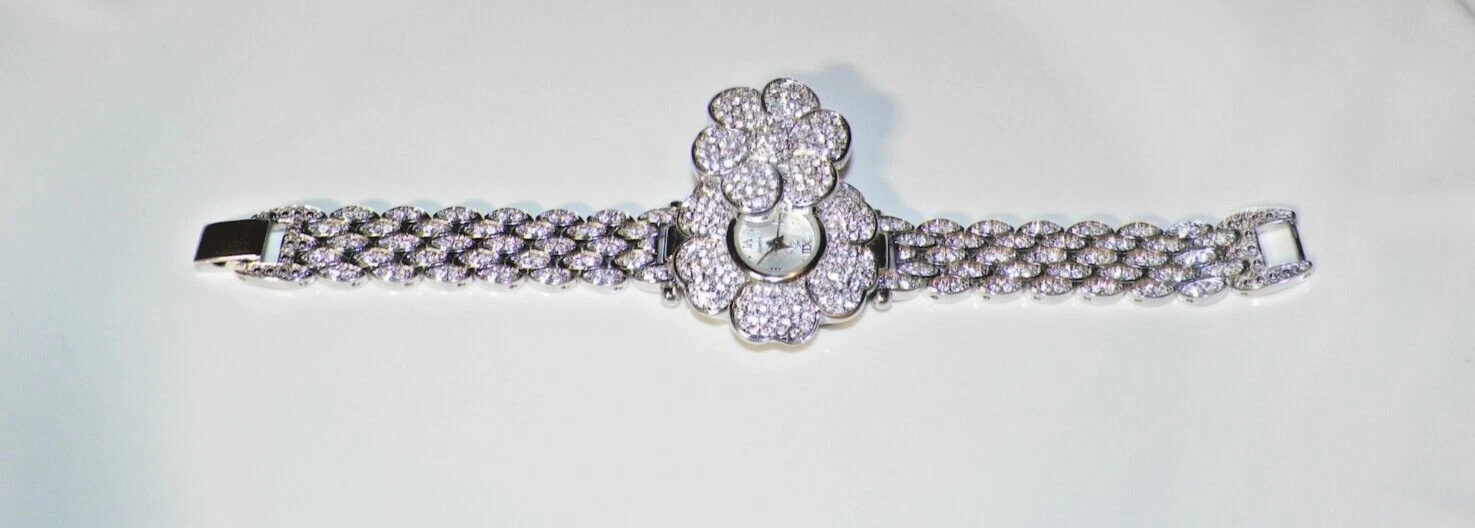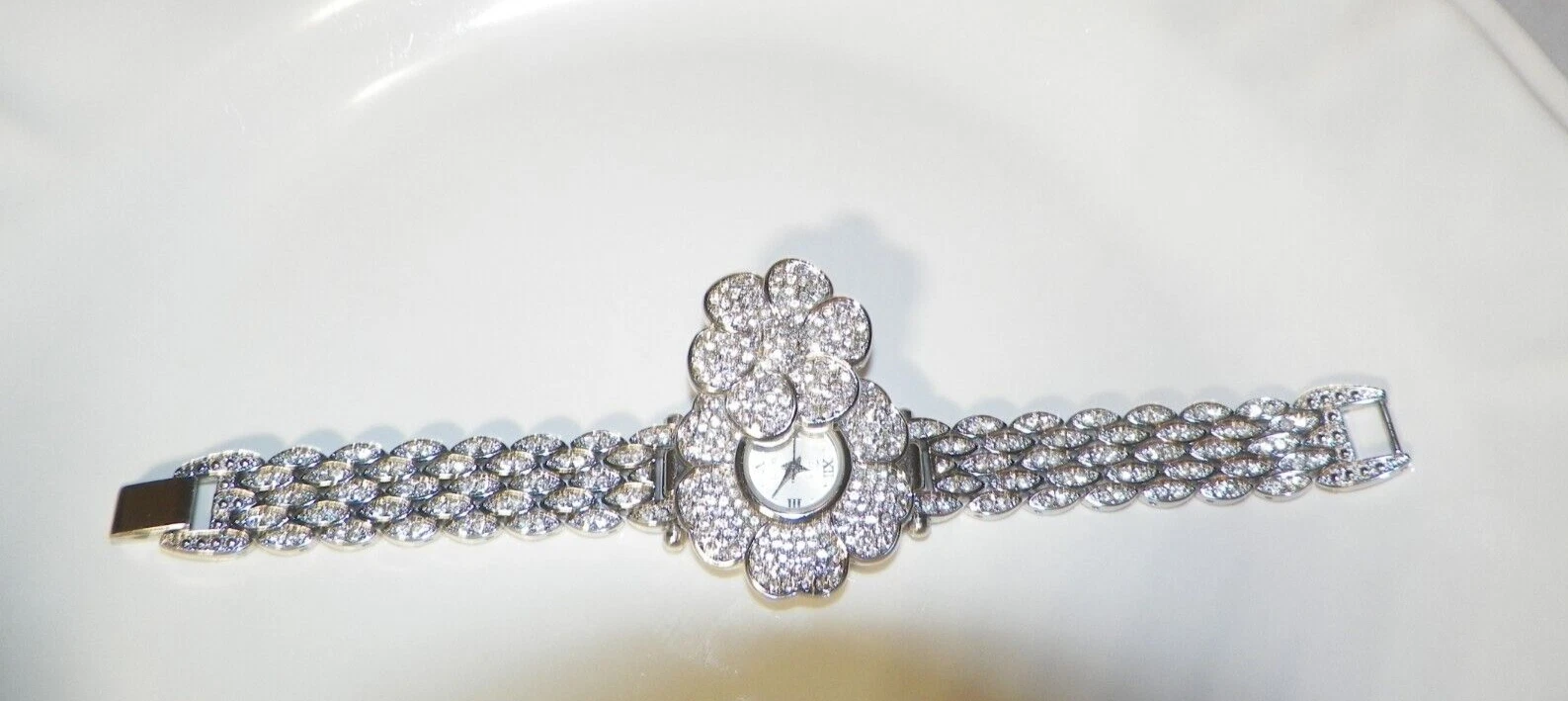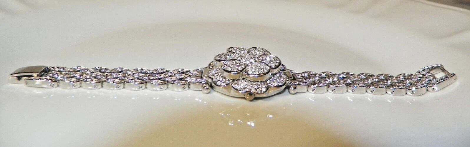 Small 6 1/4" Suzanne Somers Watch Pave Rhinestone Flower Bracelet 6 1/4"