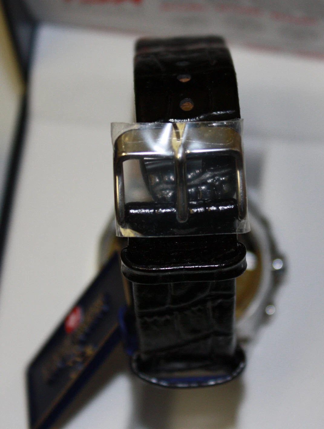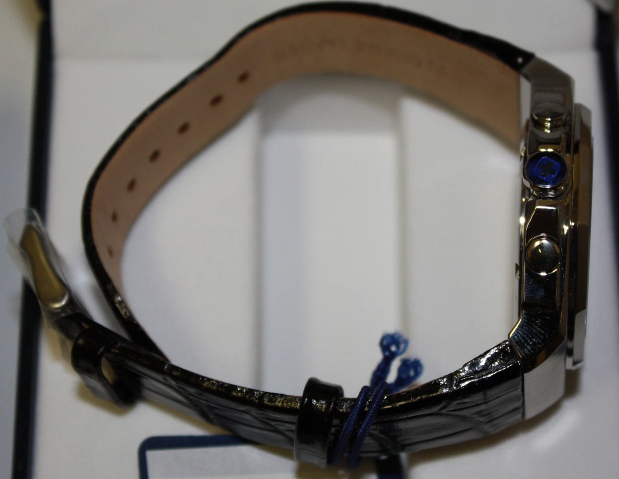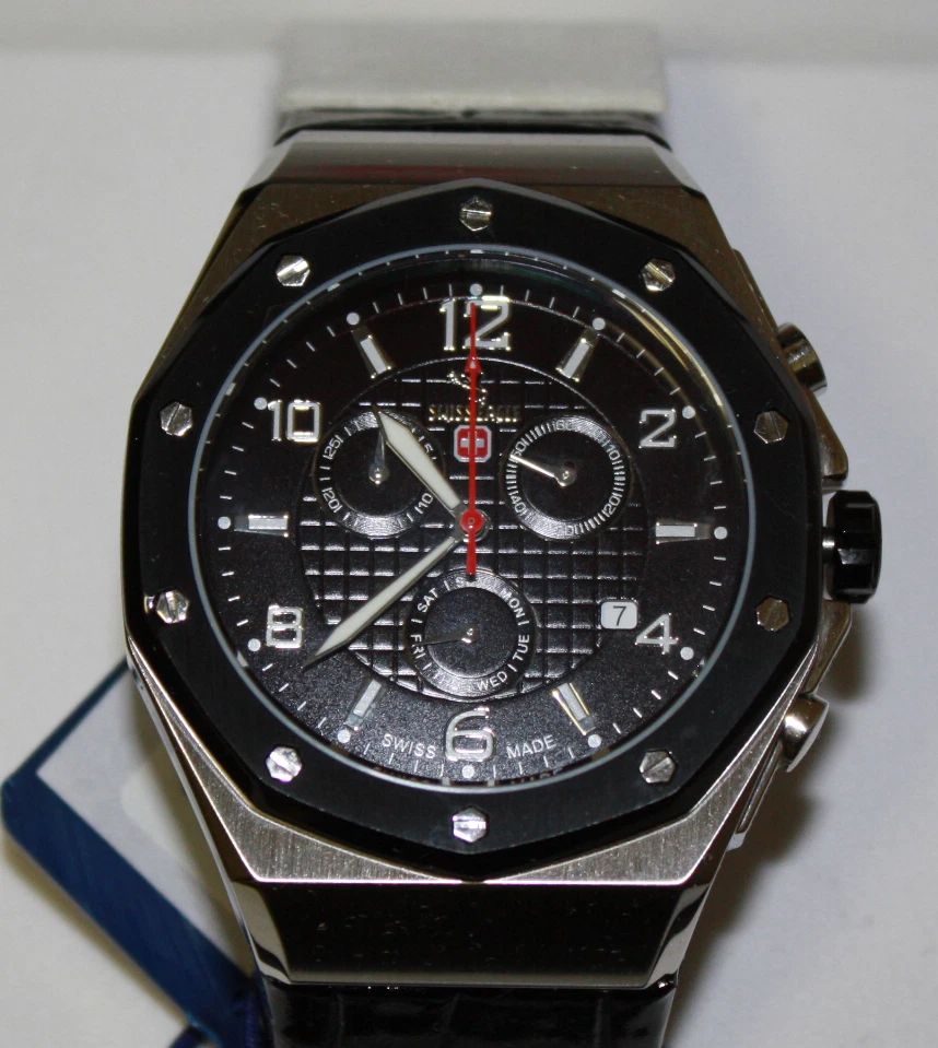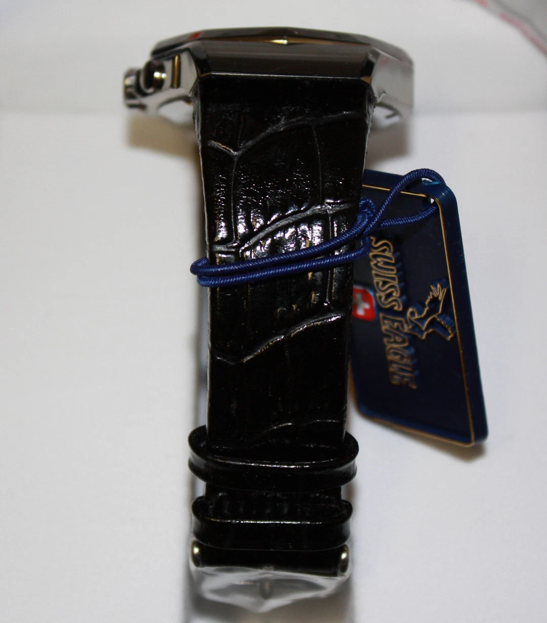 SWISS EAGLE SWISS MADE MENS CHRONOGRAPH QUARTZ WATCH NEW 4124L-BBB LEATHER BLACK
