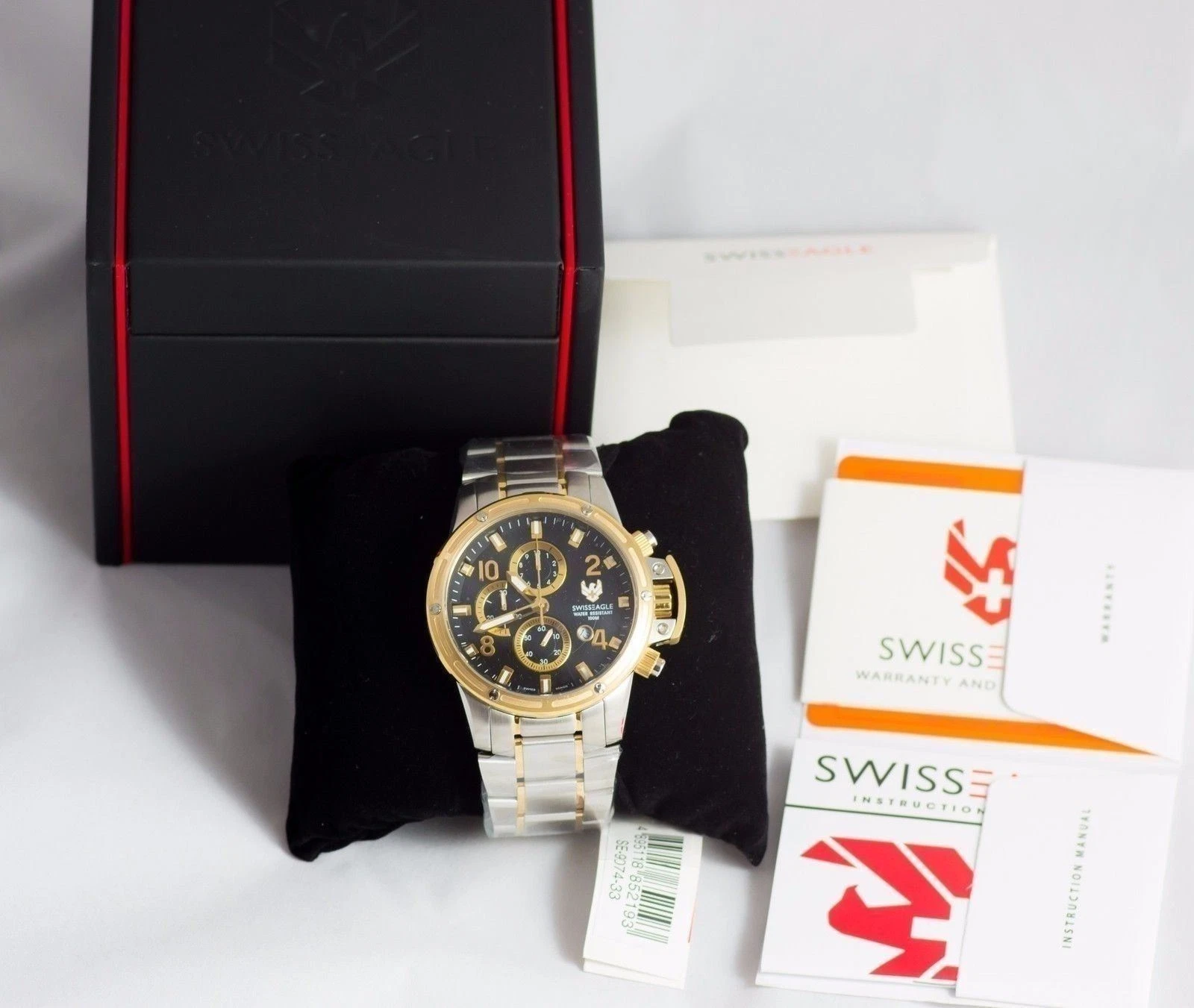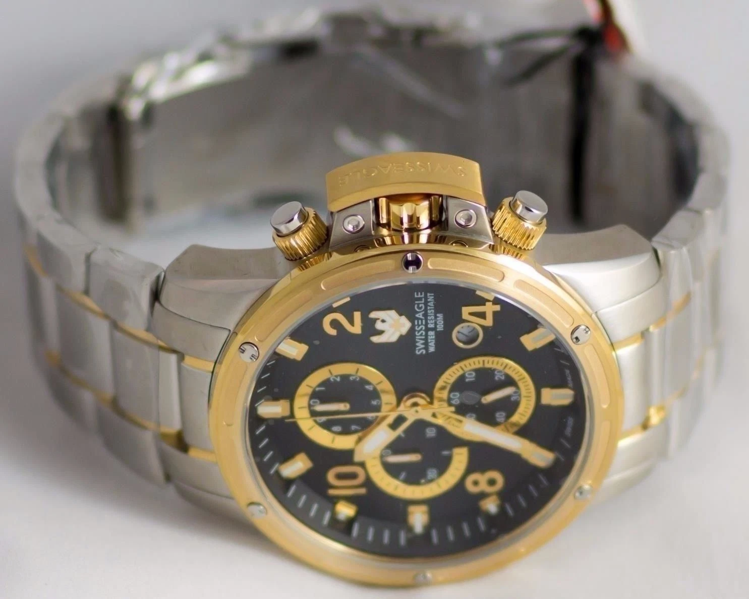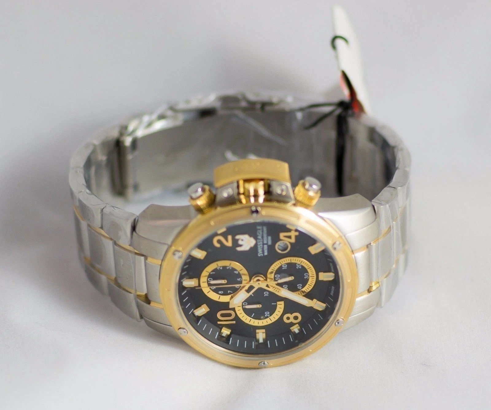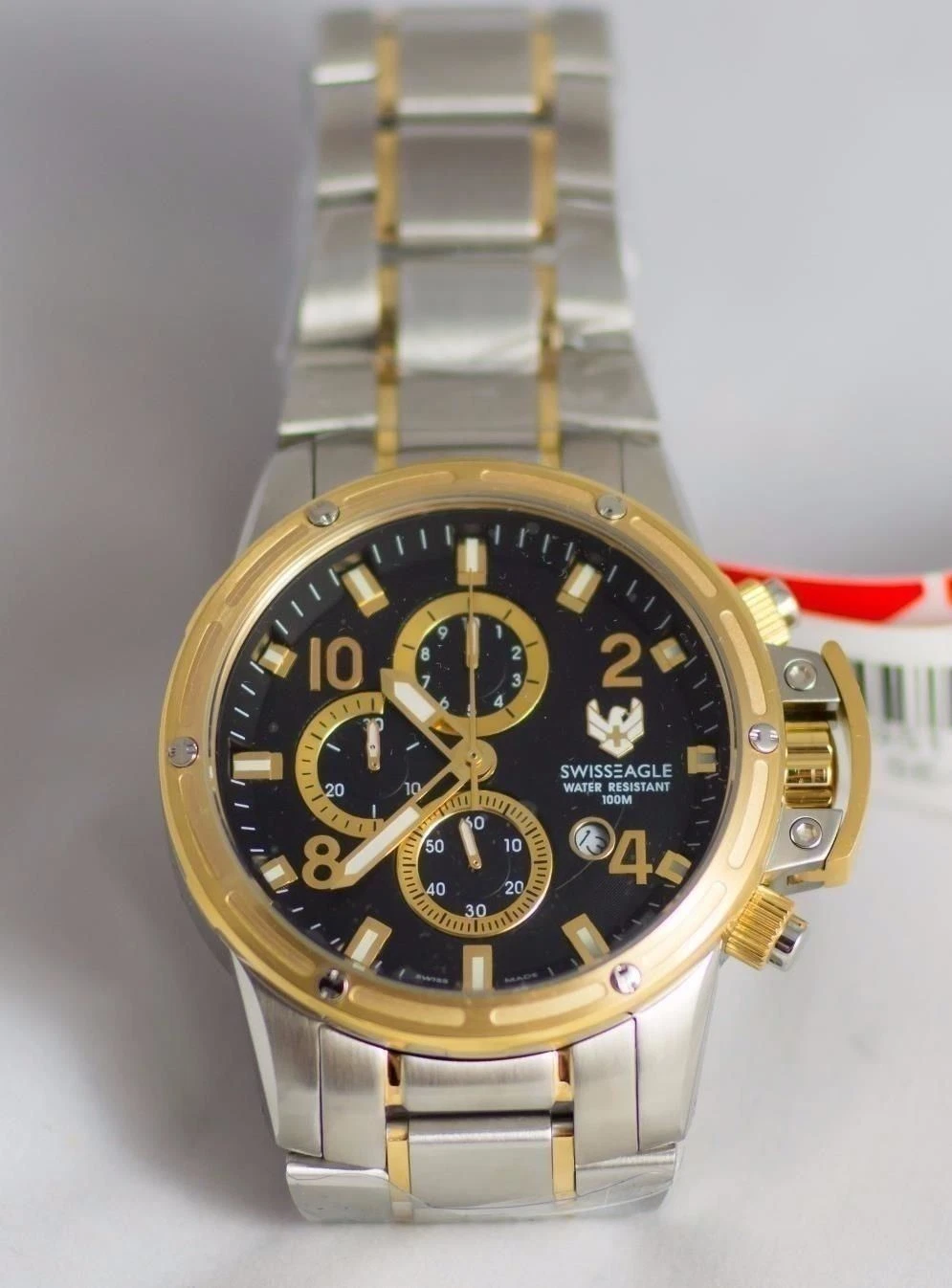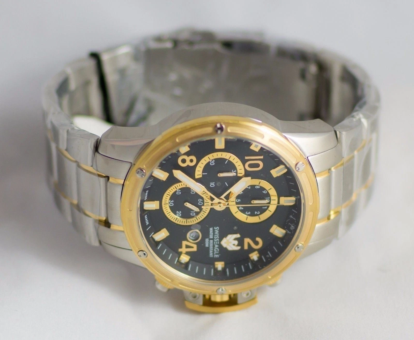 SWISS EAGLE Tramelan SE-9074-33 WATCH QUARTZ CHRONOGRAPH SILVER GOLD RRP: £680!